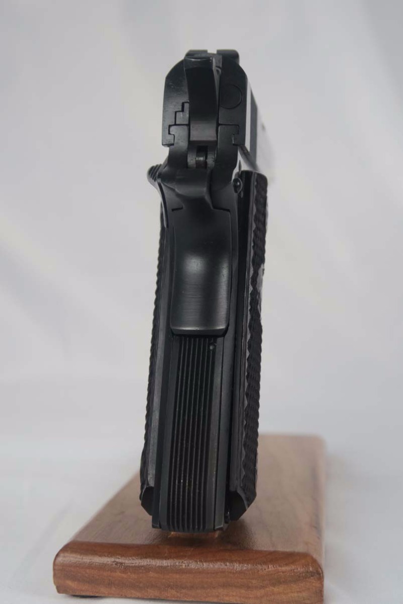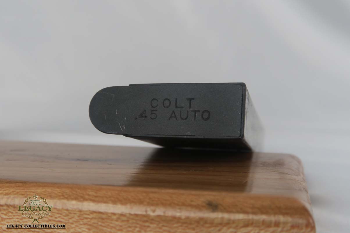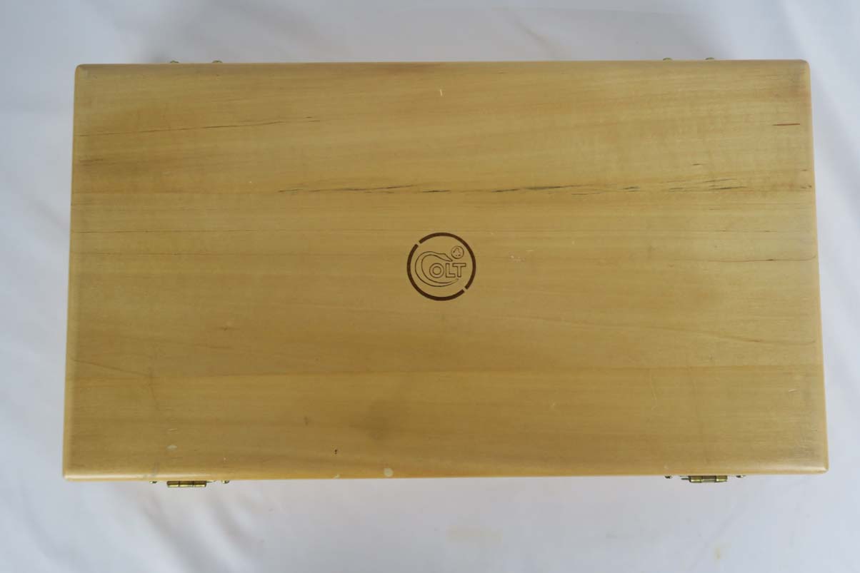 9/11/17 – Here is a virtually unfired, brand new condition, Colt 1911. It was made in 1966 and came to me via a former Colt employee who said they were factory presentation pieces to recognize employee service to Colt.   The pistol comes in the original Colt marked case. The gun is a nice combination of Matte and High Polish finish. A beautiful piece. Original finish rates 100%. I did some research to verify the background of the gun and could not find another. If any of you Colt collectors have additional info, we’d love to hear from you.  Note that one clasp on the box does not quite fit perfectly over the knob to close the lid.