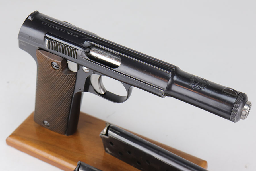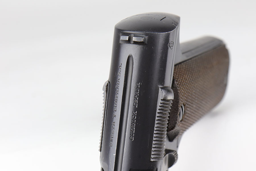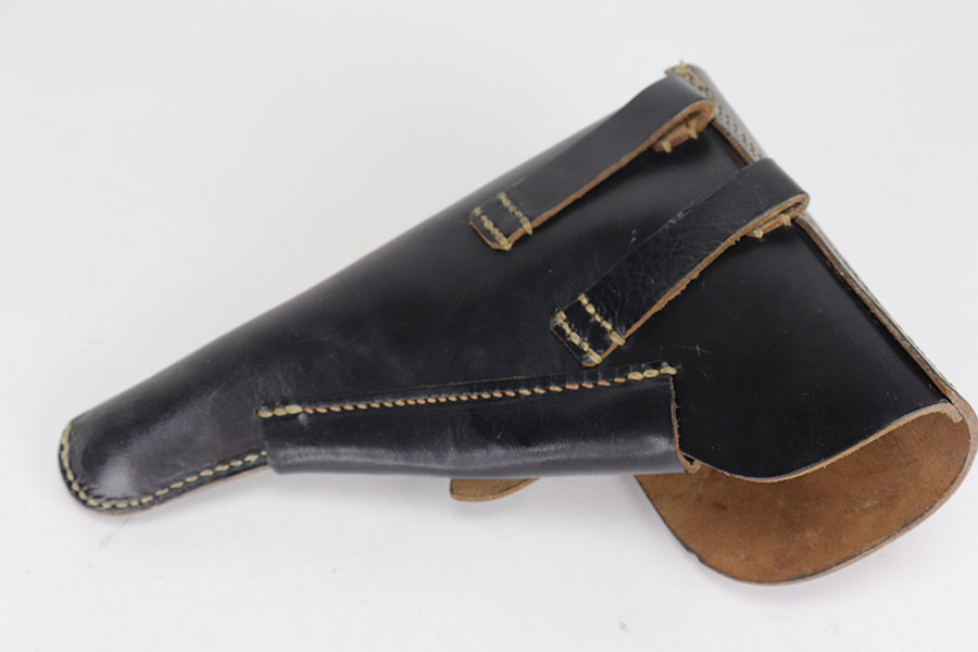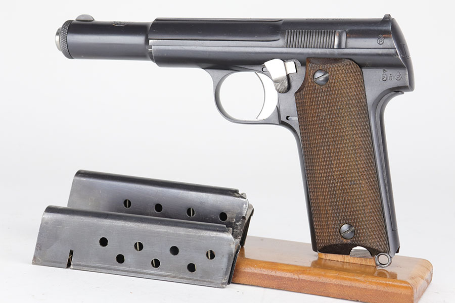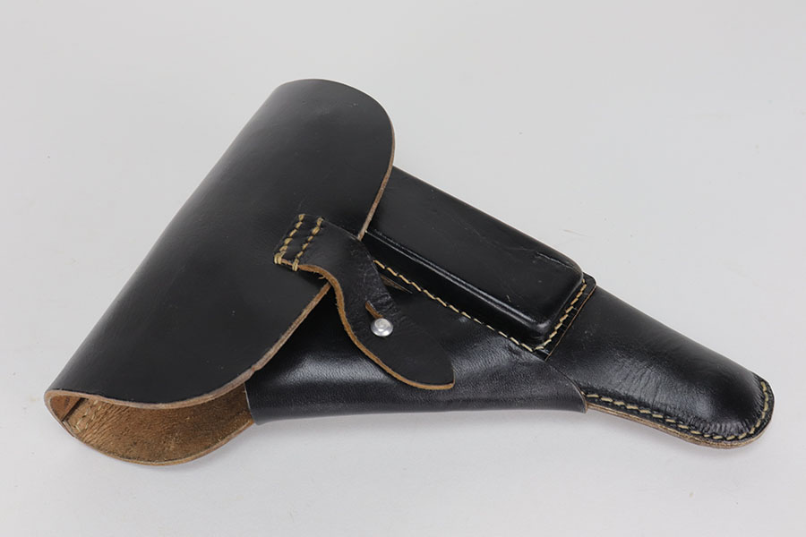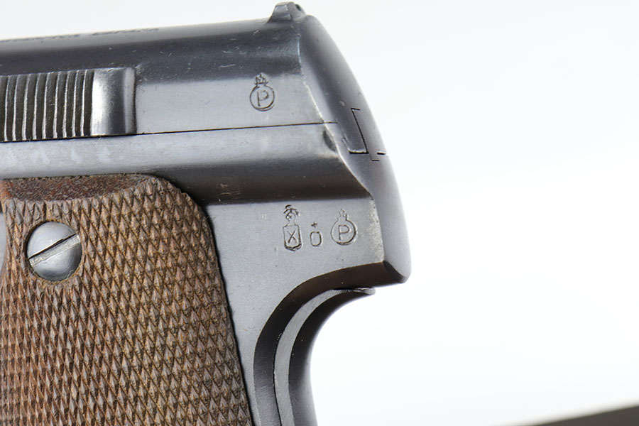 10/23/20 – This is a rare and near-mint Astra 600 rig with holster, spare magazine and original manual. This pistol was delivered on July 16th of 1944, which was the final shipment of Nazi marked Astra 600s, and is one of only 10,000 produced with Nazi acceptance stamp. It has 98-99% of the original blue with no real wear to speak of. Waffenamt on right side of frame. Excellent bore and minty grips. Total of two original magazines. The rig is completed by a mint holster with internal waffenamt and ’44 date code. Maker mark of ‘bdr’ indicates it was made by R.Ehrhardt of Possneck, Thuringen. Also included is a super rare and original manual that was produced in Spain during the war, but the text is entirely in German.