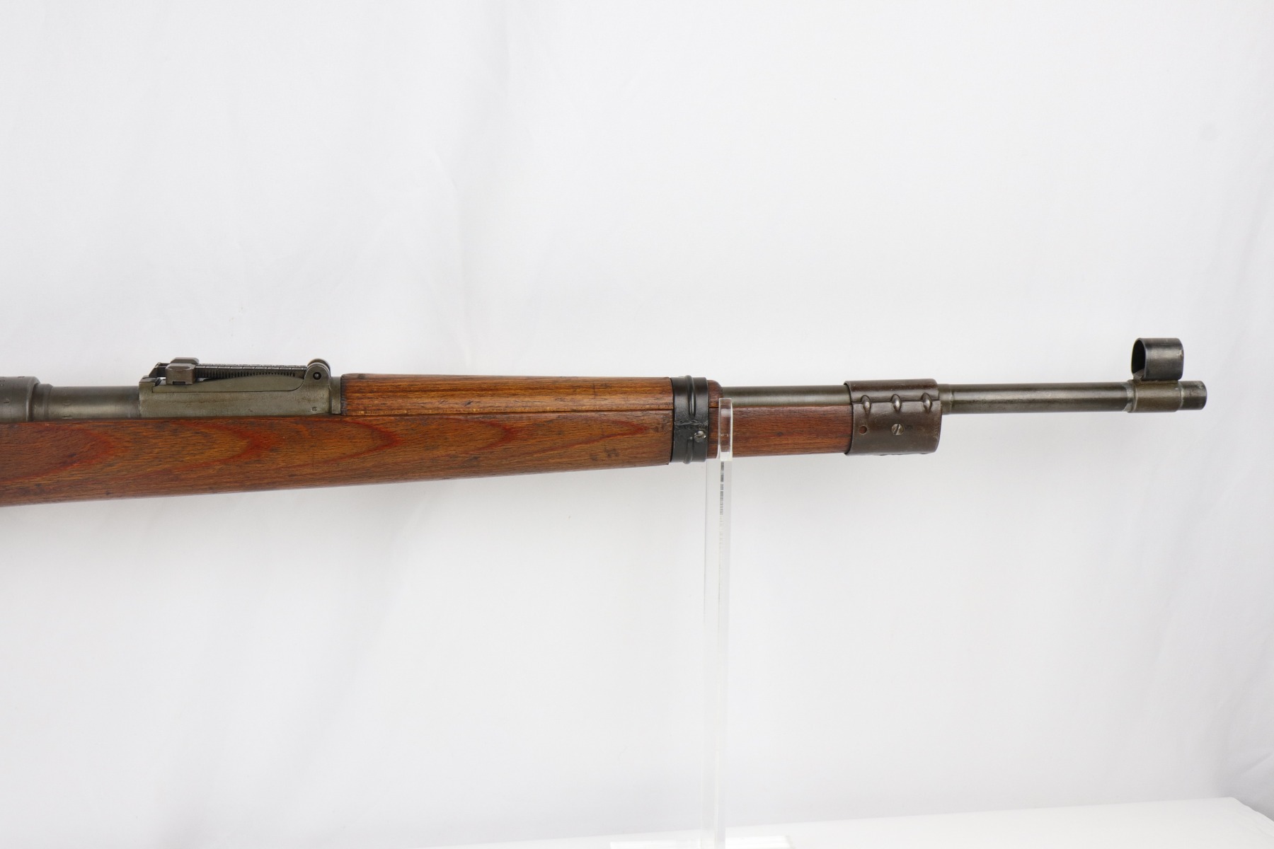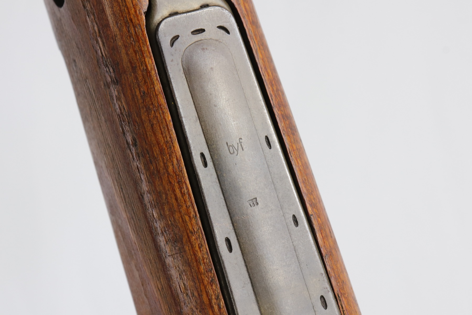11/15/19 – This is an amazing, near-mint example of a scarce and desirable Mauser K98 variation, made at the French Mauser factory and marked ‘svw 45’. All numbered parts on the rifle are matching and there are no import marks. The finish on the gun is almost entirely phosphate and it is in minty condition. There are a few areas of discoloration throughout, typical of late war finishes. A few of the small parts are blued. The stock is also in excellent condition. It is not numbered, which is correct for a gun this late, but it is waffenamt. The bore is excellent – shiny with very strong rifling. Functions properly.