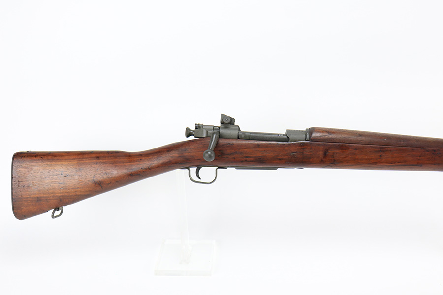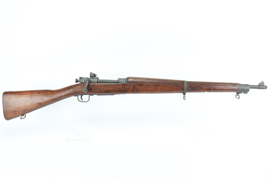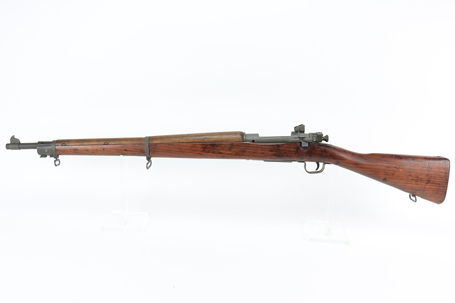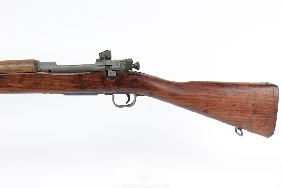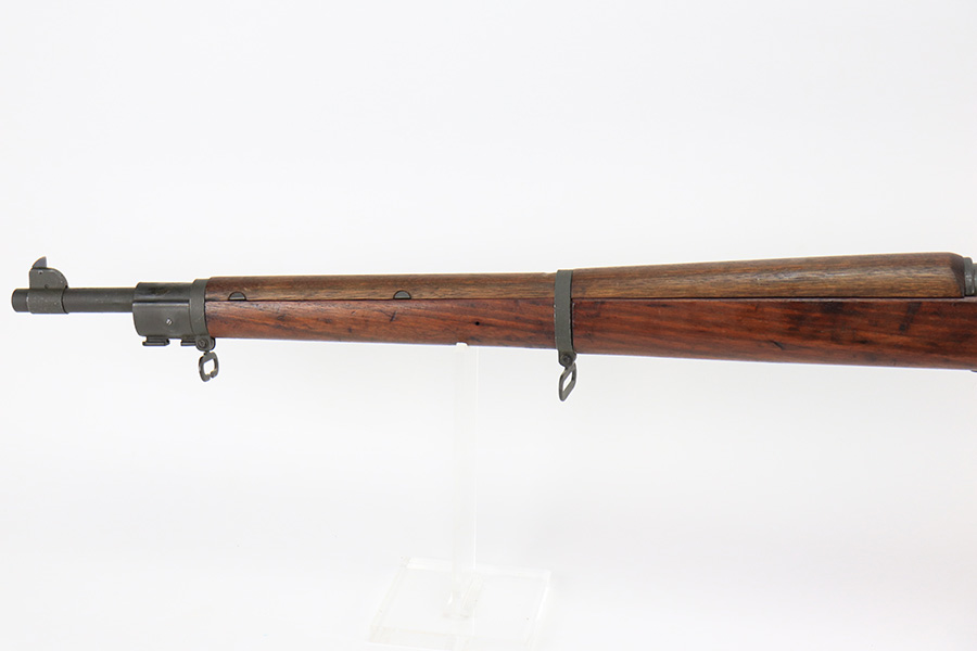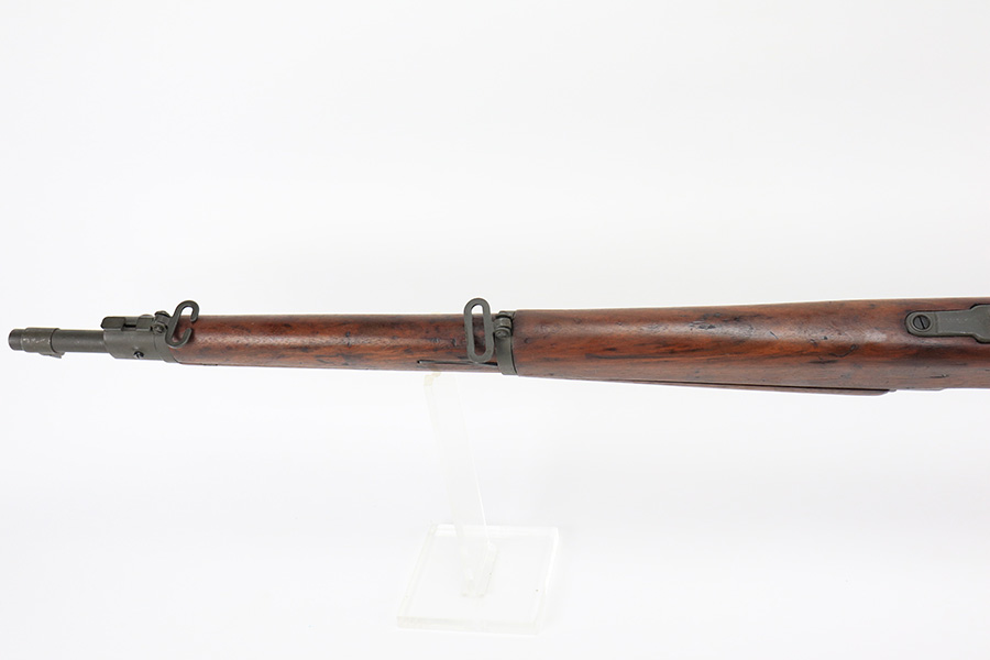 2/15/22 – This is a beautiful Remington 03-A3 rifle from 1943. It’s arsenal refurbished at San Antonio Arsenal as indicated by the stock marking. Mint parkerized finish throughout, and also has a minty bore so this would be a nice shooting and a great display piece. Just one minor patch of pitting in the bore but shouldn’t impact accuracy. Barrel is dated to February of 1943. Square ‘P’ marking on wrist confirms an arsenal repair or re-work. Some age and handling wear to the stock but no cracks.