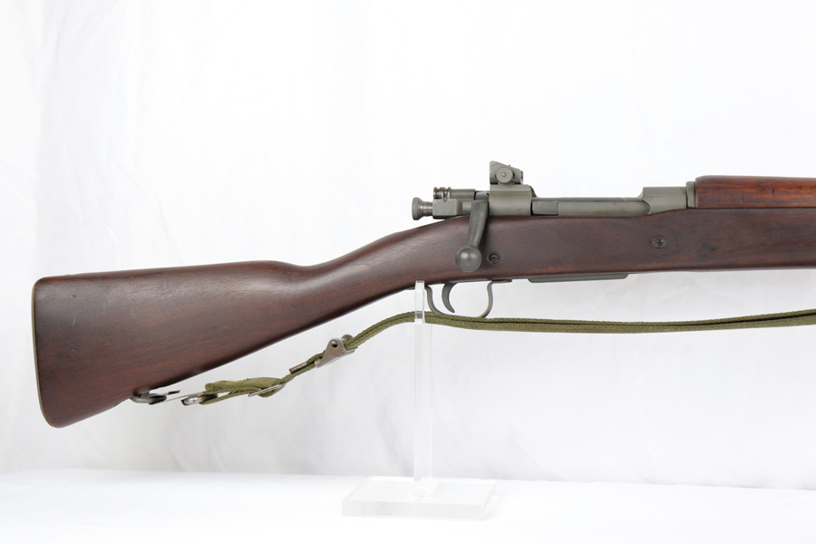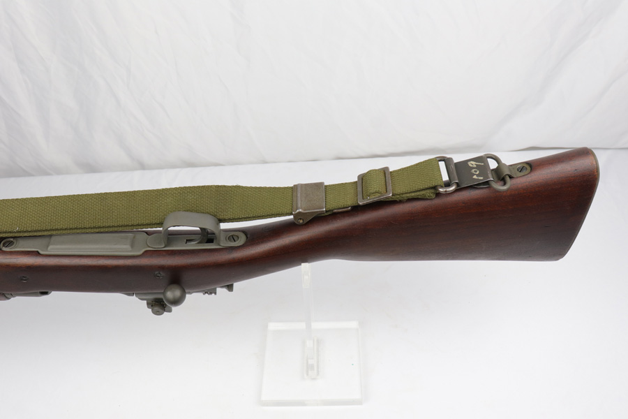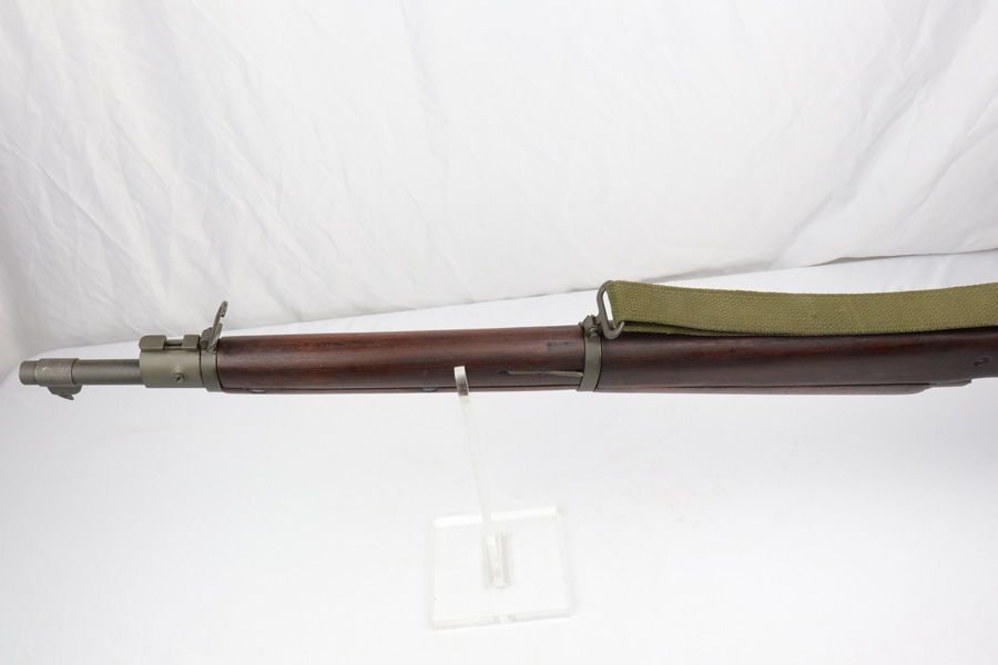 3/25/19 – This is a minty condition Remington 03-A3 made in 1943. The rifle is in all original configuration with the original stock. The stock has no cracks, chips, or issues besides how faint the inspector stamp is. You can barely see a “FJA rectangular stamp, and I can’t find a cartouche stamp – but these often lifted out of the wood if it was a weak strike. The underside shows the proper inspection and “P” proof stamps. The receiver and barrel are in minty condition. No notable flaws. The bore matches the rest of the rifle condition with no notable wear. Comes with an original cleaning kit within the stock.