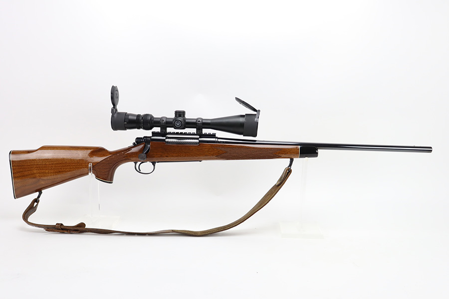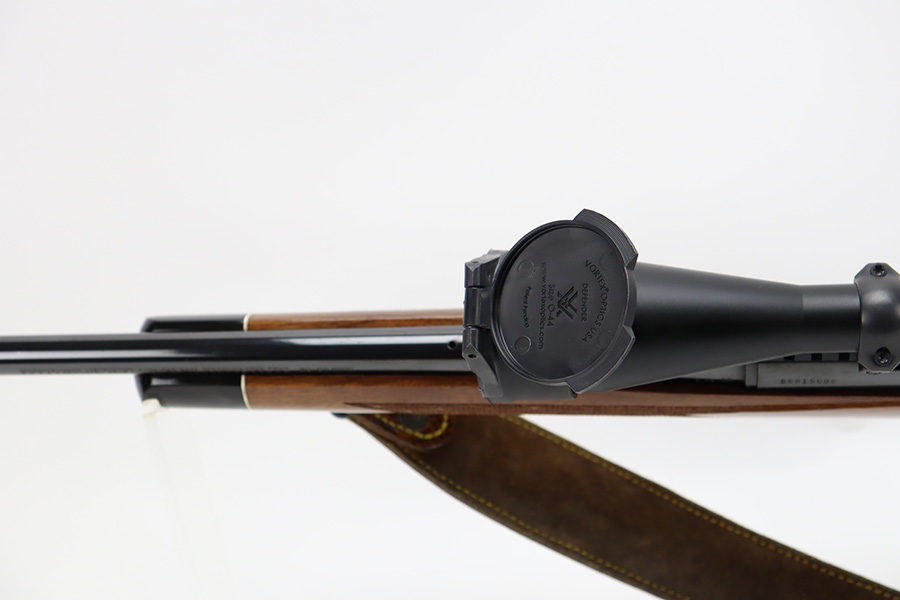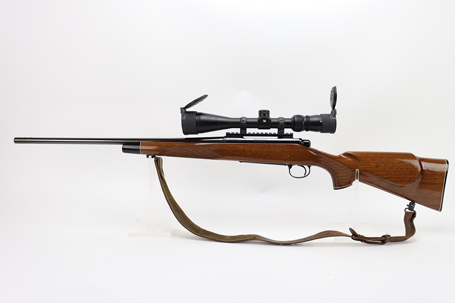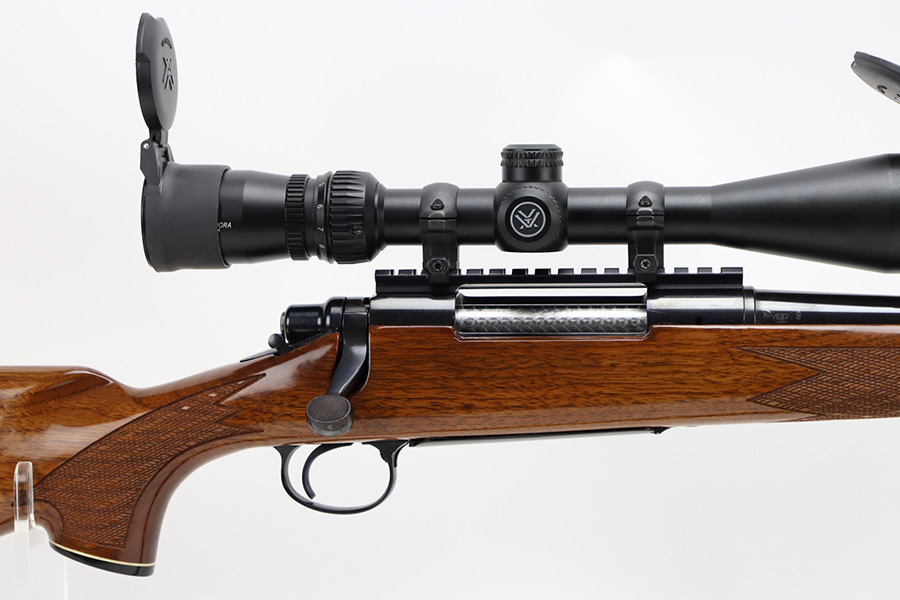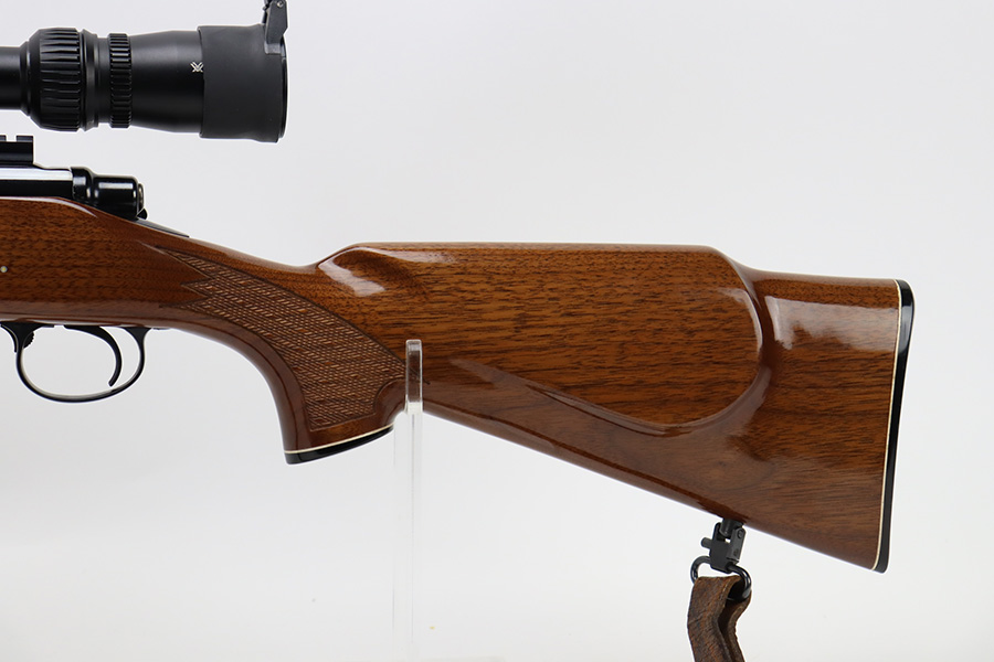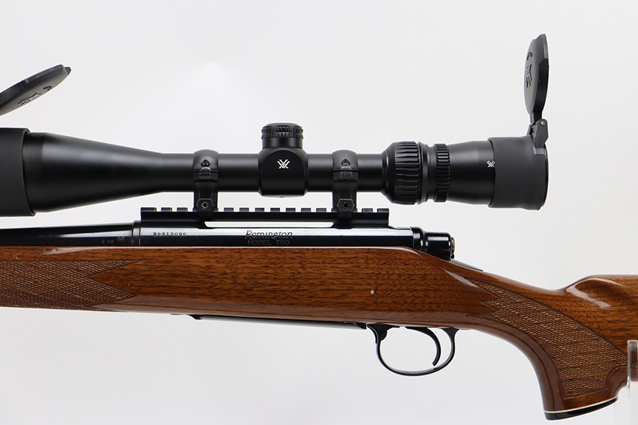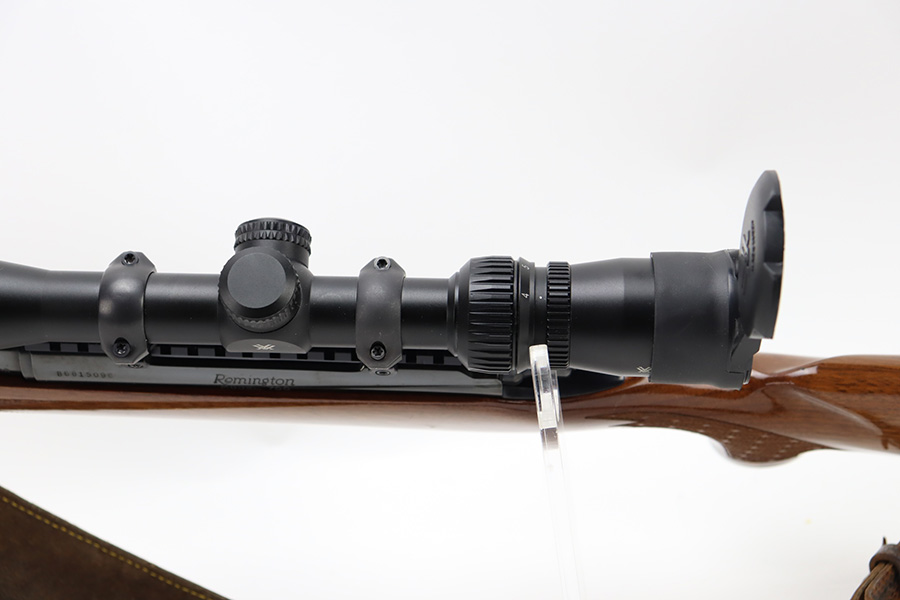 1/2/24 – This is a near-mint Remington 700 bolt action rifle, chambered in .30-06. It comes equipped with a leather sling and a really nice Vortex Sonora 4-12x44mm rifle scope (perfect optics). The gun shows no finish loss and virtually no signs of wear or use except for a few tiny bruises on the wood stock. Stone-mint bore.