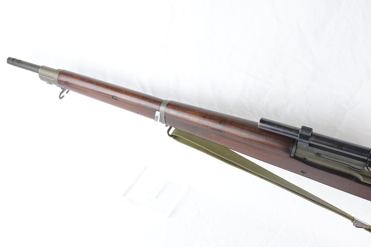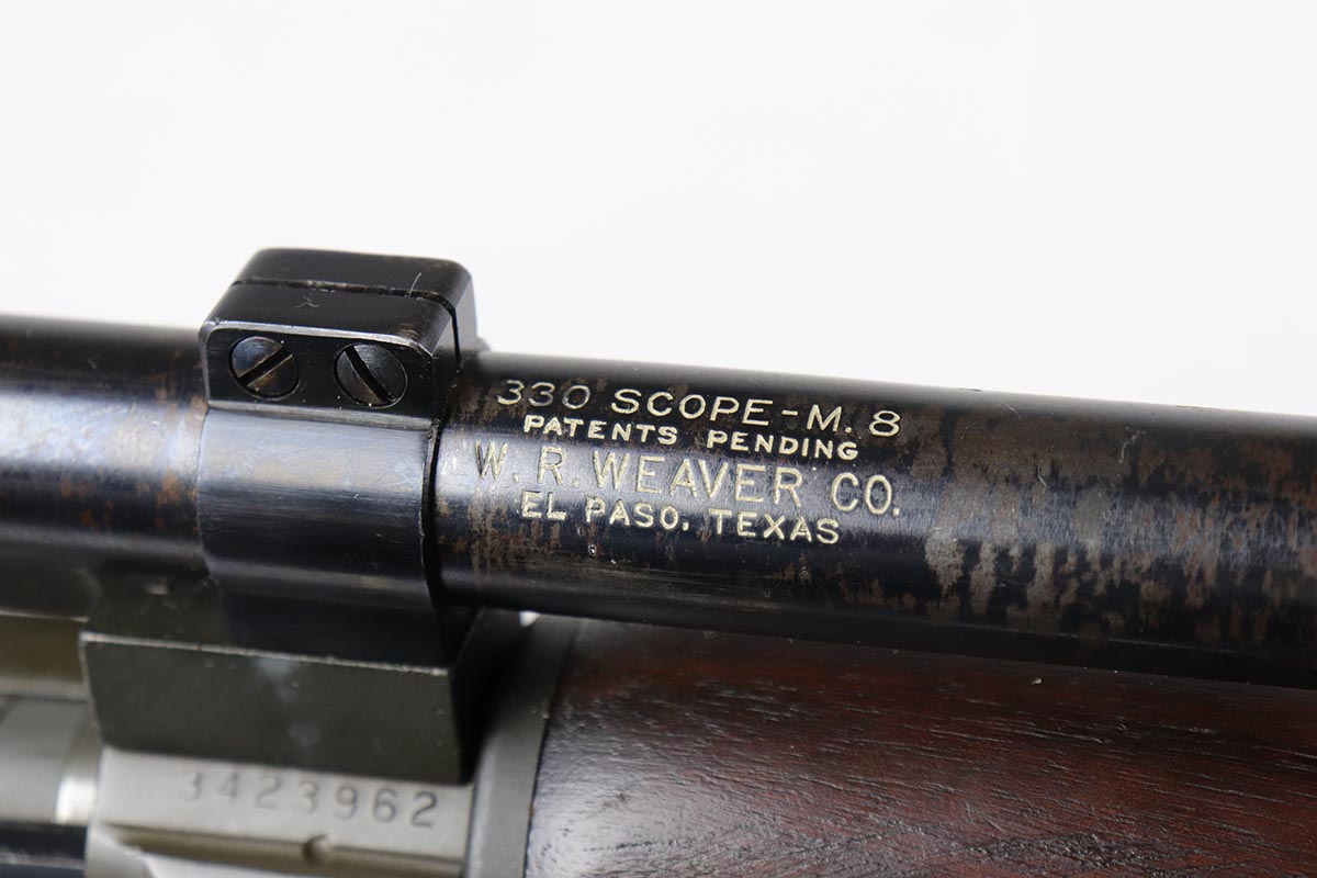 3/26/18 – This is a minty Remington M1903-A4 sniper rifle with rare M8 marked scope.  This World War II era rifle is dated 1943 on the barrel, and is in near mint condition with no major flaws to note.  The M8 marked scope is the first model variation that was used on these rifles, and a difficult scope to find.  The scope has some flaking to the finish and is not in quite the same condition as the rifle, but it is a very nice combination piece.  The stock is properly marked with crisp proofs.  The rifle comes with an original 1943 dated sling.  Bore is shiny with strong rifling.