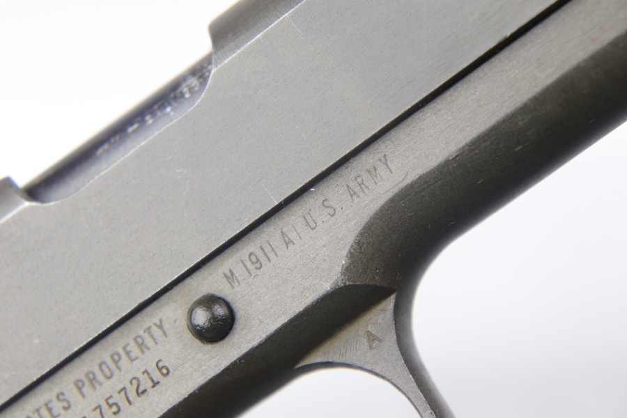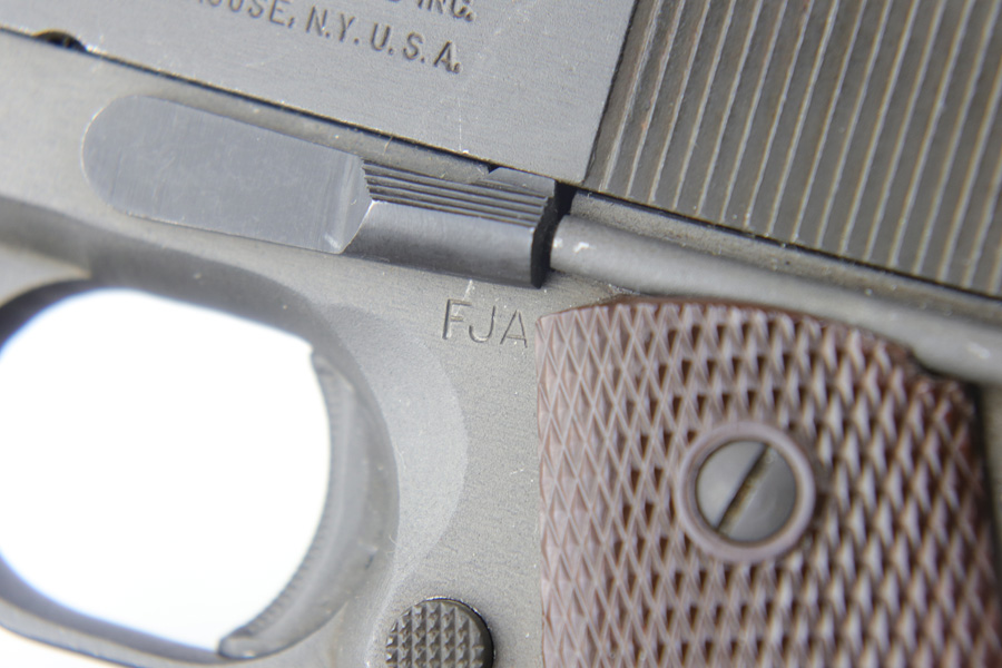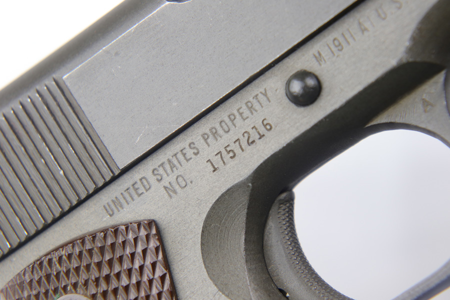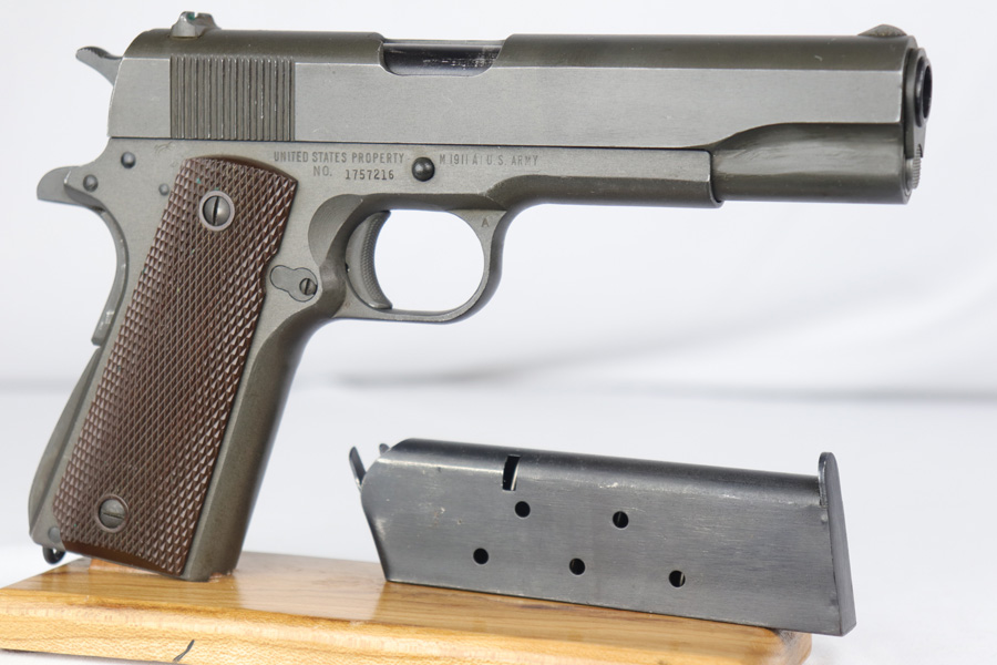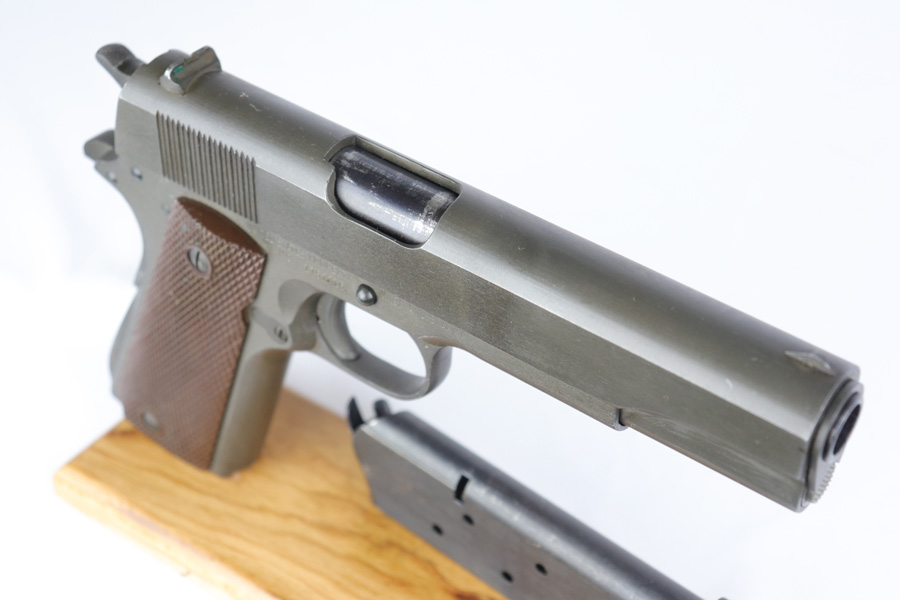 11/1/18 – This is a near-mint Remington M1911A1 that was US Army issued in August of 1944. The pistol is all original and correct with 98-99% parkerized finish remaining, showing only light handling and edge wear. Excellent grips and Risdon magazine. HS barrel. Shiny, strong bore.
