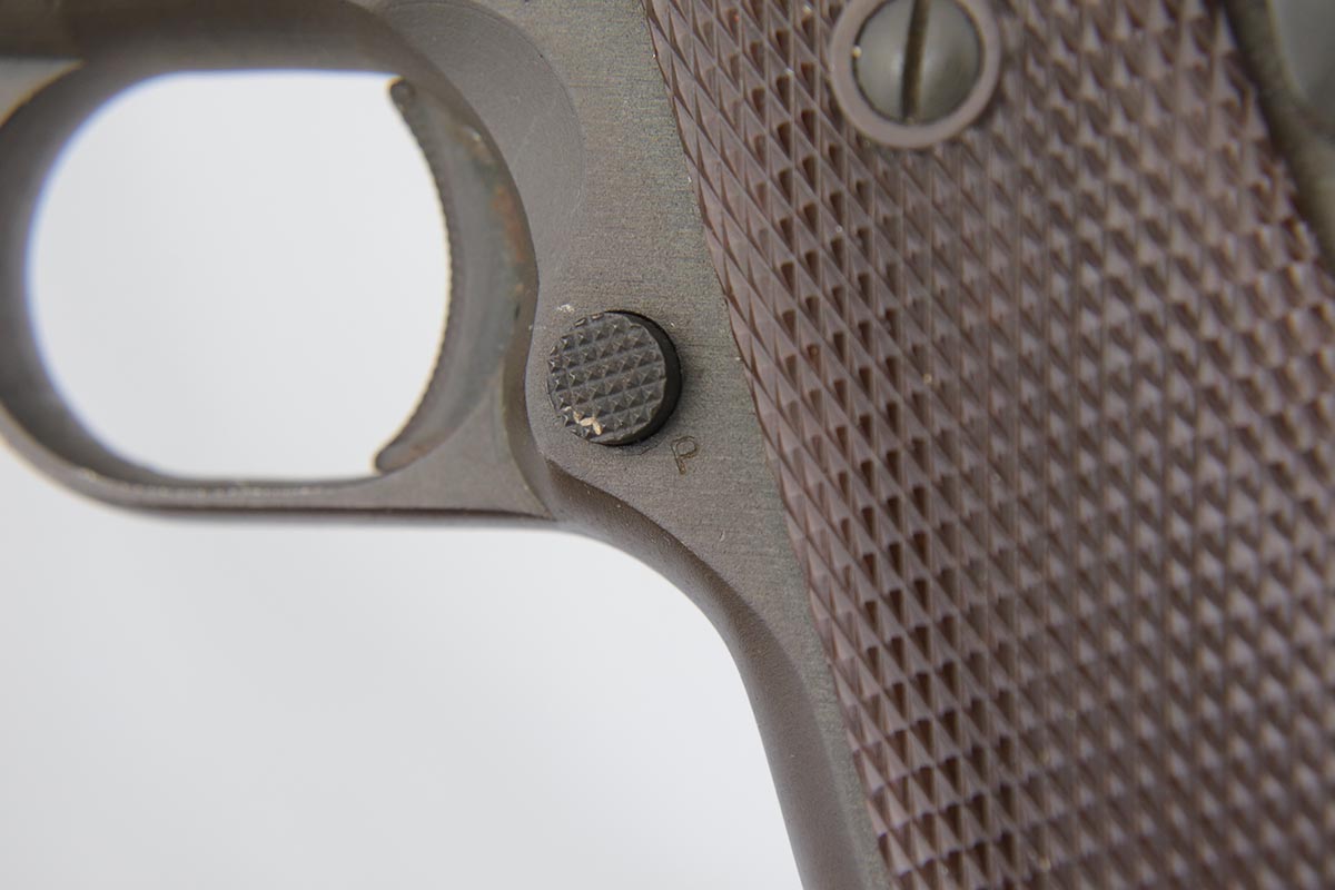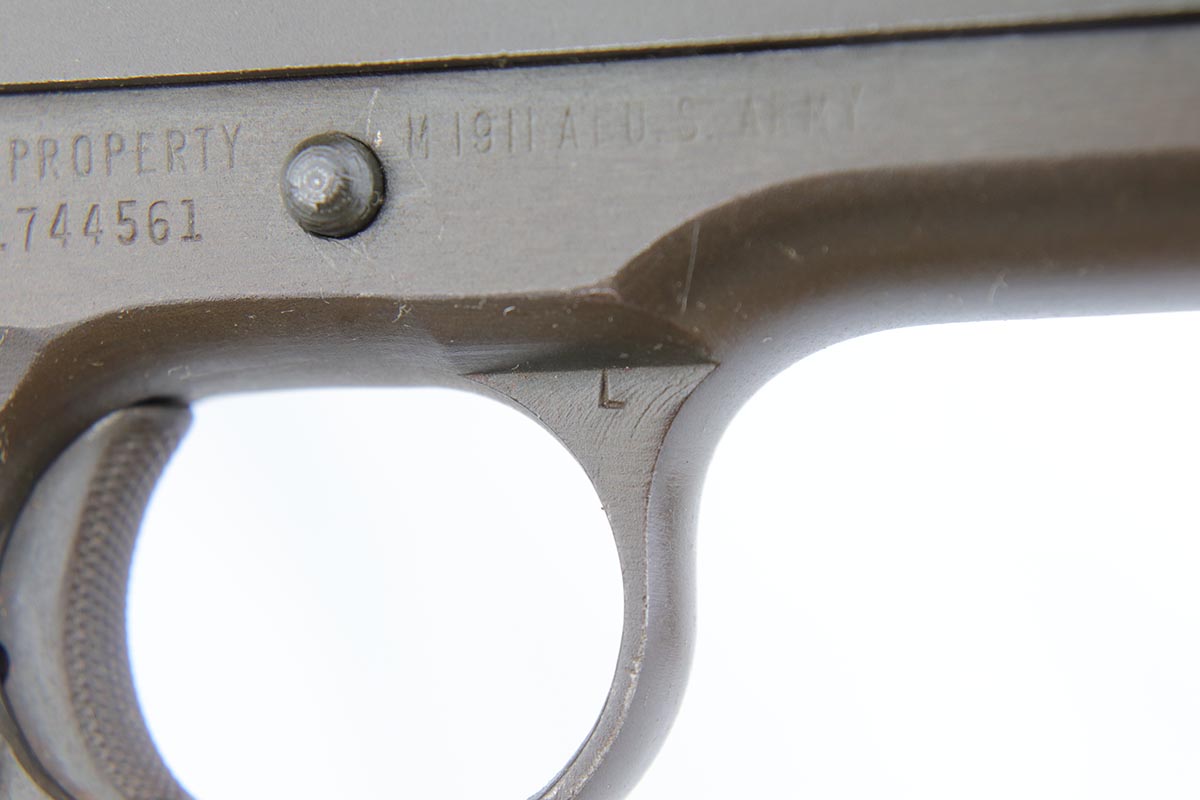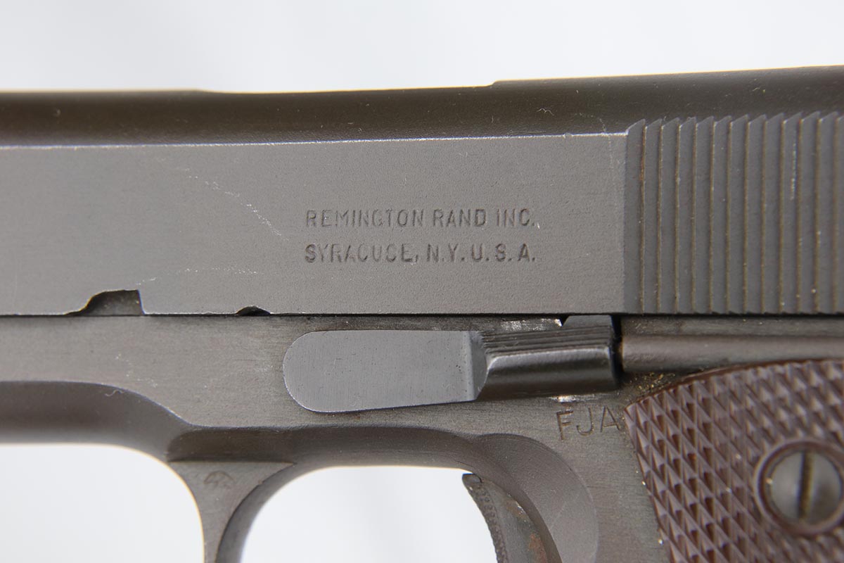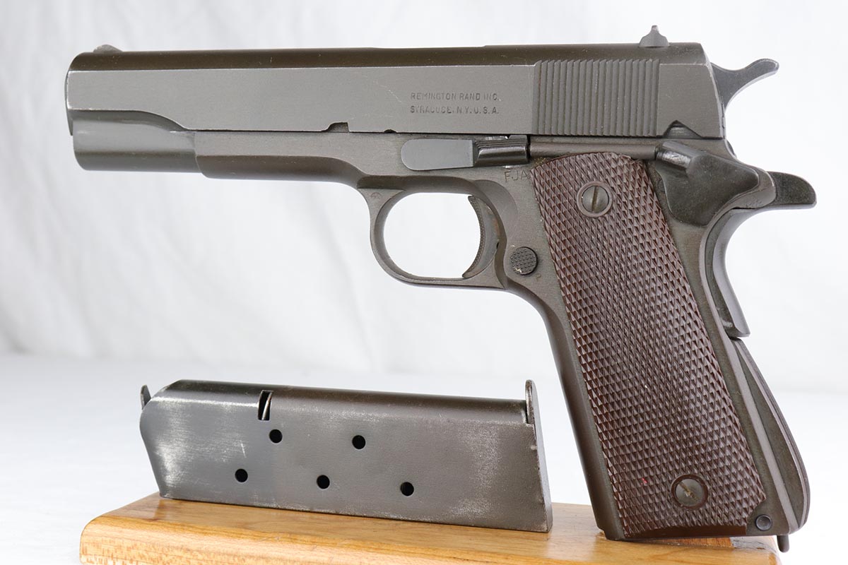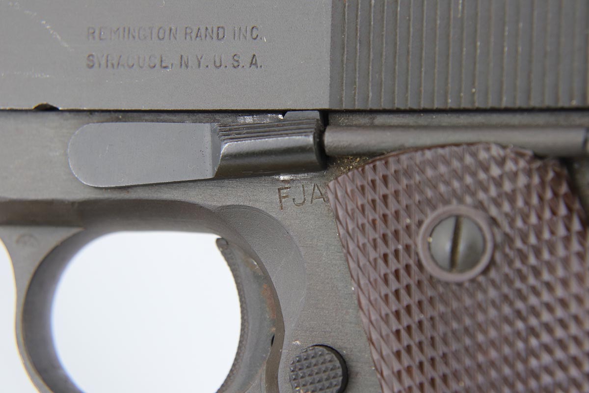 1/14/19 – This is an original and correct Remington M1911A1 from August of 1944. The finish rates at 99% with minor muzzle wear on an otherwise minty gun. Excellent grips and magazine. Proper ‘HS’ barrel. Bore is shiny with good rifling but does show minor frost.