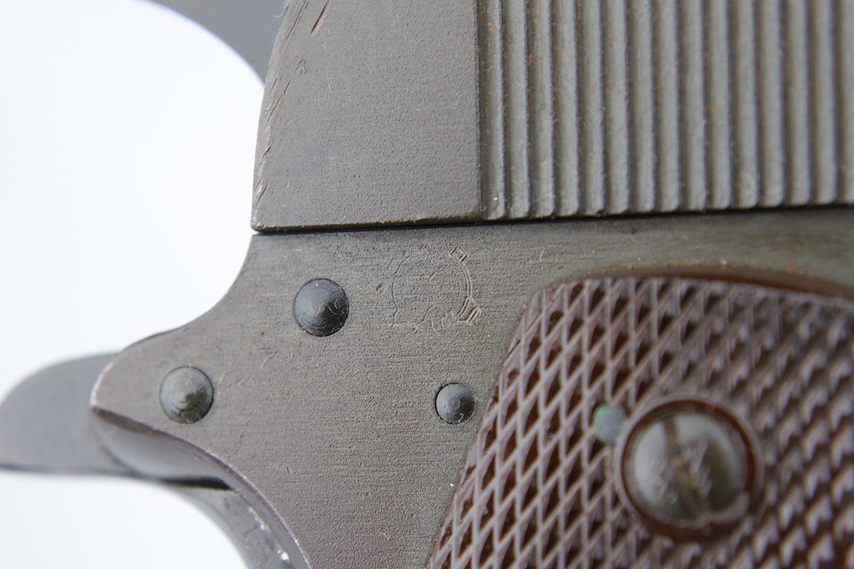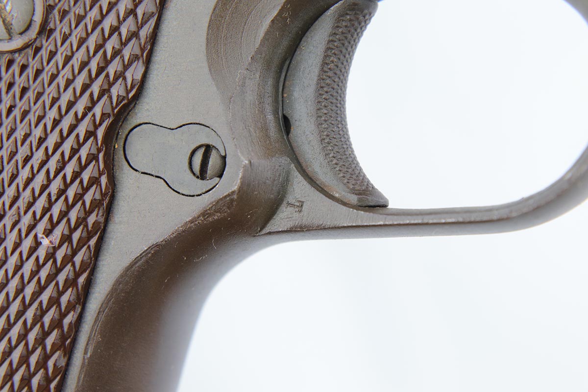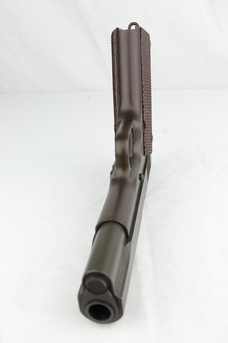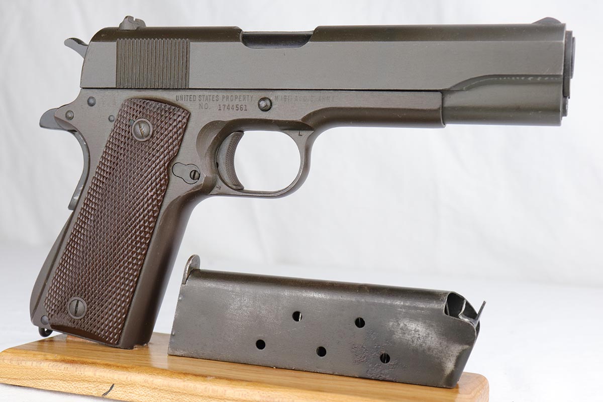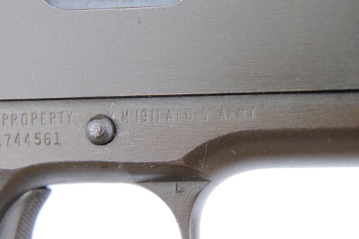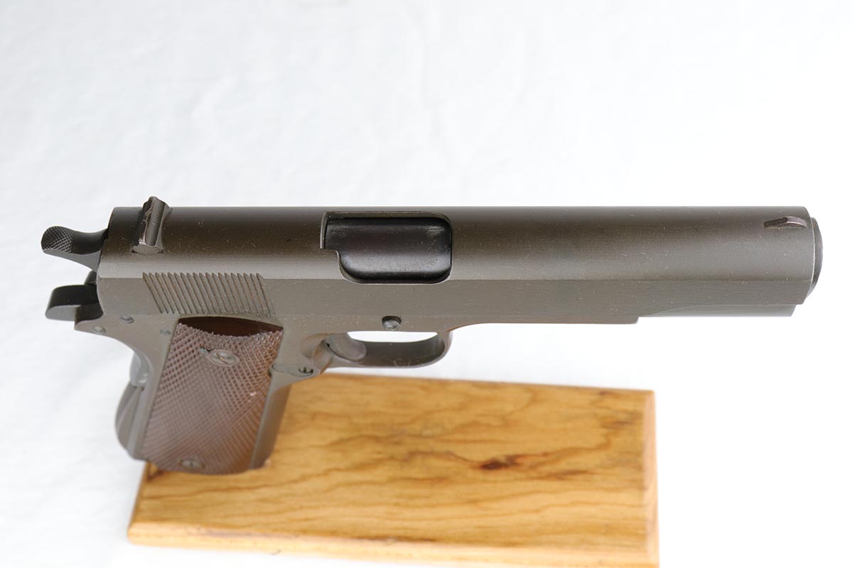 1/14/19 – This is an original and correct Remington M1911A1 from August of 1944. The finish rates at 99% with minor muzzle wear on an otherwise minty gun. Excellent grips and magazine. Proper ‘HS’ barrel. Bore is shiny with good rifling but does show minor frost.