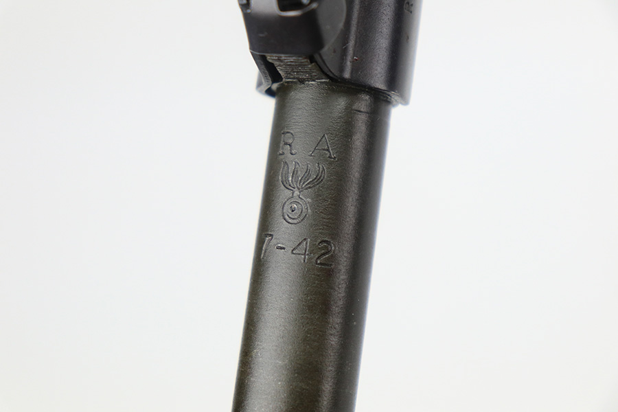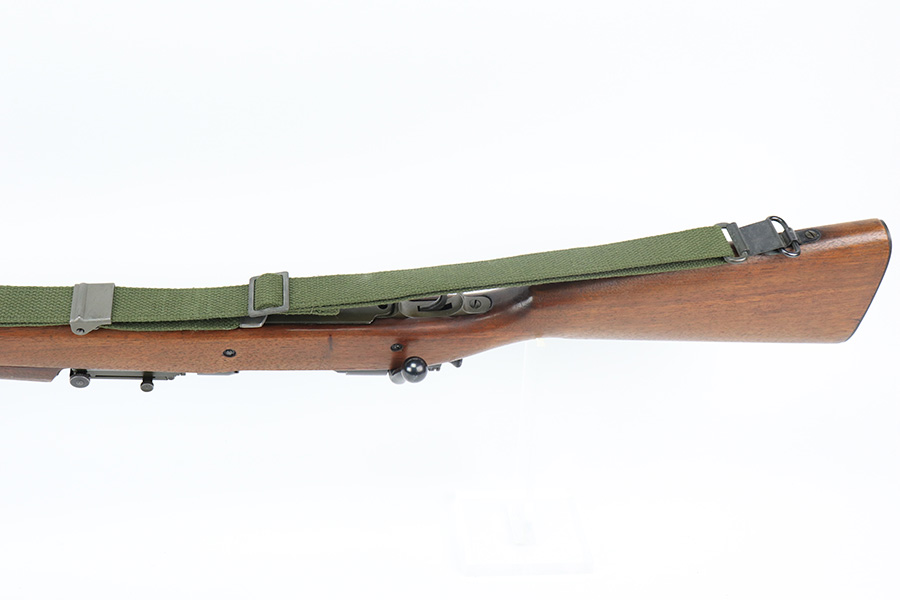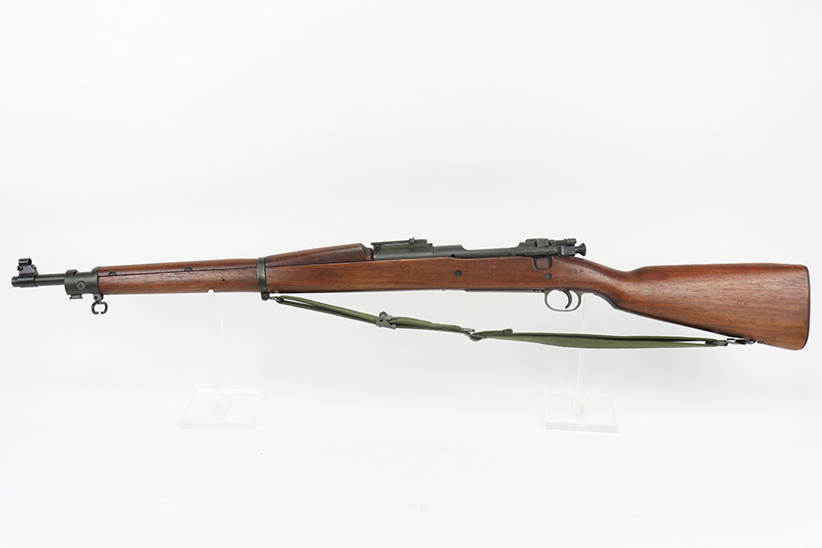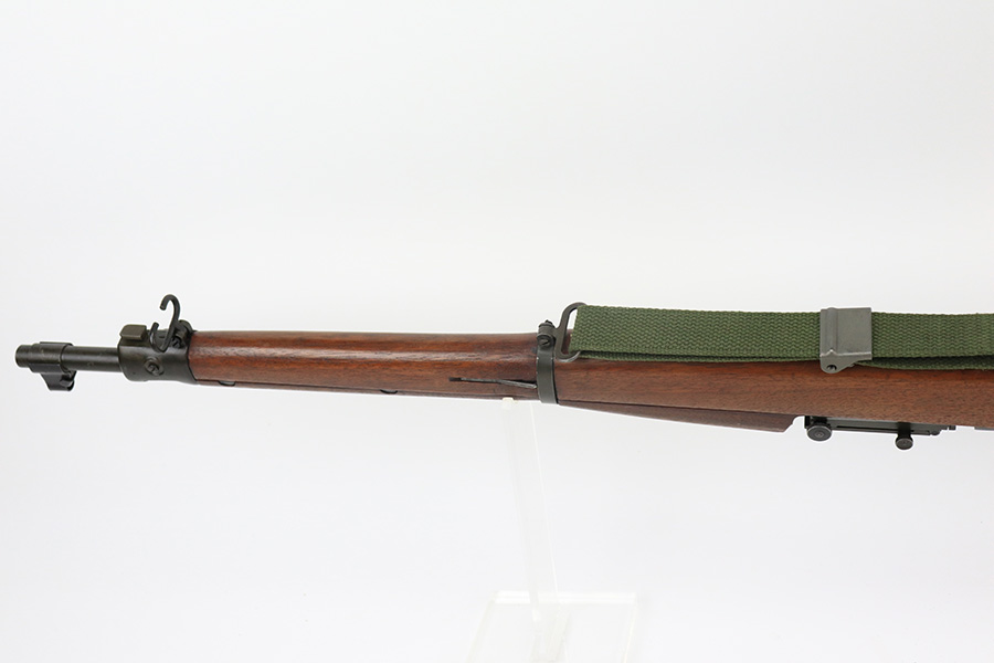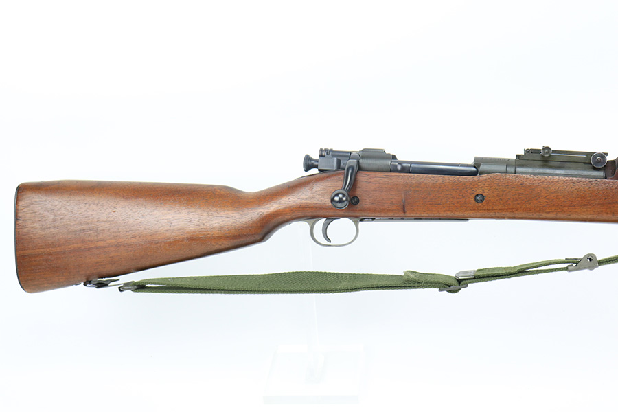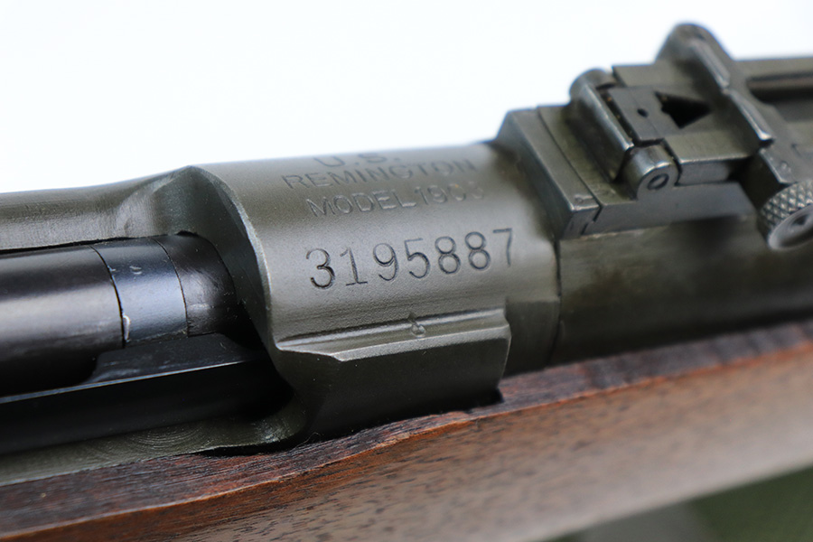 6/7/22 – This is a minty example of a Remington Model 1903 rifle issued to the US military in about August of 1942. The barrel is Remington marked and dated July of 1942. There are “RA” and “OG” arsenal markings on the stock, indicating that this gun was later reworked at the Ogden and Raritan Arsenals. There is also an “FJA” marking, which is the military approval stamp for Remington. Overall, the gun is in minty condition. There are very few signs of use except for some very mild discoloration on the receiver. The stock is minty and was likely replaced. Comes with a front sight hood and green canvas sling. Mint bore. Cleaning kit in the butt of the stock.