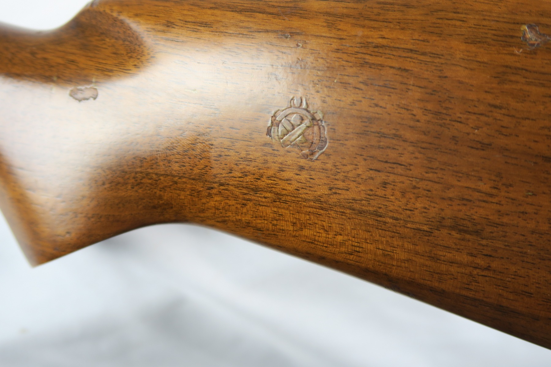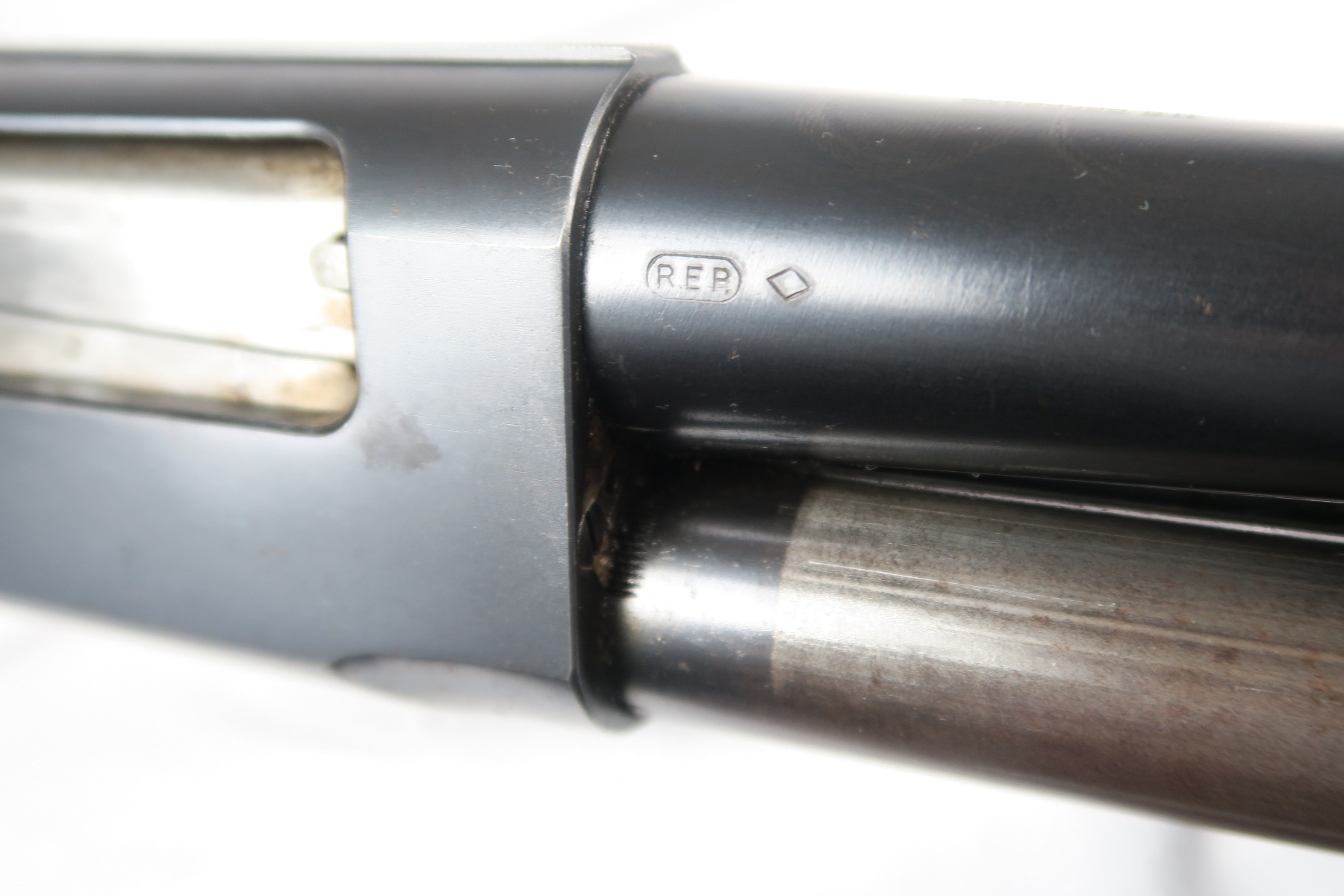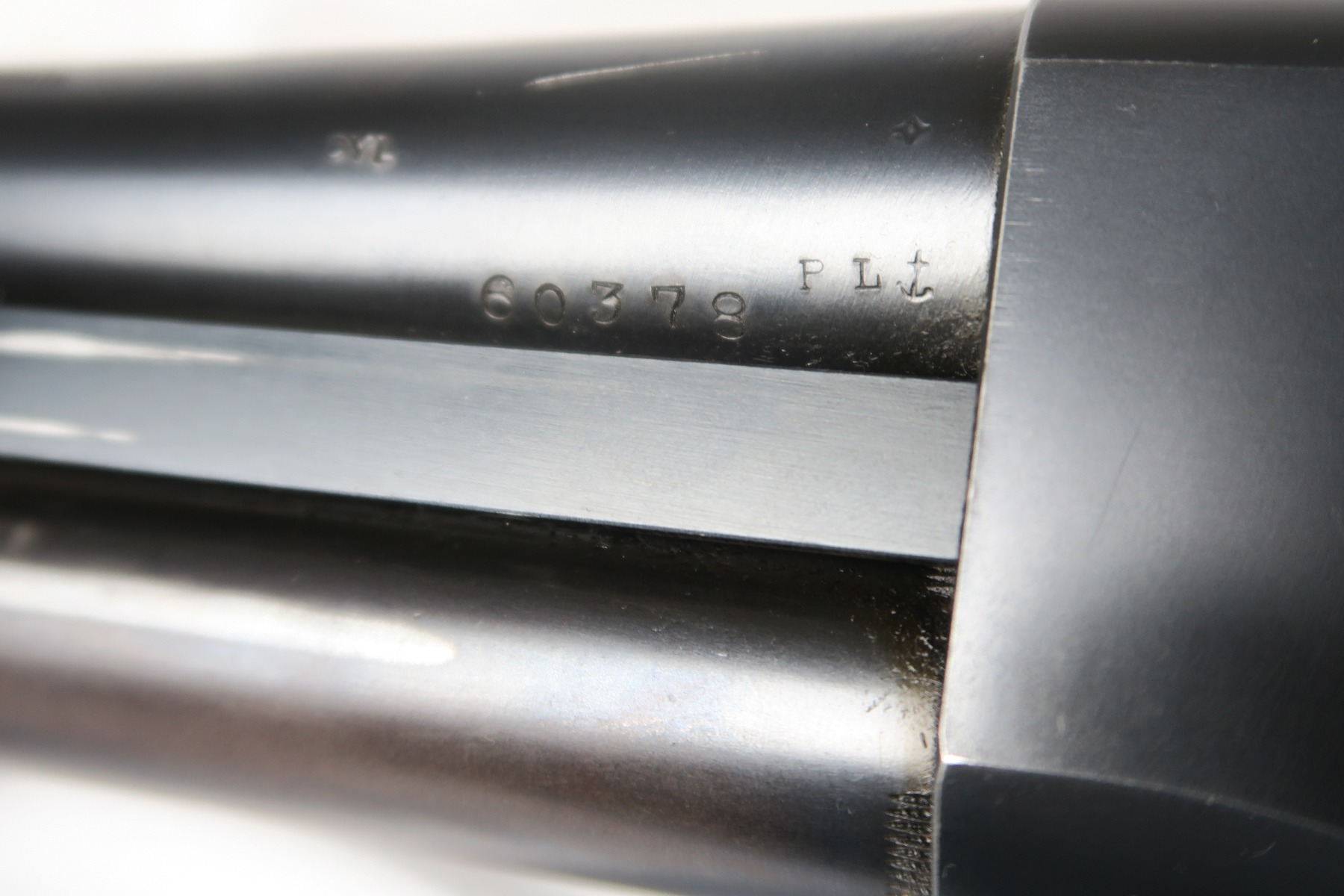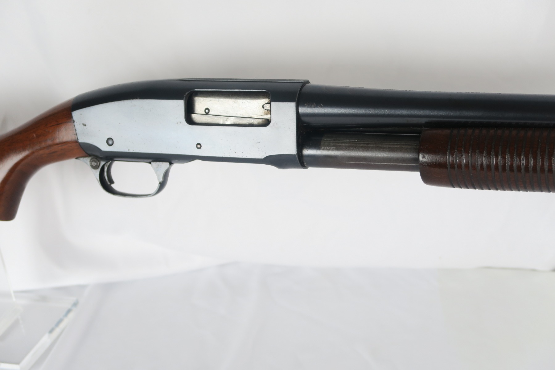 2/16/18 – This is a near-mint Remington model 31 riot shotgun, manufactured in February of 1923 and later issued to the US military. During WWII, Remington Arms supplied almost 8000 Model 31 shotguns for both aerial training and guard duty. This is an example of a short barreled riot or guard duty shotgun. The top of the barrel is roll stamped with the two line Remington Arms address and patent dates, with the left side marked “12 GA. For 2 3/4 inch shells or shorter”. The barrel and receiver are matching, and both are US PROPERTY marked. The stock has the crossed cannons cartouche present. The original bluing rates at 98% with no major blemishes on the barrel or receiver, just slide wear from the pump action. Stock has a couple minor dings but no cracks or chips. Bore is nice and shiny with no frost or corrosion.