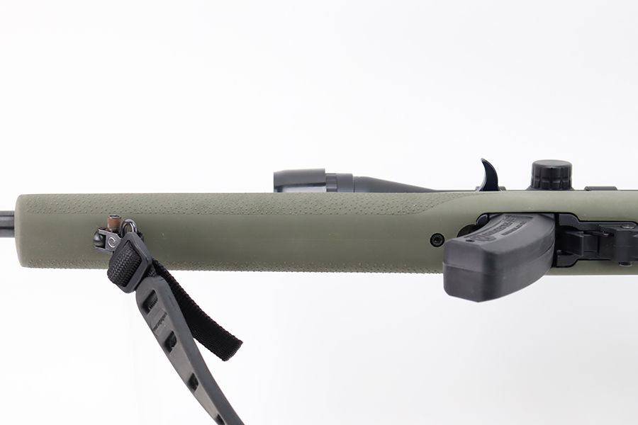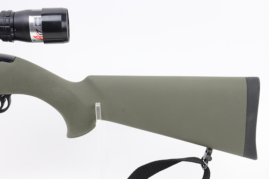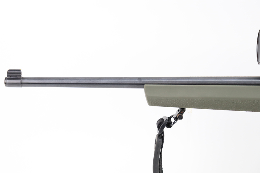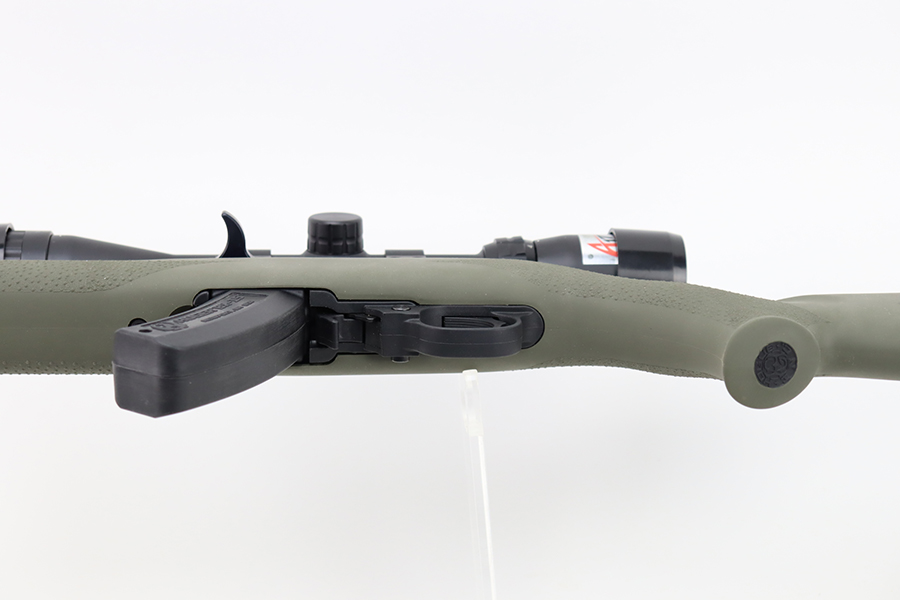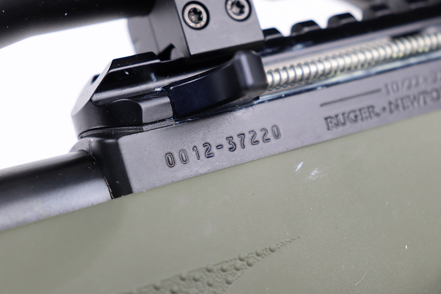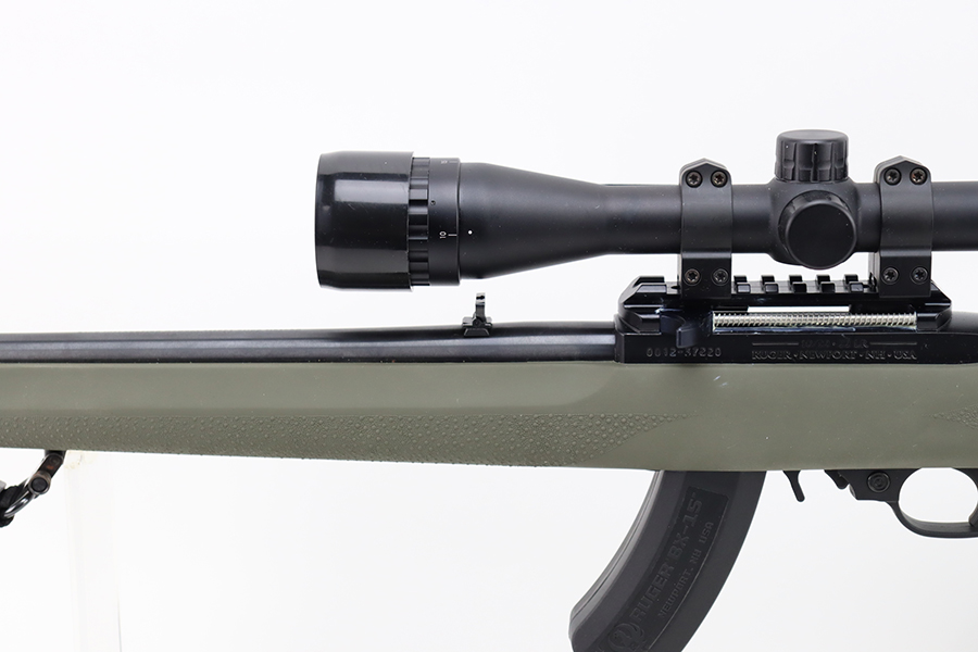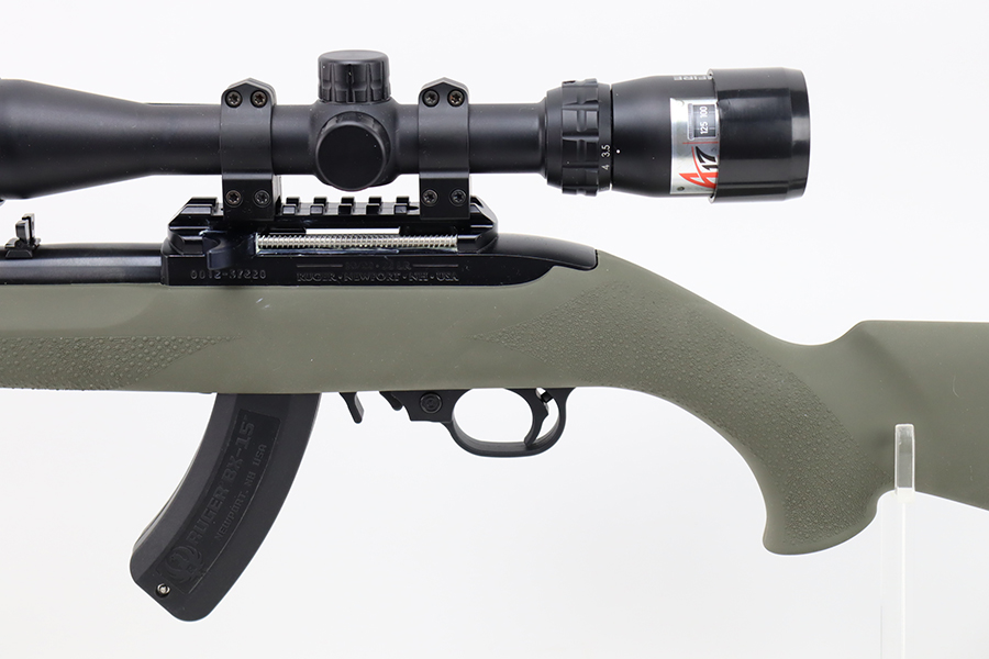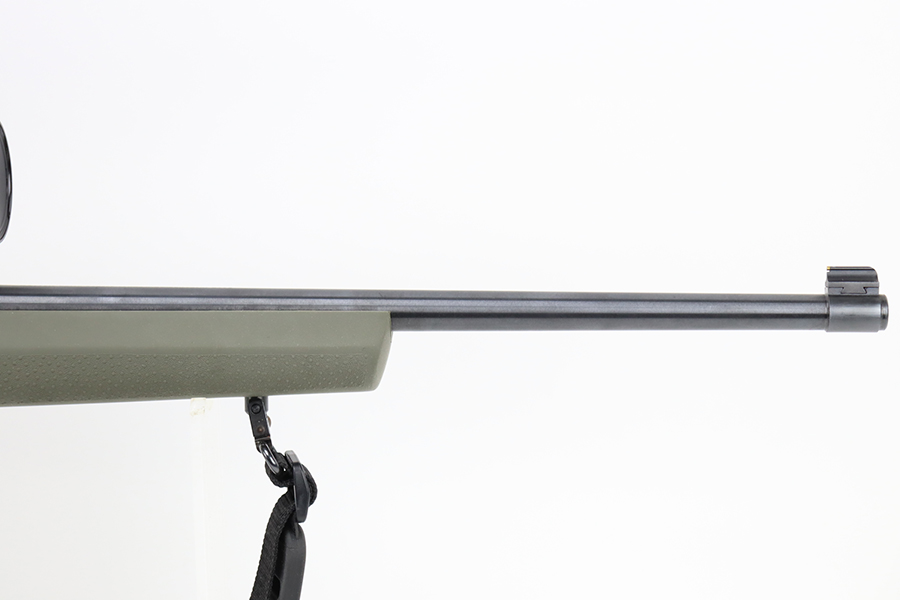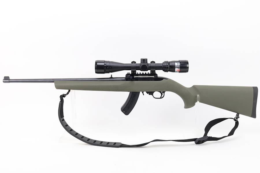 2/8/24 – This is a minty Ruger 10/22 Takedown autoloading rifle, manufactured in 2017 and featuring an 18.5″ barrel. The gun is in pristine, unfired condition, with no wear to note on the metal. The green Hogue OverMolded stock, made from a lightweight polymer, also shows virtually no wear. Stone mint bore. Comes with a Bushnell A17 Rimfire scope with crystal clear optics, two total magazines, sling, owner’s manual, and carrying case.