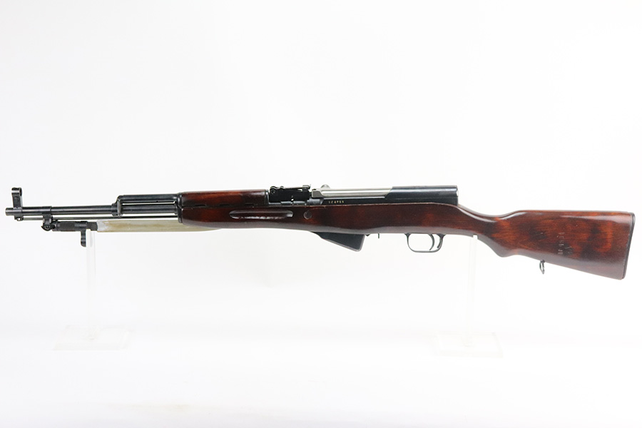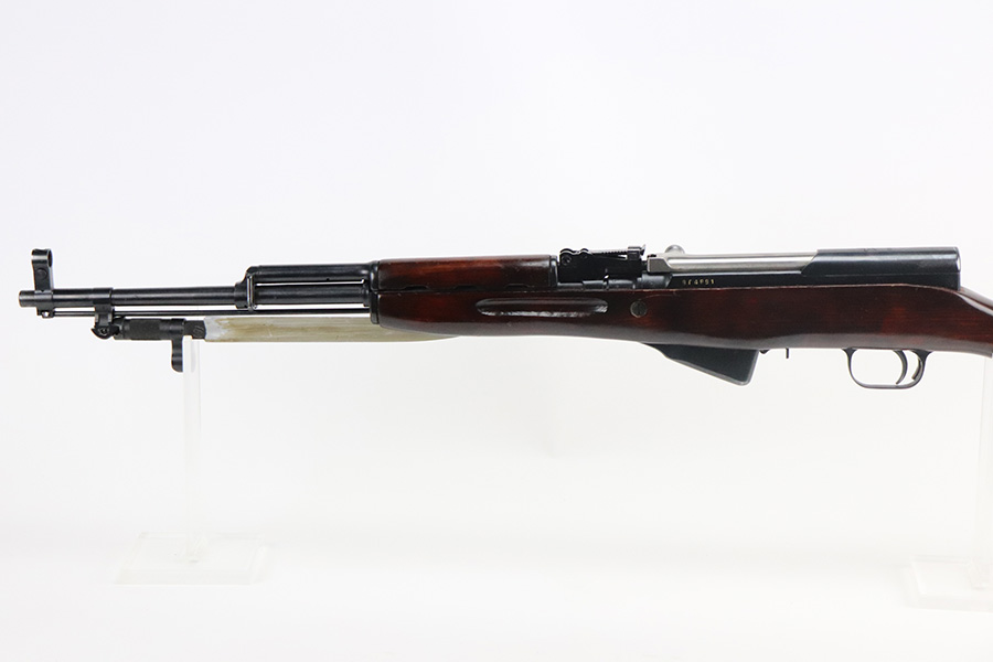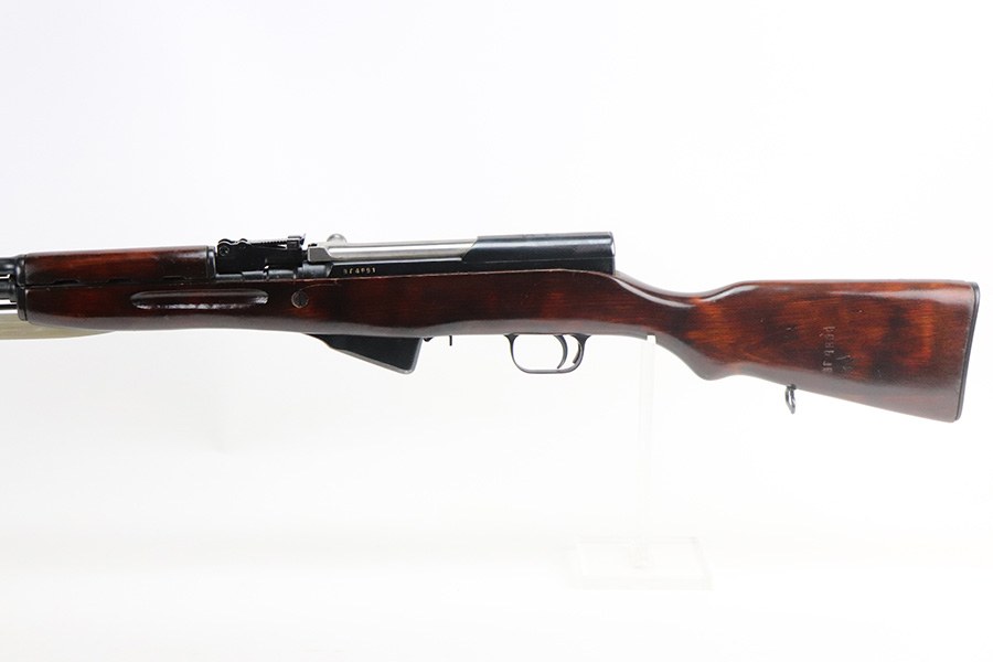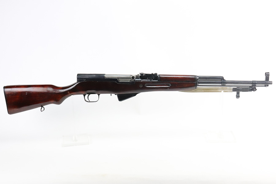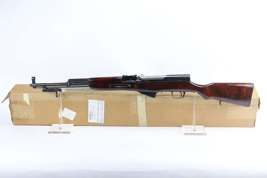 7/23/21 – This is a near-mint Russian SKS that was made at the Tula factory in 1953, and comes in the original Century Arms shipping box. It’s all matching numbers, including magazine, stock, bolt, etc. The bluing is gorgeous with hardly any wear, and the bore looks nearly unfired. A couple of minor dings or nicks on the stocks but also about as nice as you’ll find. Includes the folding bayonet, sling, cleaning/oiling kit, and manual. Import mark on barrel.