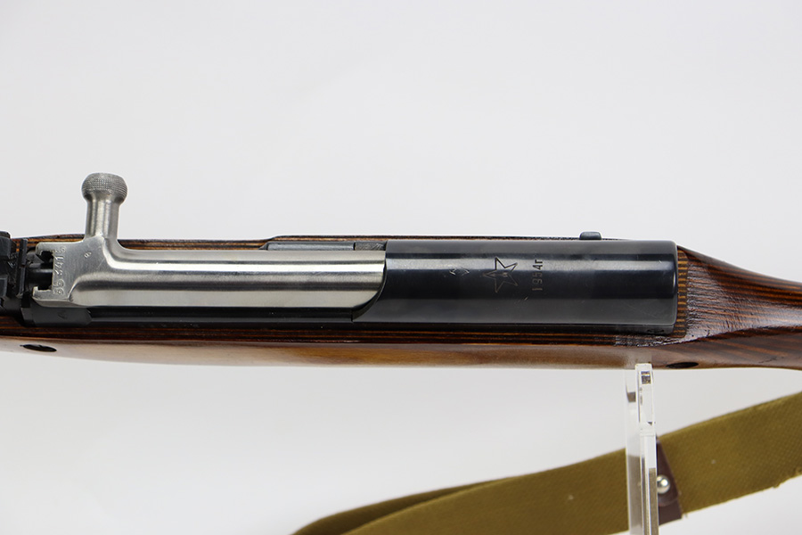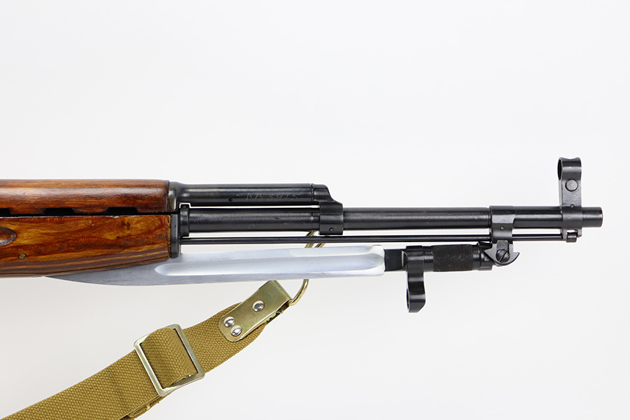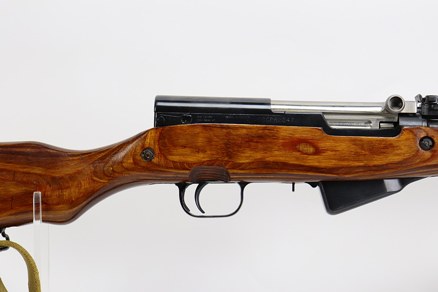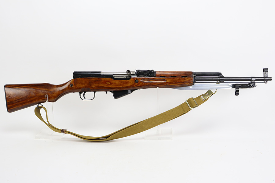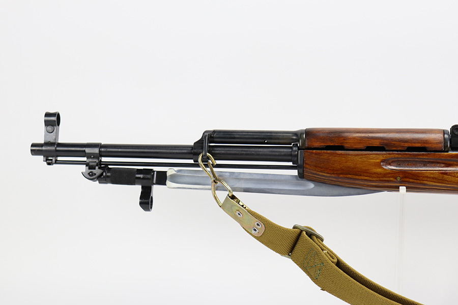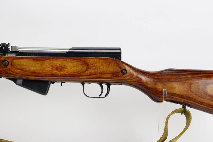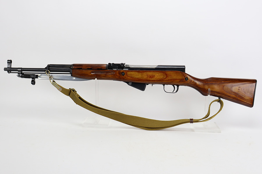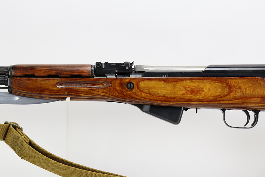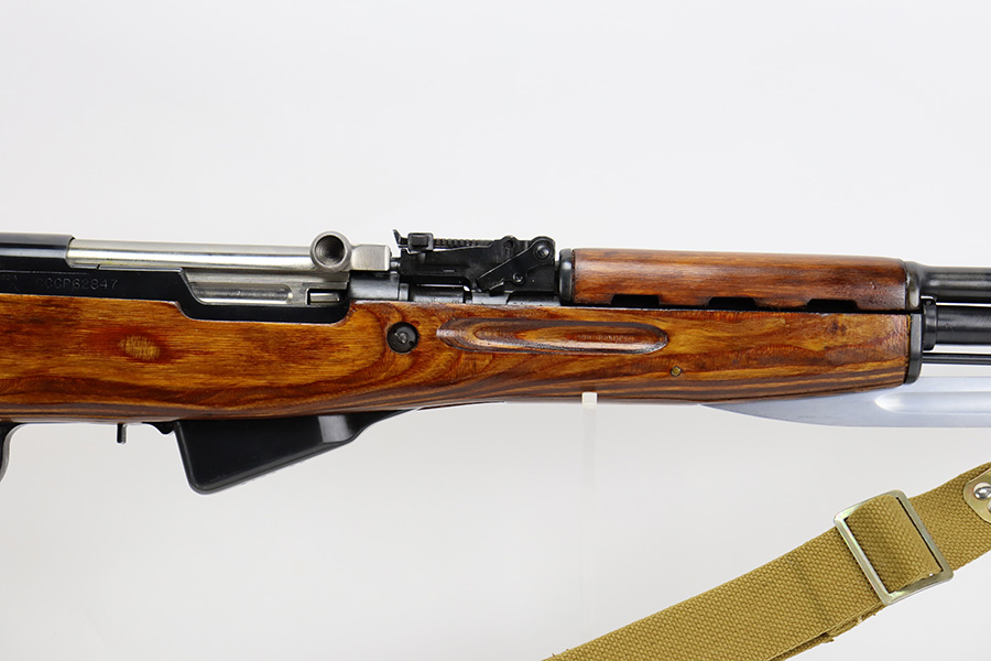 9/8/23 – This is a near-mint Russian SKS that was made in 1954 at the Tula factory. All matching numbers throughout, including the stock, magazine, trigger guard, etc. Hardly any finish loss and a mint bore. Folding bayonet included, as is original web sling. Import mark on receiver. Laminated stock is in mint condition and doesn’t show any dings or handling wear. Correct cleaning kit is in the butt stock.