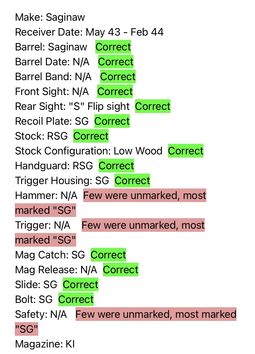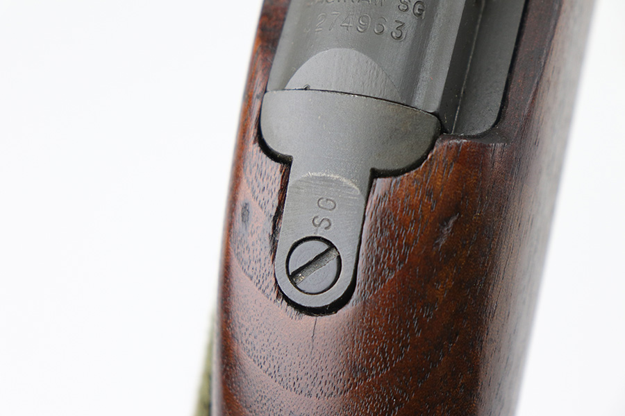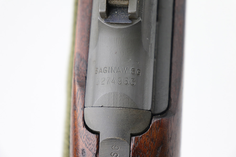 11/16/21 – This is a mint, original M1 Carbine as produced in 1943 at the Saginaw factory. A full parts list is included in the photos for this listing, but it’s original parts throughout. Only 8.5% of total wartime M1 Carbine production was done at Saginaw, and this one is in nearly untouched condition. Minty finish throughout, minty bore and a near-mint stock with just a single ding on the wrist. Sharp inspectors marks on right side of stock. Comes with canvas shoulder sling.