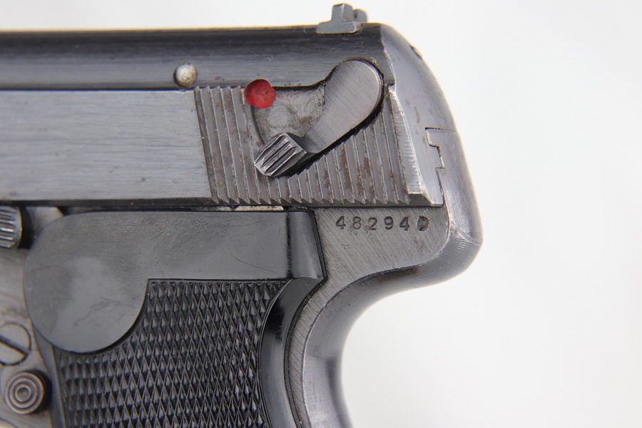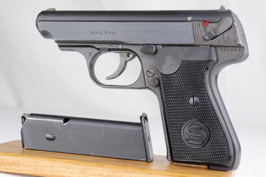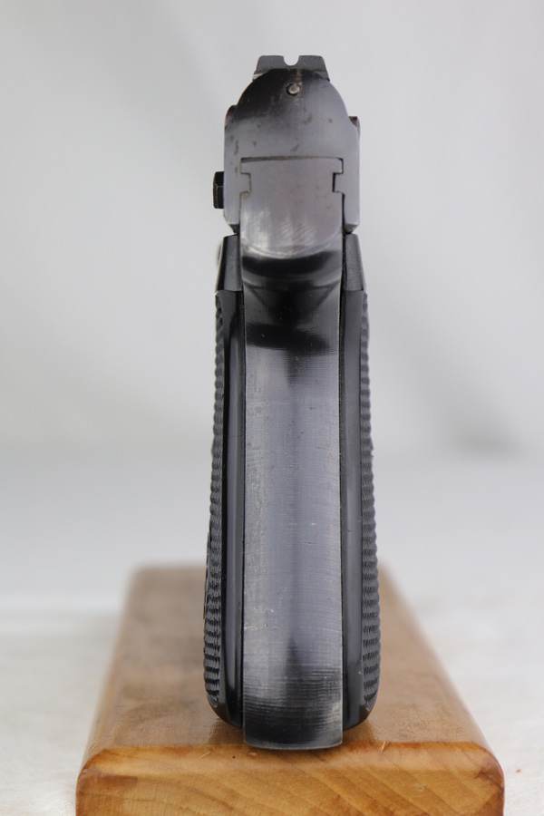1/21/19 – This is a near-mint Sauer 38h with German Army acceptance proof on trigger guard. The original bluing rates at 98-99% with a spot of finish loss on the back strap and minor muzzle wear. Excellent bore, grips and magazine.