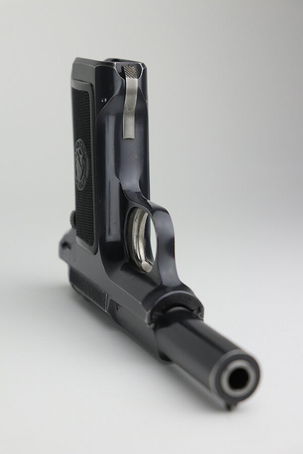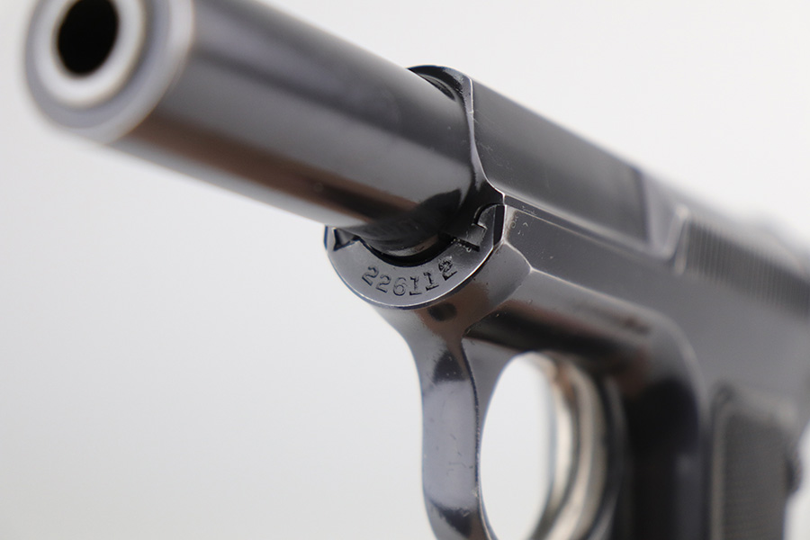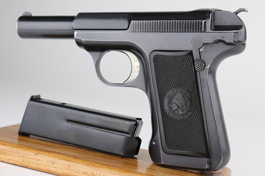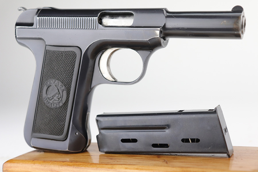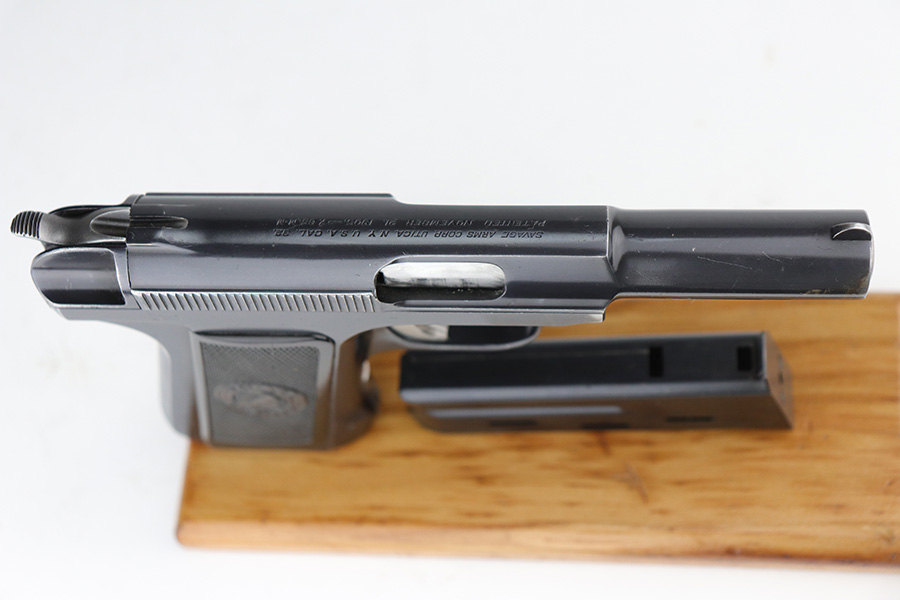 9/27/21 – This is a minty example of a Savage Model 1907. It is all matching and comes with excellent black grips and a proper magazine. It has retained about 97% of its original finish. There are just hints of wear around the high edges in general and minor wear/patina around the muzzle. Mint bore.