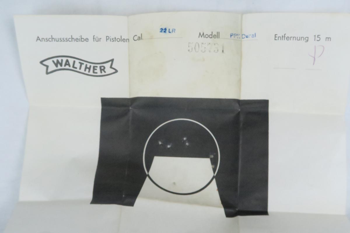 12/19/17 – This gun is as new, almost exactly as it left the Walther factory nearly 50 years ago. It has only the very slightest muzzle wear. It is a rare Dural lightweight version in even rarer .22LR and is dated 1968 on the chamber. It is a complete matching set that comes with an original box, spare magazine, test target and manual. Made in West Germany, Walthers made in 1960s are considered to be the best finished Walthers of all time.  Bore looks unfired.