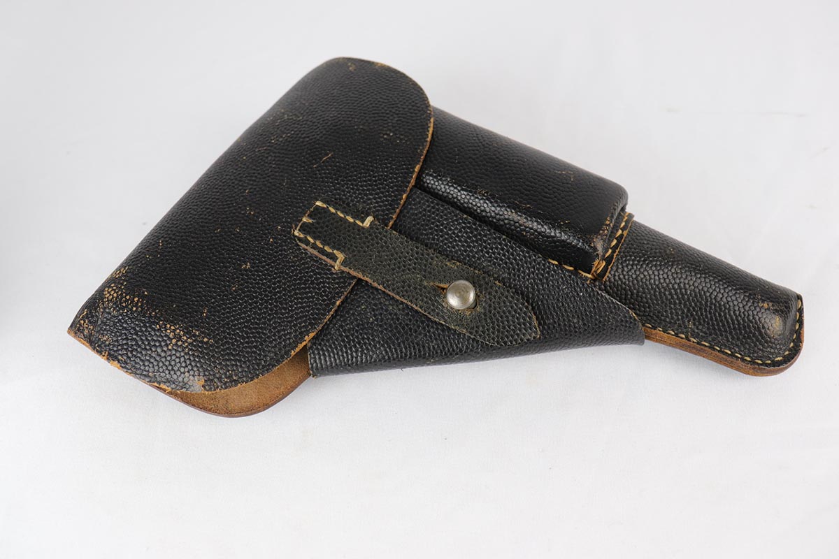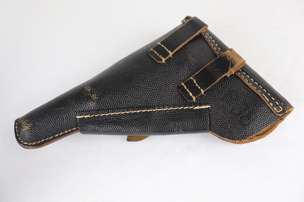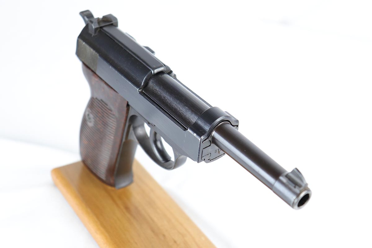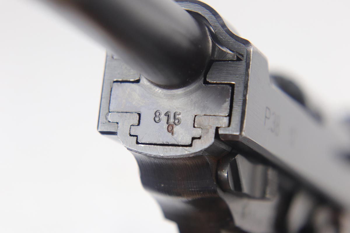 7/13/18 – This is a minty, desirable Mauser P.38 from 1943, with mixed acceptance proofs on the right side of the slide.  This variation rarely lasts long on the site!  The pistol is all matching and original with 98% blue remaining.  There is only minor edge and muzzle wear.  Excellent reddish grips and a terrifc bore.  Comes with a waffen marked, softshell holster that is ’44 dated.