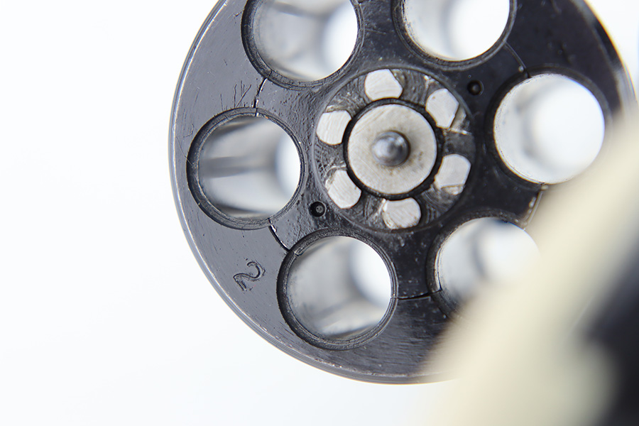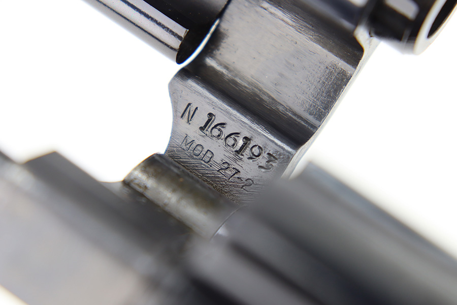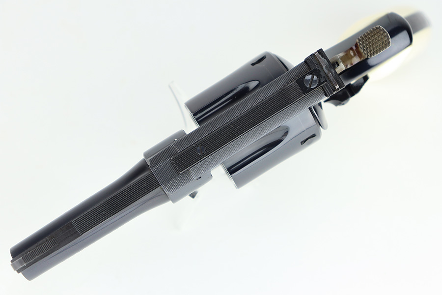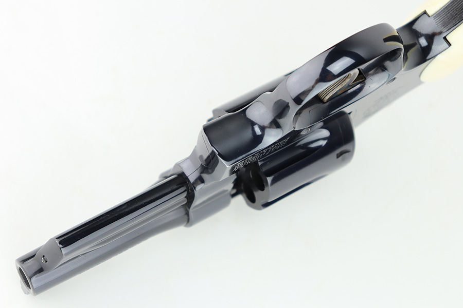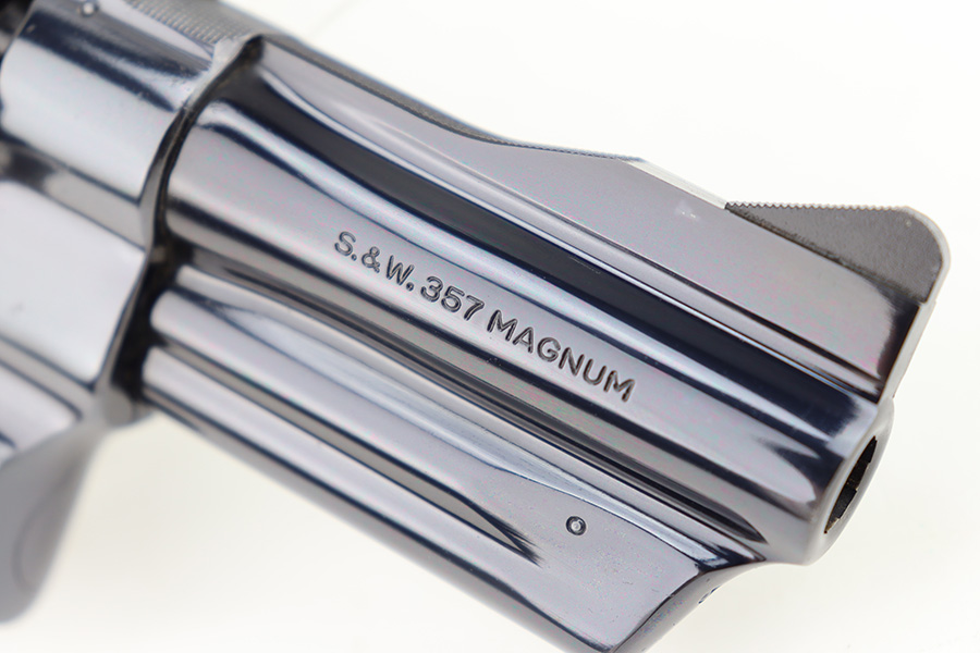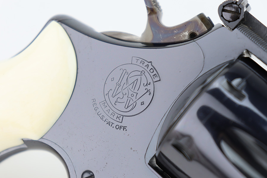 11/17/23 – This is a near-mint Smith & Wesson Model 27-2 with ivory grips. 3.5in barrel with minty bore. Serial dates this gun to late 1973 or early 1974. The revolver has 99+% of the original blue remaining, with just a hint of muzzle/high edge wear and a light turn line on the cylinder. Beautiful case hardened hammer and trigger.
