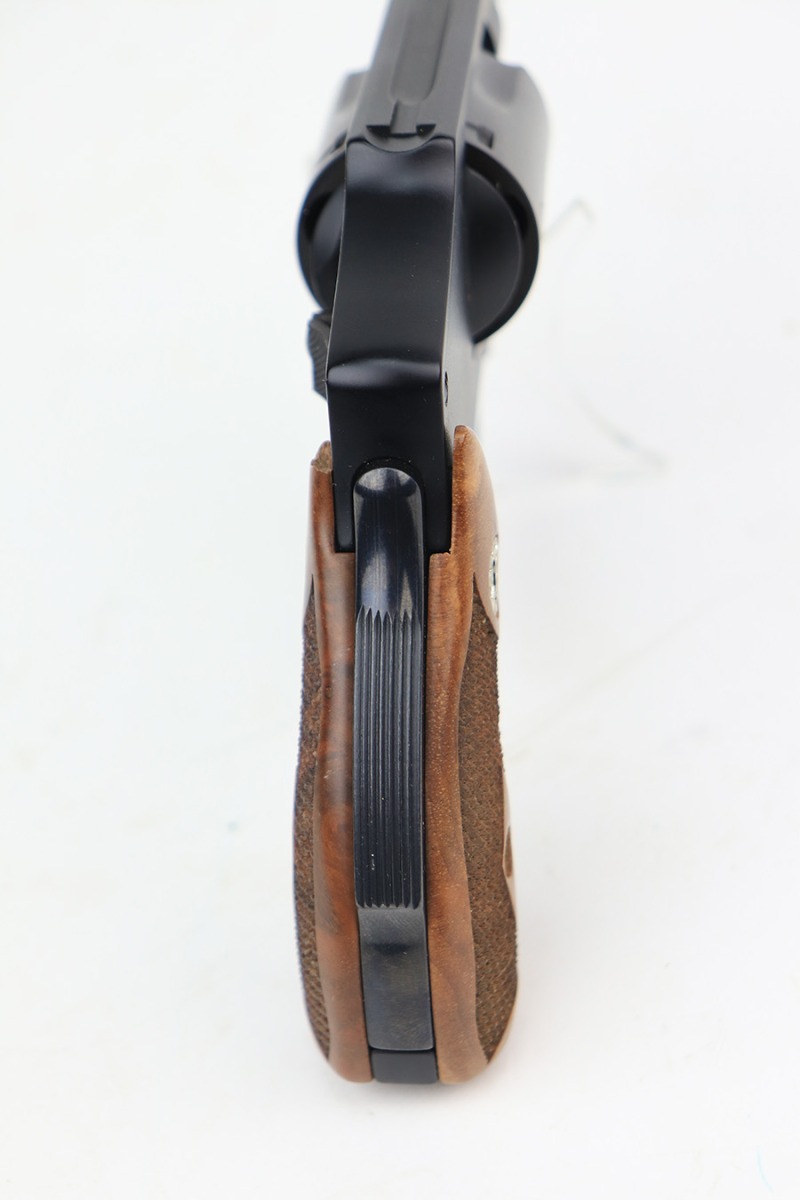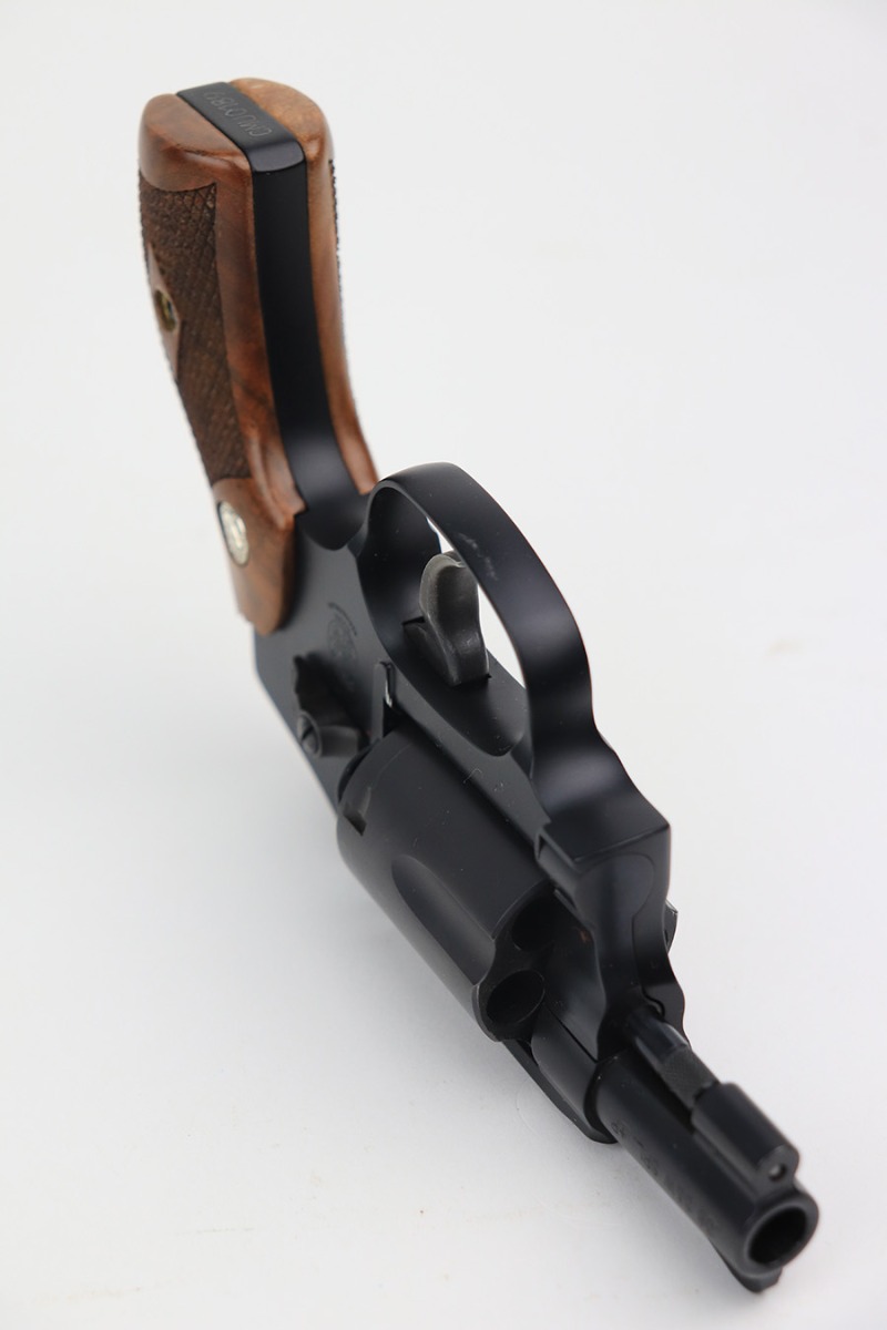 2/9/22 – This is a minty S&W Model 42-2 revolver. Blued finish with a turn line on cylinder and a tiny bit of surface wear along the top of the frame. Minty bore and excellent grips aside from a chip in the upper corner of the left panel. Two inch barrel. FFL required.
