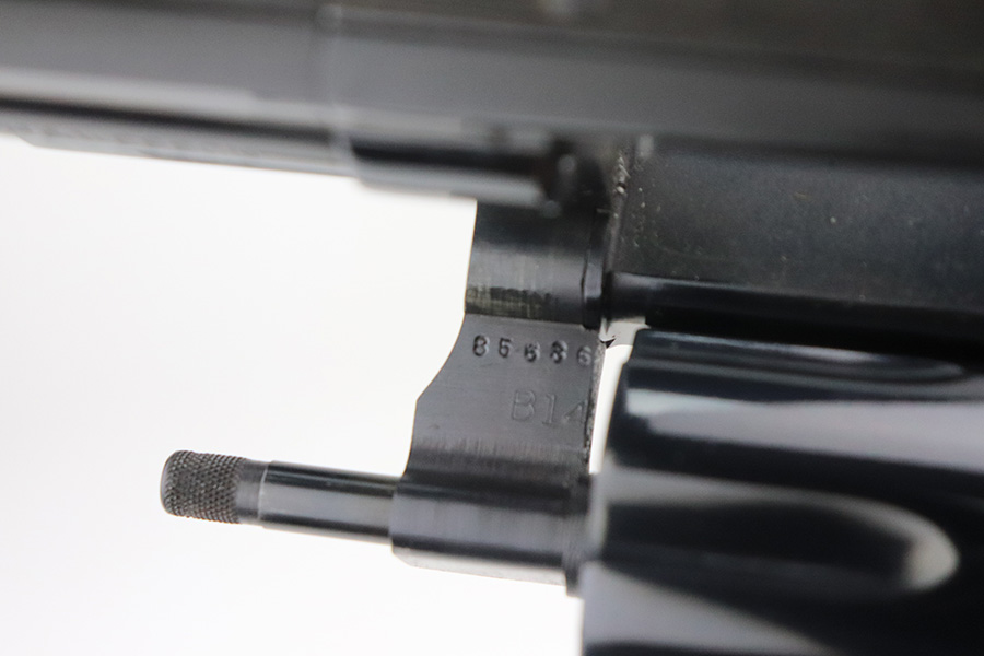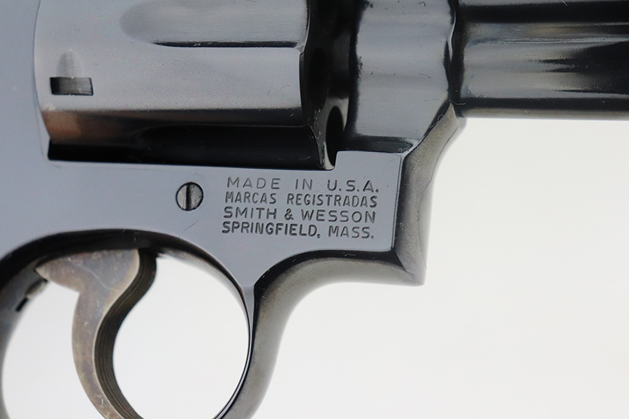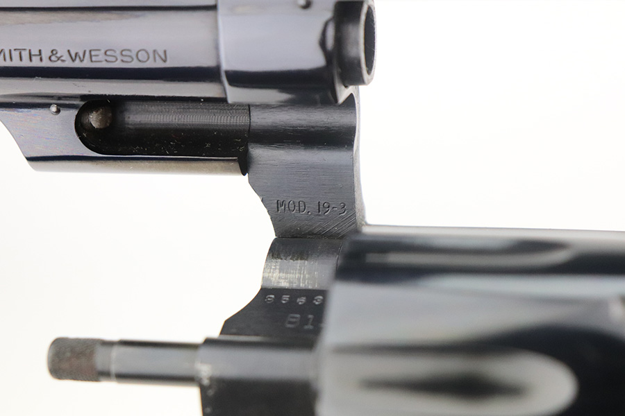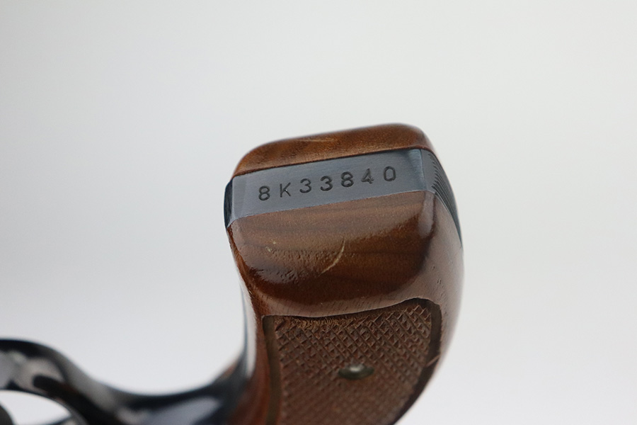7/13/21 – This is a mint Smith & Wesson Model 19-3 revolver from 1975. It has a minor roll mark on the cylinder, but is in otherwise near-perfect condition. Barrel is 2.5in long, chambered for .357 Magnum. Beautiful, original grips with no defects. Nice case hardening on trigger and hammer. Smooth mechanics.