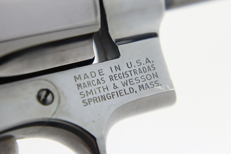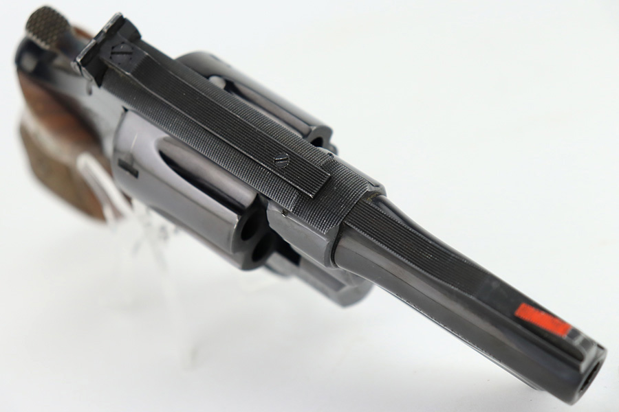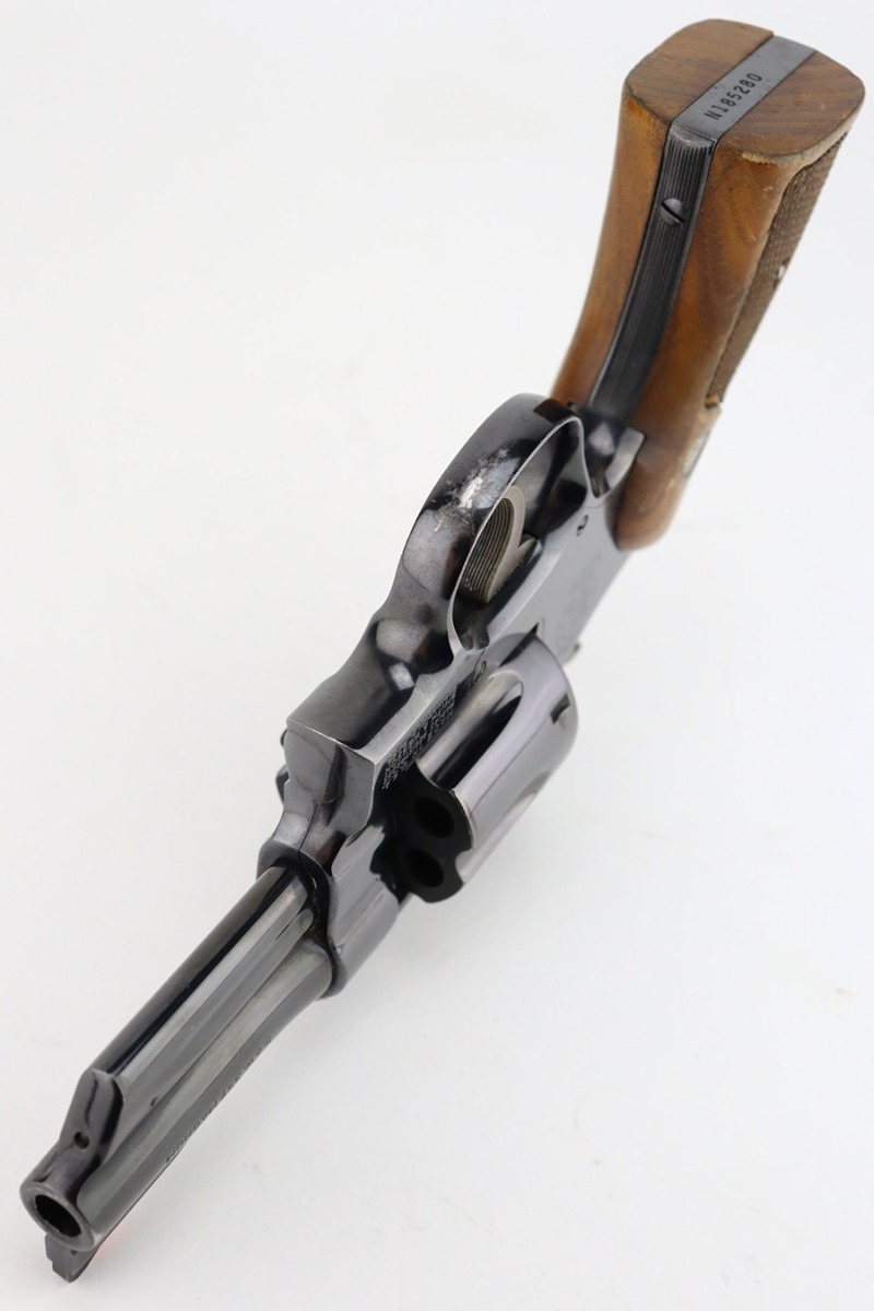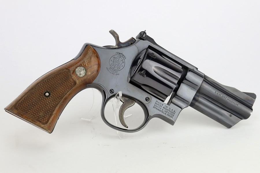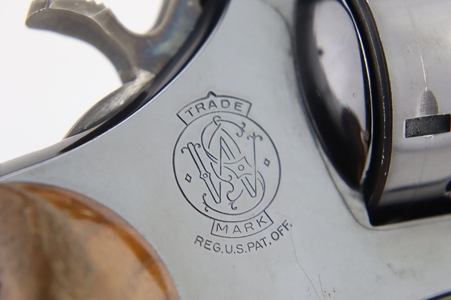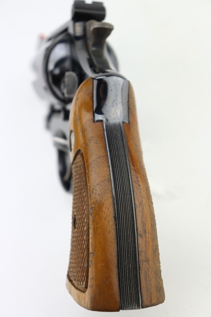 1/12/24 – This is a near-mint example of a Smith & Wesson Model 27-2 Revolver from about 1974. Chambered in .357 Magnum with a 3.5″ barrel. The original high polish finish rates about 98% with a hint of muzzle wear, a very light roll mark on the cylinder, and a few tiny scratches here and there. Some tiny dings on the butt of the frame. Fitted with very nice checkered Walnut grips. Mint bore. Smooth action.