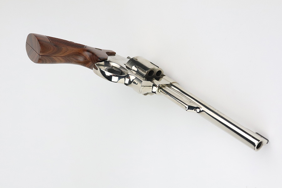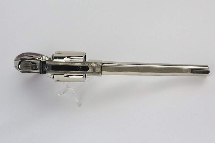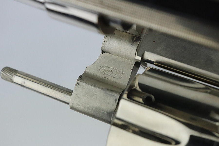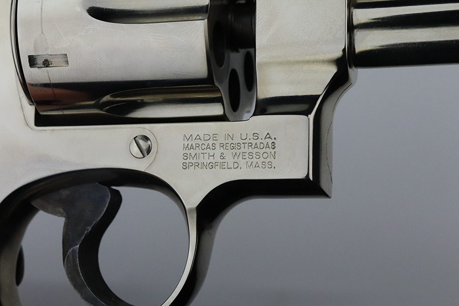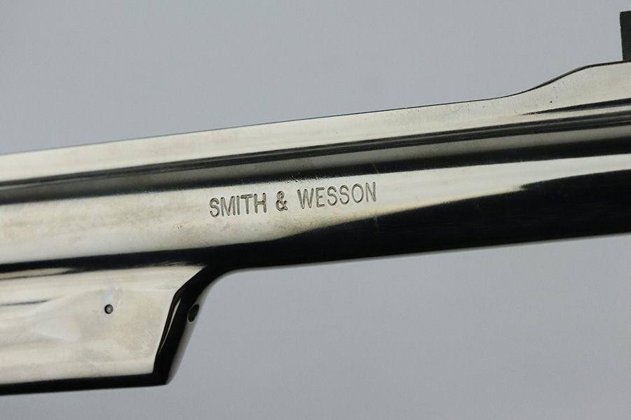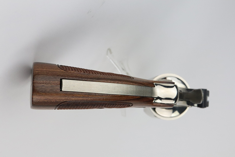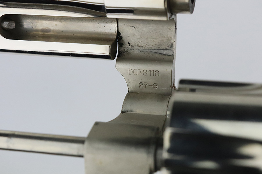 8/2/21 – This is a near-mint Smith & Wesson Model 27-9 revolver with factory nickel finish and 6.5in barrel. The 27-9 is Smith & Wesson’s latest issue of the classic Model 27, and this one is in minty condition aside from a roll mark on cylinder and a few minor surface scuffs. Perfect mechanics and an excellent bore. Minty original grips. FFL required.