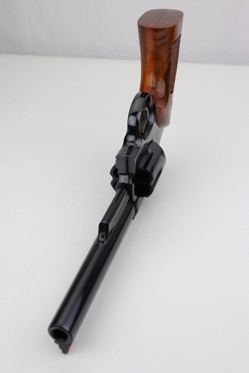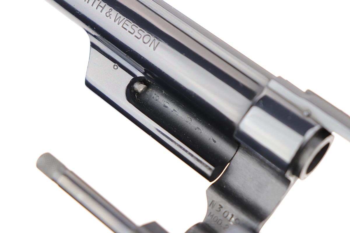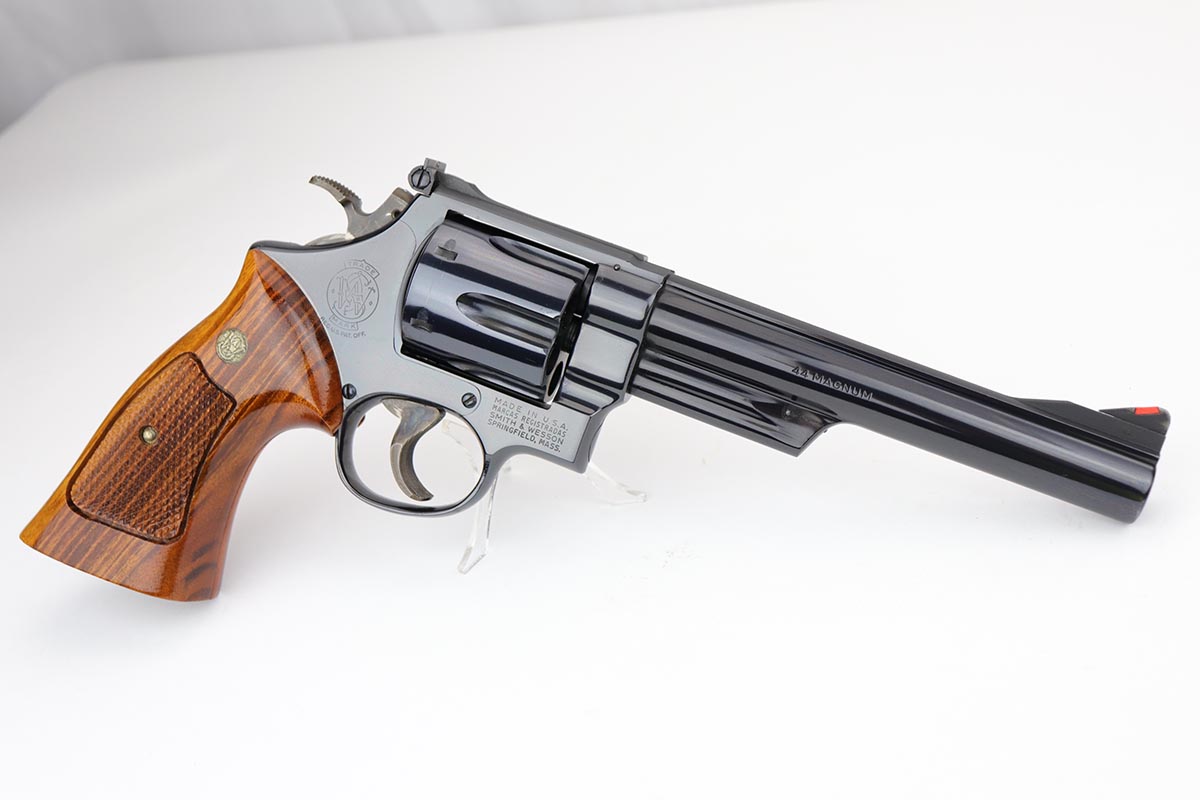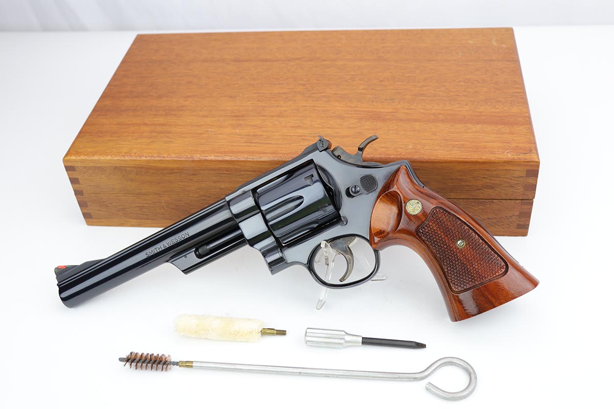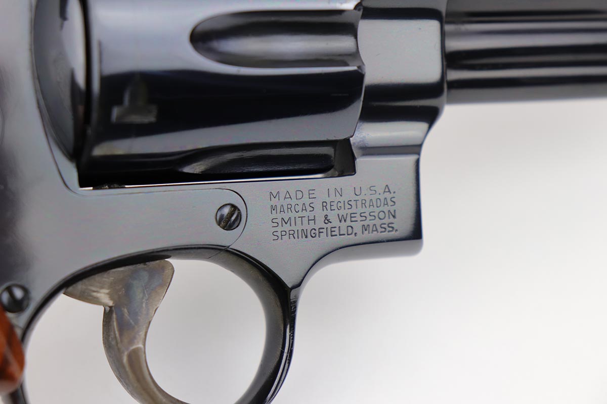10/15/19 – This is a near-mint Smith & Wesson Model 29-2 revolver in the original display case. Serial dates the gun to 1975, and it almost looks like it was made yesterday. There’s just a minor roll mark on the cylinder and maybe a tiny hint of ‘box wear’. Perfect timing/action. Beautiful grips and case hardening on the trigger and hammer. Mint bore. Several of the original Smith & Wesson documents are present, too.
