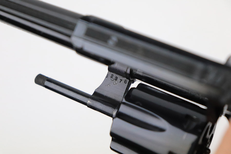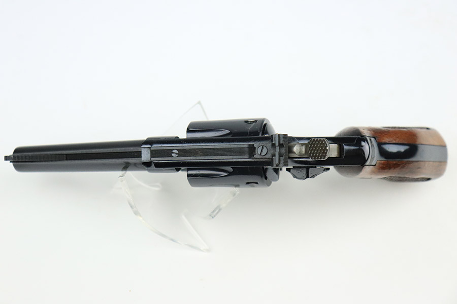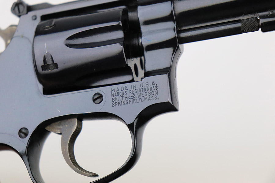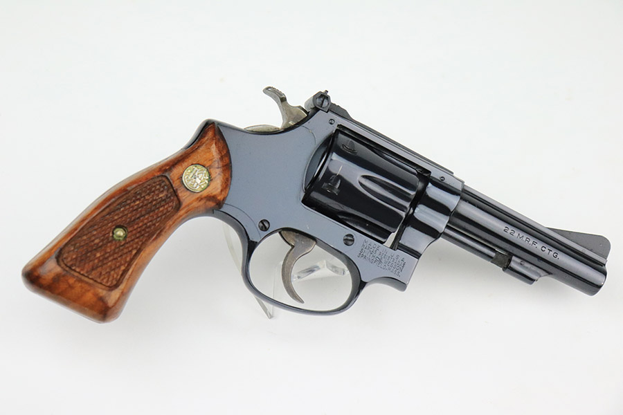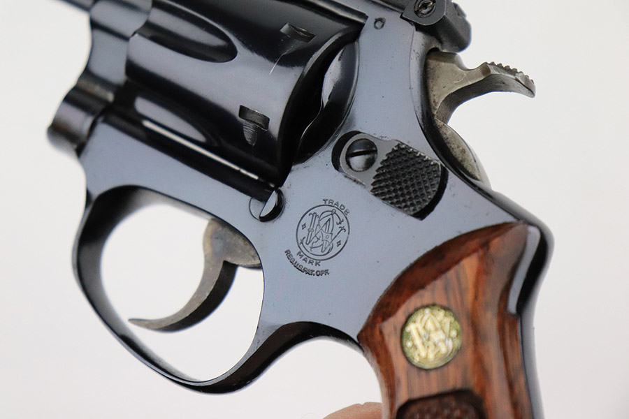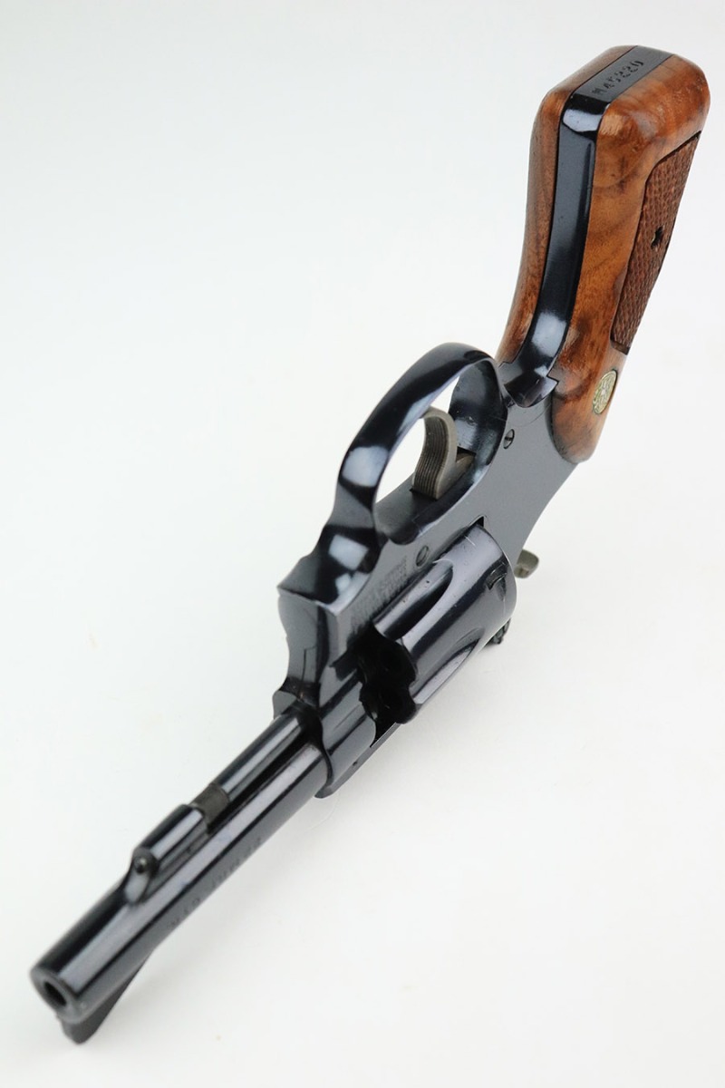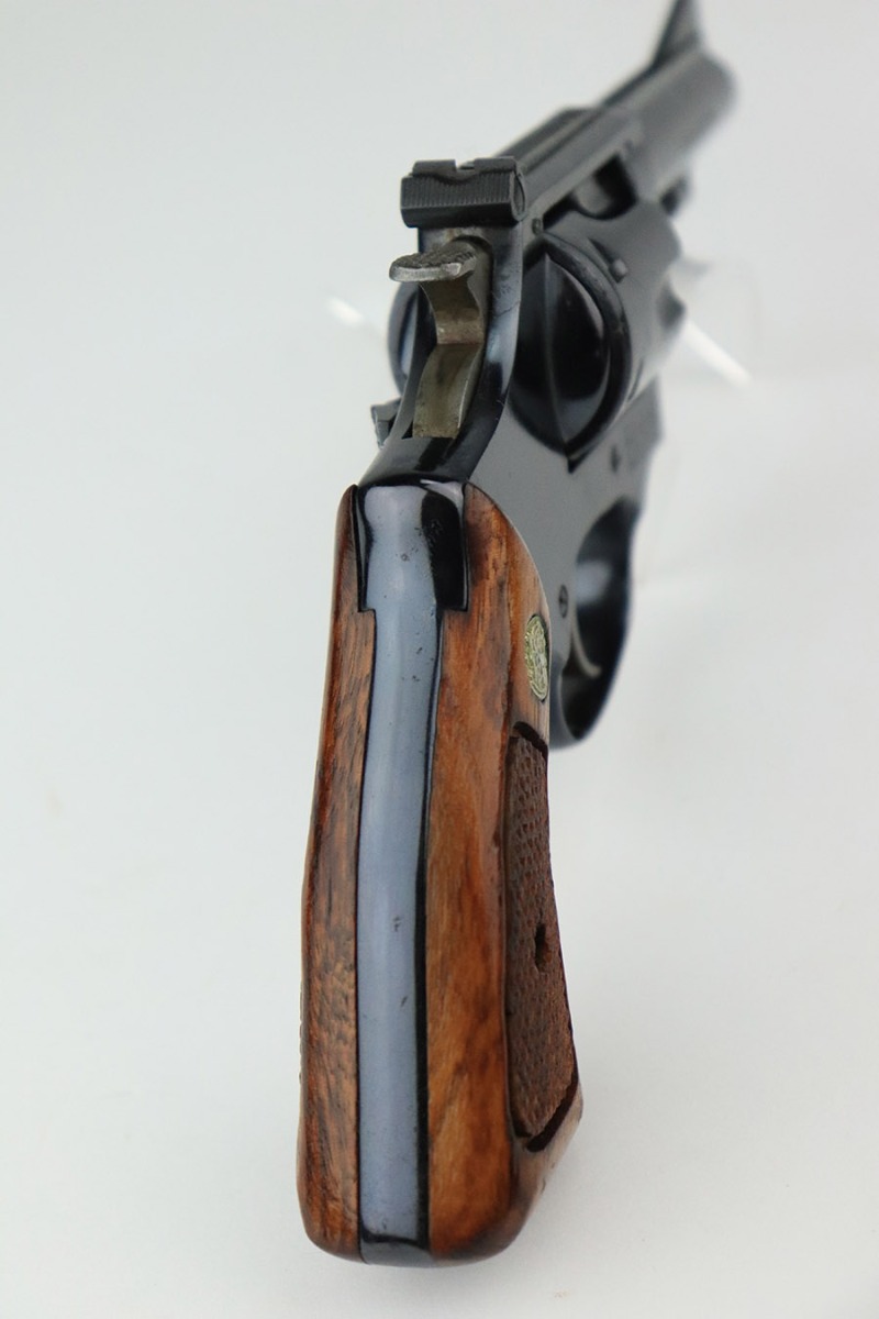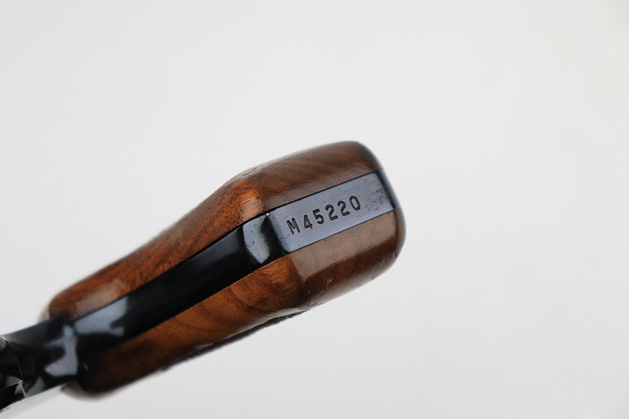 11/21/22 – This is a near-mint example of a Smith and Wesson Model 51 revolver, manufactured in the 1970’s and chambered in .22 Magnum Rim Fire. 3.5″ barrel. It is all matching and has retained nearly all of its beautiful high polish bluing. There is just a hint of wear around the muzzle and a very faint roll mark on the cylinder. Excellent case-hardening on the hammer and trigger. Comes with excellent hand-checkered Walnut grips – the right panel is numbered and matching. The bore is like-new. The cylinder is tight, and the action is smooth.