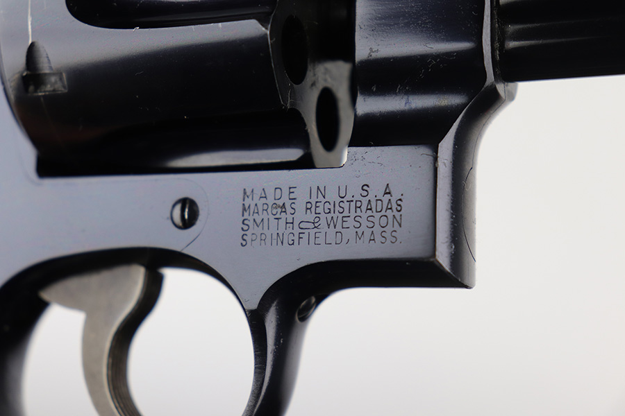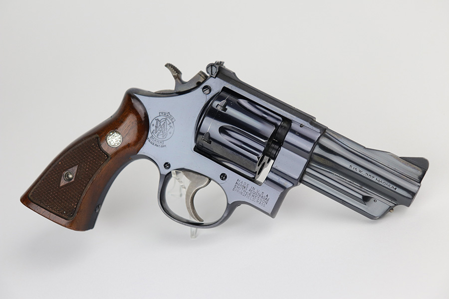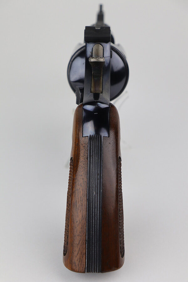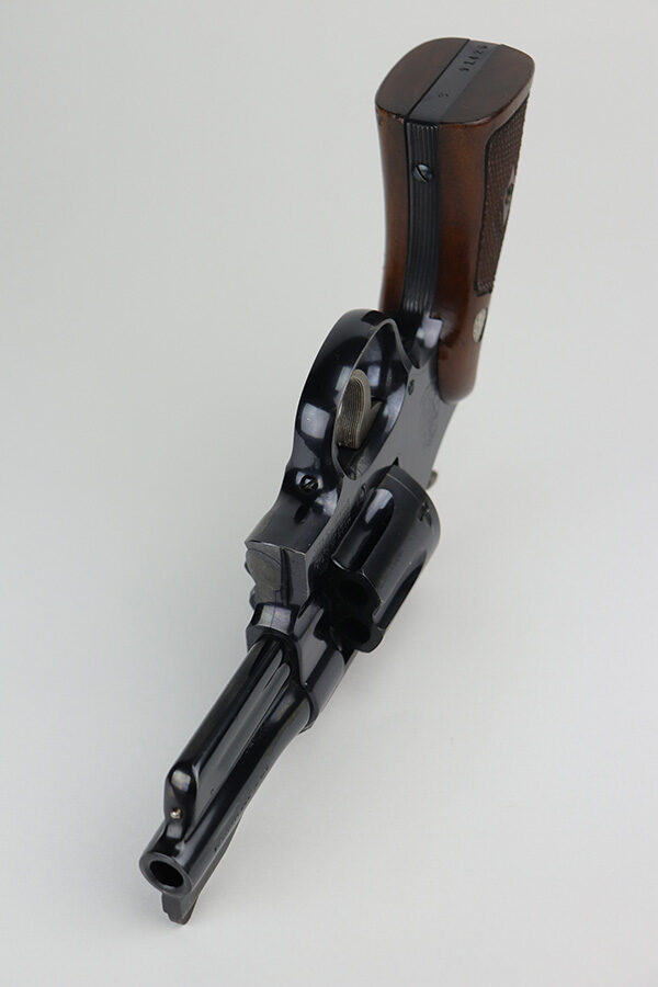 9/2/21 – This is a beautiful example of a S&W Pre-27 revolver manufactured in 1952. It is chambered in .357 Magnum, has a rare 3.5 inch barrel, and has a 5-screw frame. Excellent checkered wood grips. The cylinder is tight and the action is smooth. It is in near-mint condition, retaining about 99% of its finish. There is just a light roll mark on the cylinder. The bore is mint.