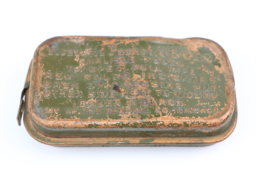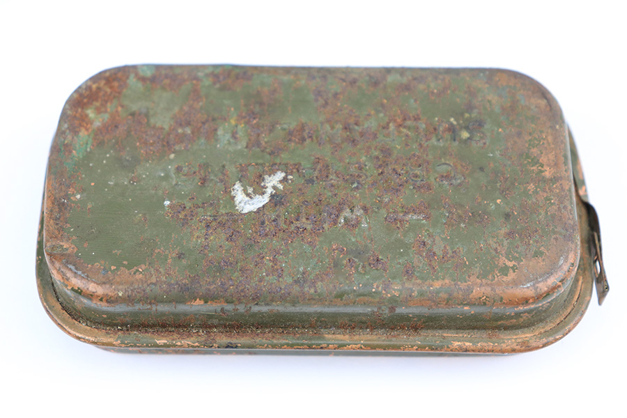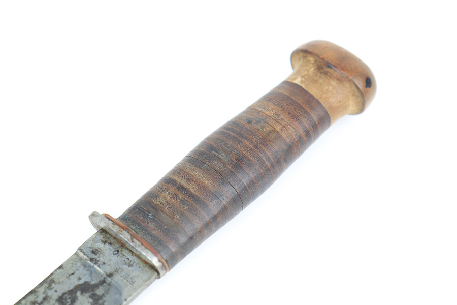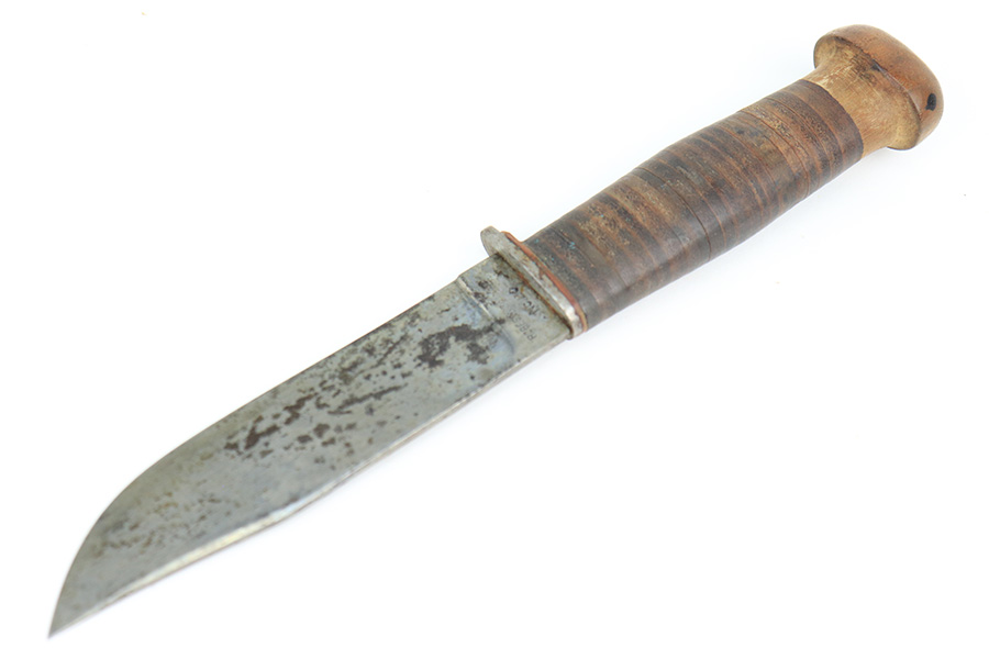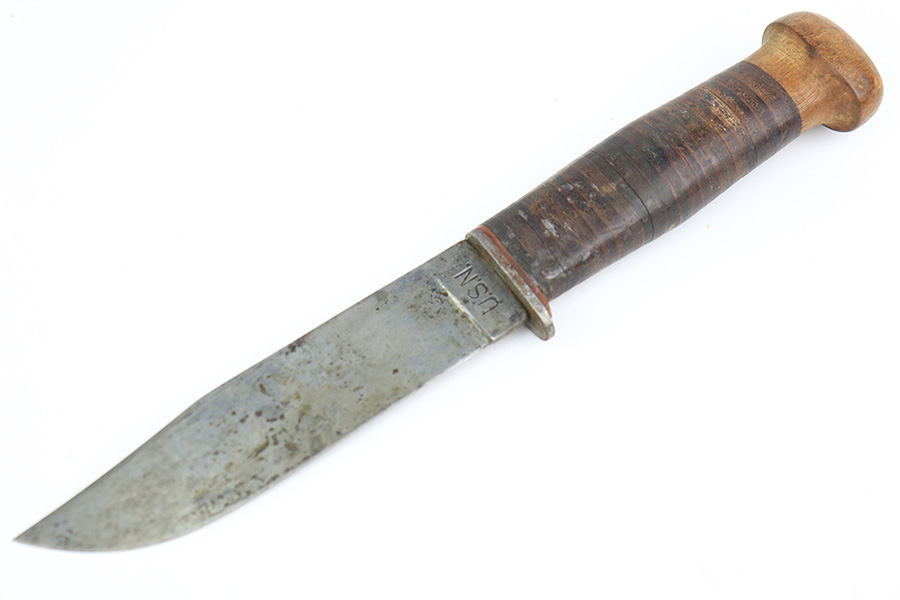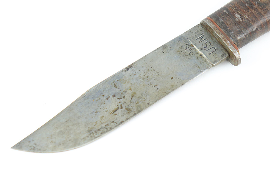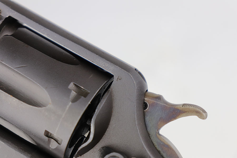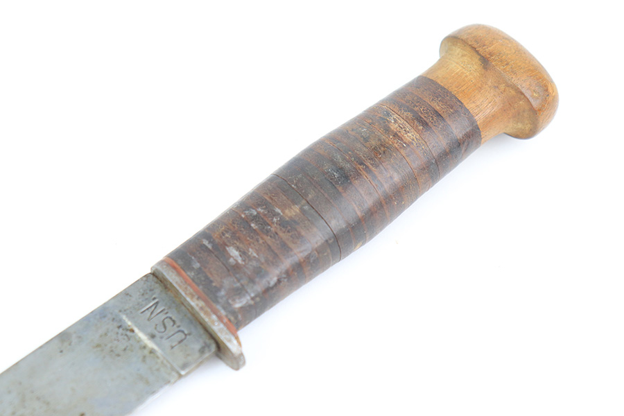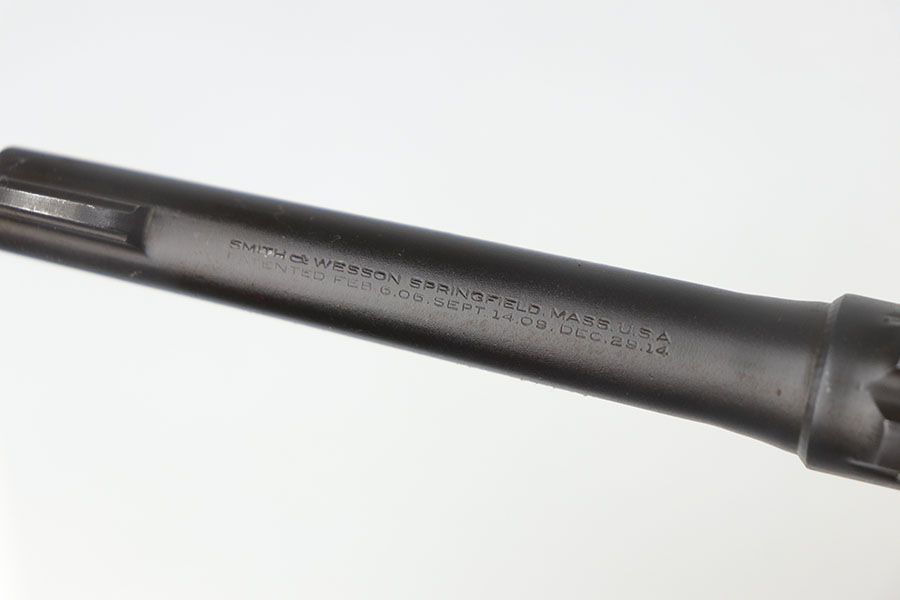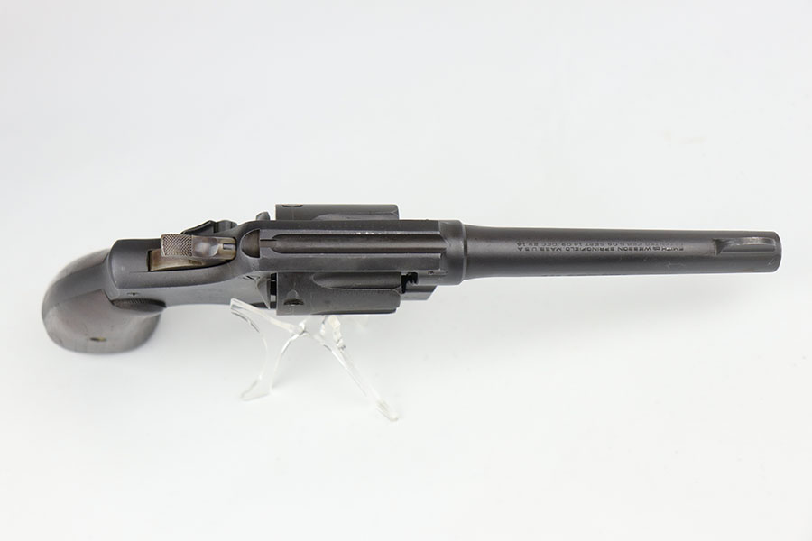 5/19/22 – This is a near-mint Smith & Wesson Victory Model rig from World War II. It is U.S. Property marked and G.H.D (Guy H. Drewry) inspector marked. The original finish is about 98-99% with a little bit of muzzle wear and a thin roll mark on cylinder. Minty bore. Made from 1942 to 1944, with a production run of ~500,000. They were standard issued side arms for US Navy and Marine air crews due to their size and ease of operation. It is .38 S&W. Super smooth action. Comes with a complete set of accessories that includes a holster, belt, first aid kit, canteen and a Robeson USN knife. The first aid kit pouch is maker marked and 1942 dated. Knife is marked U.S.N. on one side and ‘Robeson Shuridge Nc.20’ on the other. Canteen pouch is also 1942 dated.