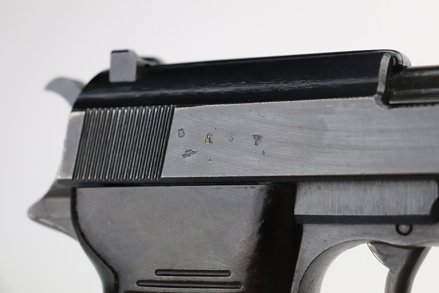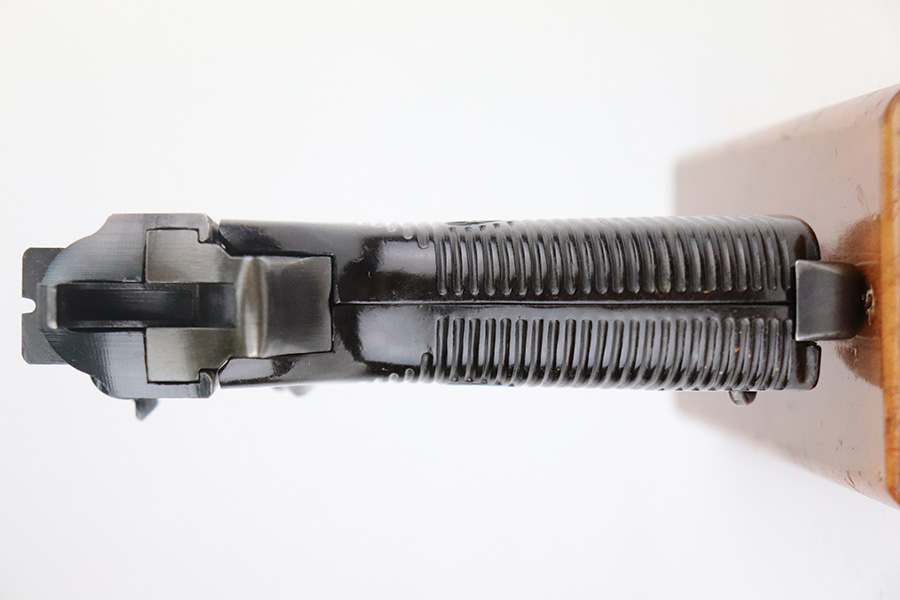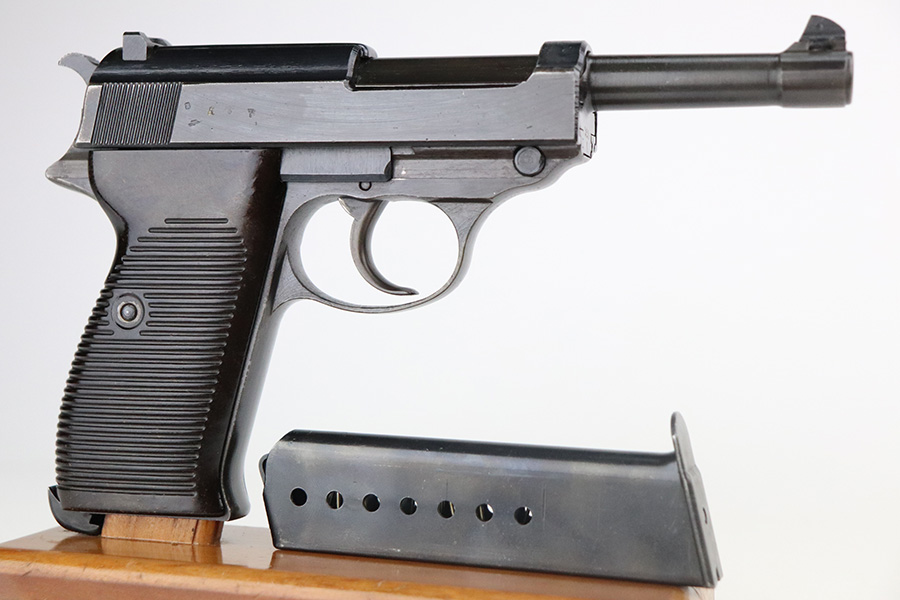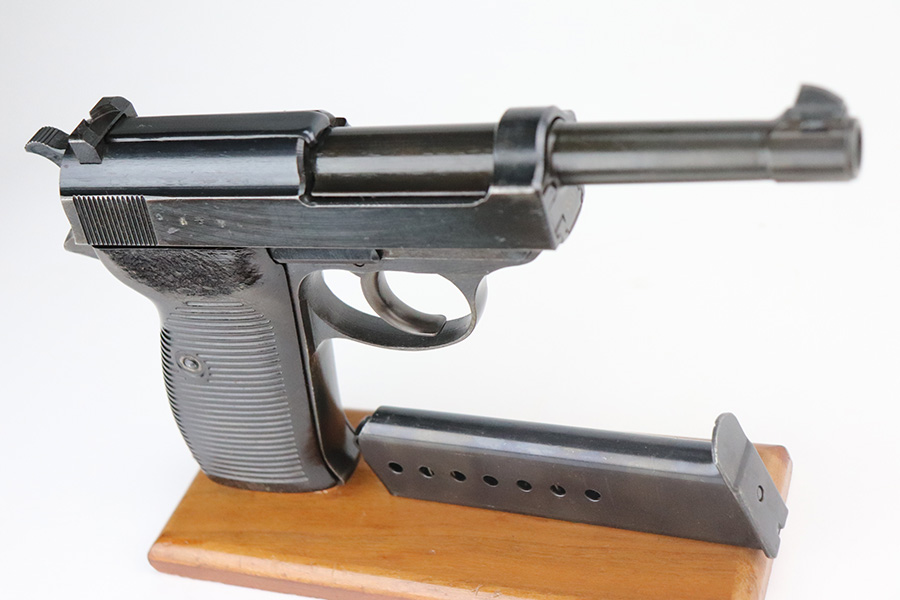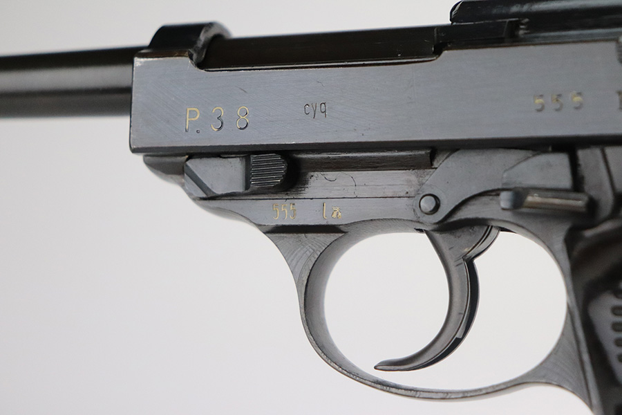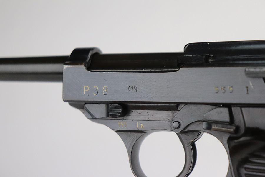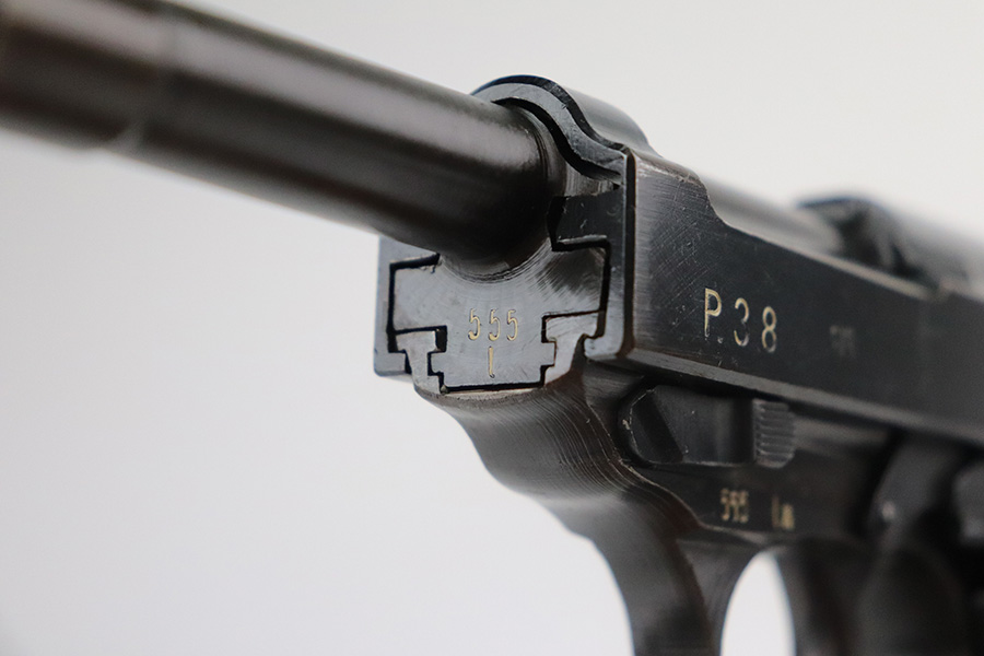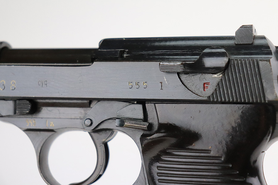 7/7/21 – This is a minty Nazi Spreewerk P.38 from January of 1944. All matching and original with 99% of the blue remaining. A single notable machining line runs through the left side of the slide but the gun is beautiful otherwise. Strong, shiny bore. Good mechanically, including de-cocker. Minty dark brown grips. Proper E/88 magazine.