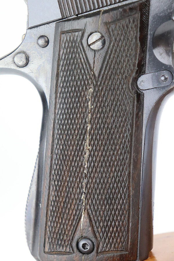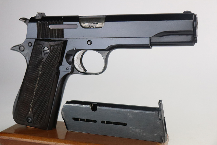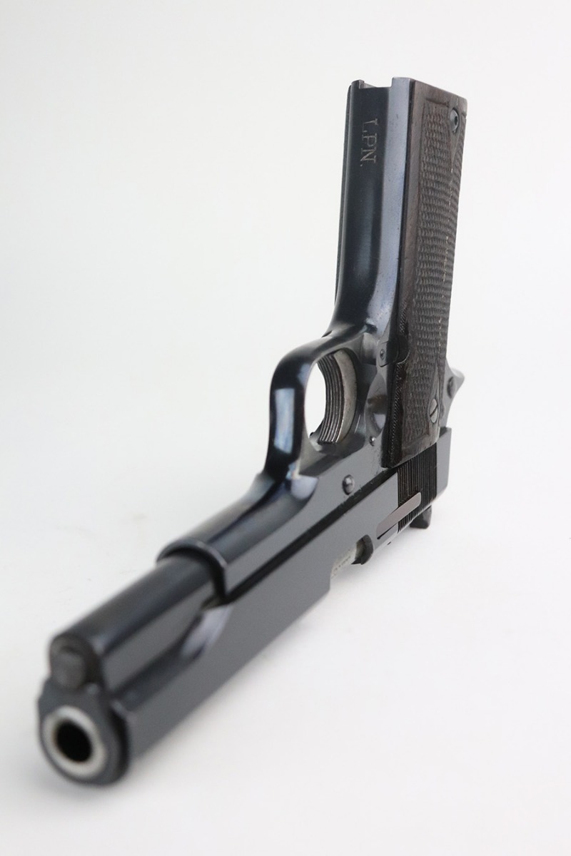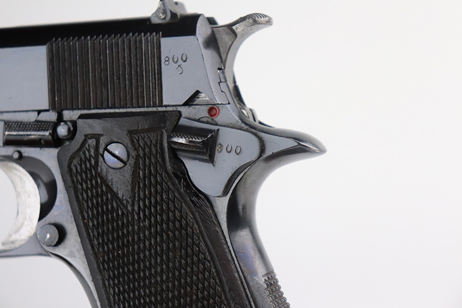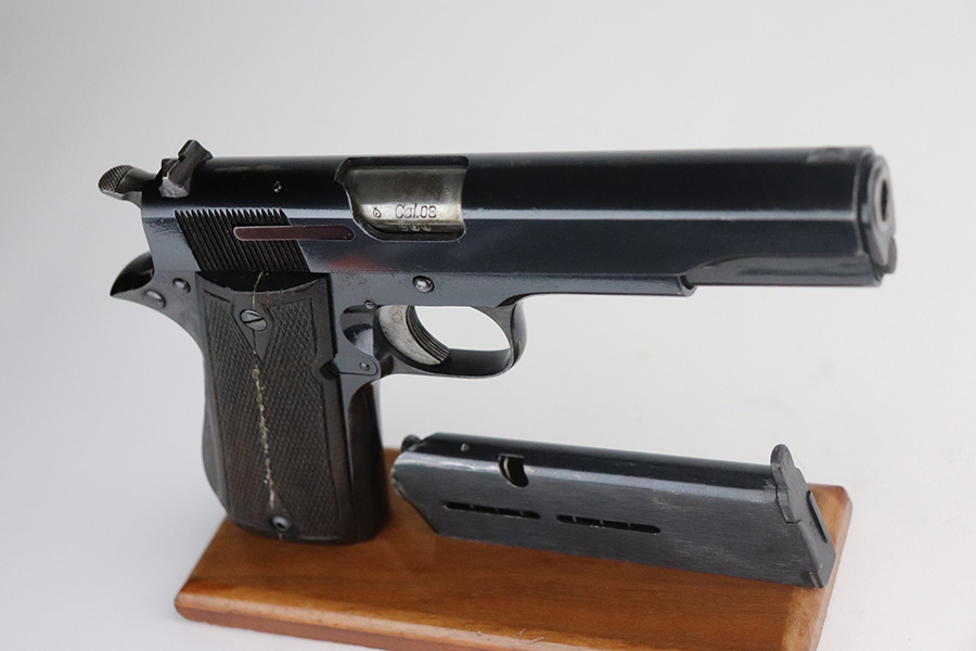 7/12/21 – This is a minty example of a Star Model B manufactured in 1951. It is all matching and has the proper Spanish proofs. It also has an “LPN” marking on the front strap, indicating it was issued to the West German Police force. It has retained about 98% of its finish. There is minor wear and a few dots of discoloration on the top of the slide. Some minor freckling around the muzzle and on the straps. Comes with proper wood grips – there is a repaired crack in the right grip that runs the whole length. Also comes with a proper magazine. The bore is excellent – shiny with strong rifling.