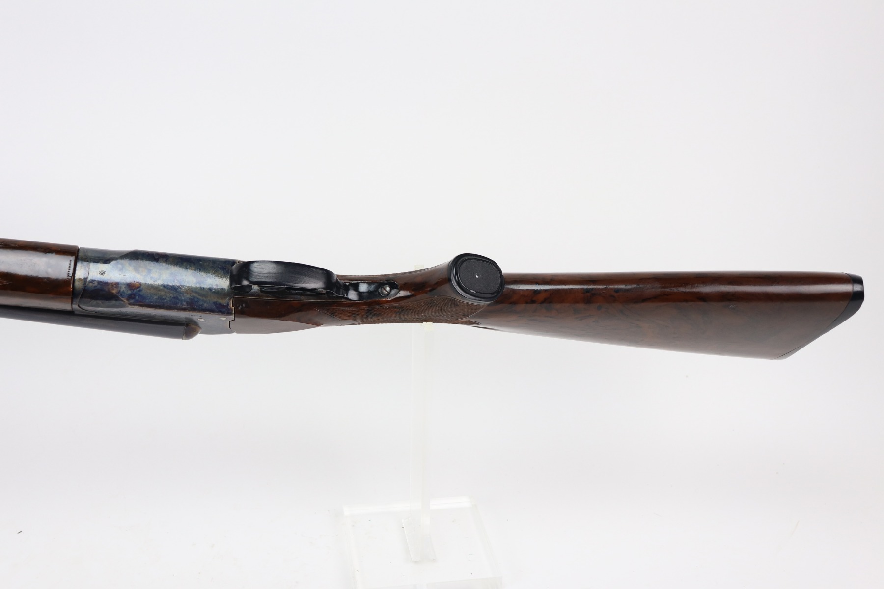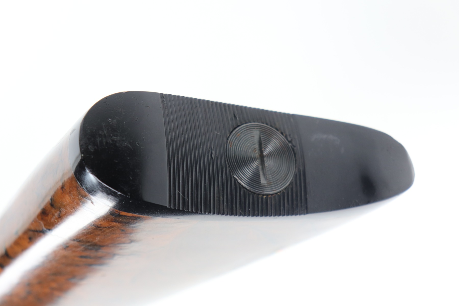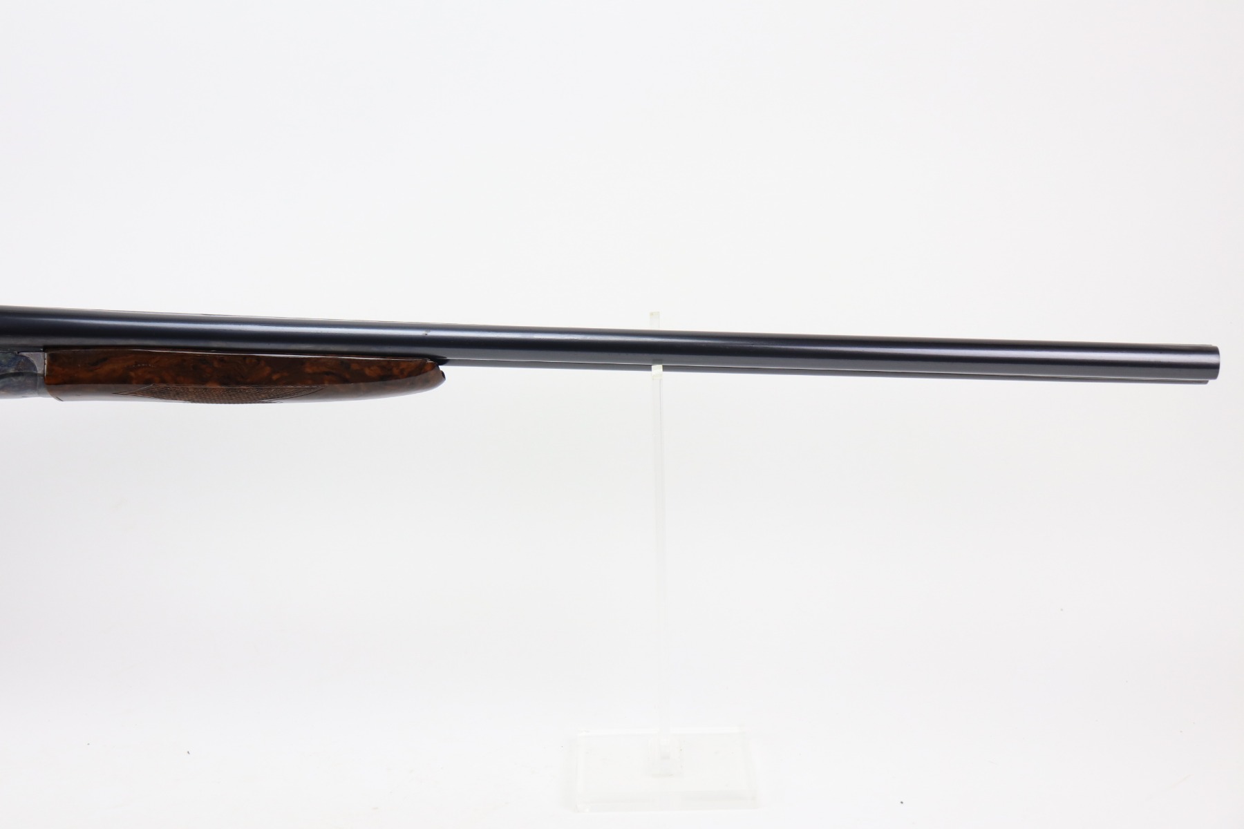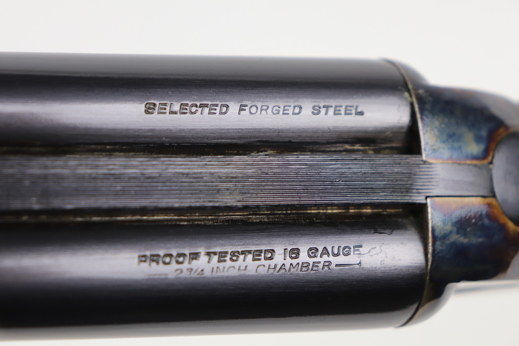 4/27/21 – This is a minty example of a Stevens Model 5100 Side By Side Shotgun, manufactured in the 1940’s. 16 GA, 28″ barrel, 14.25″ LOP. The gun is in minty condition, retaining almost all of its original finish. There are just a few very light handling marks here and there. The beautiful case hardening on the receiver is completely in tact. The marbled brown bakelite stock is in minty condition. The bores are shiny and near-mint.