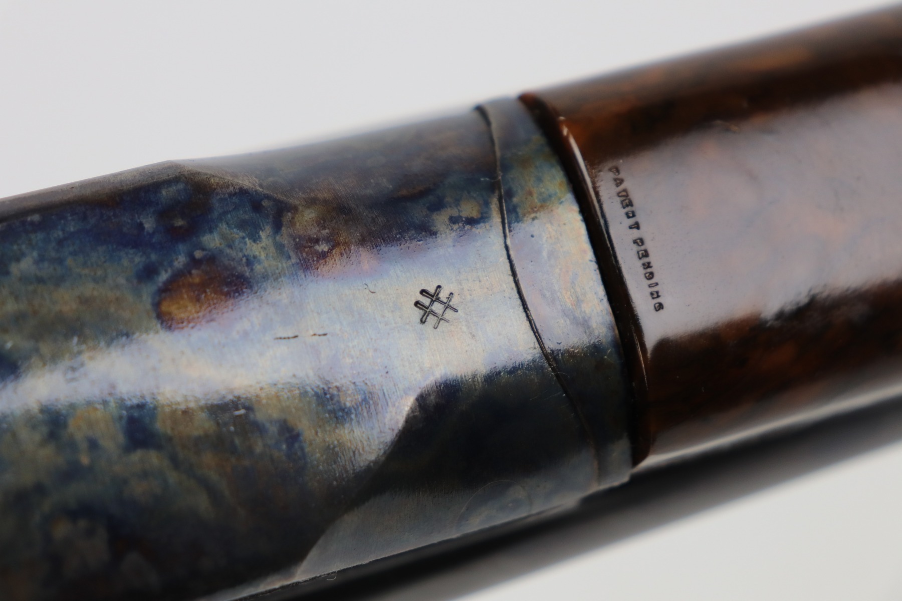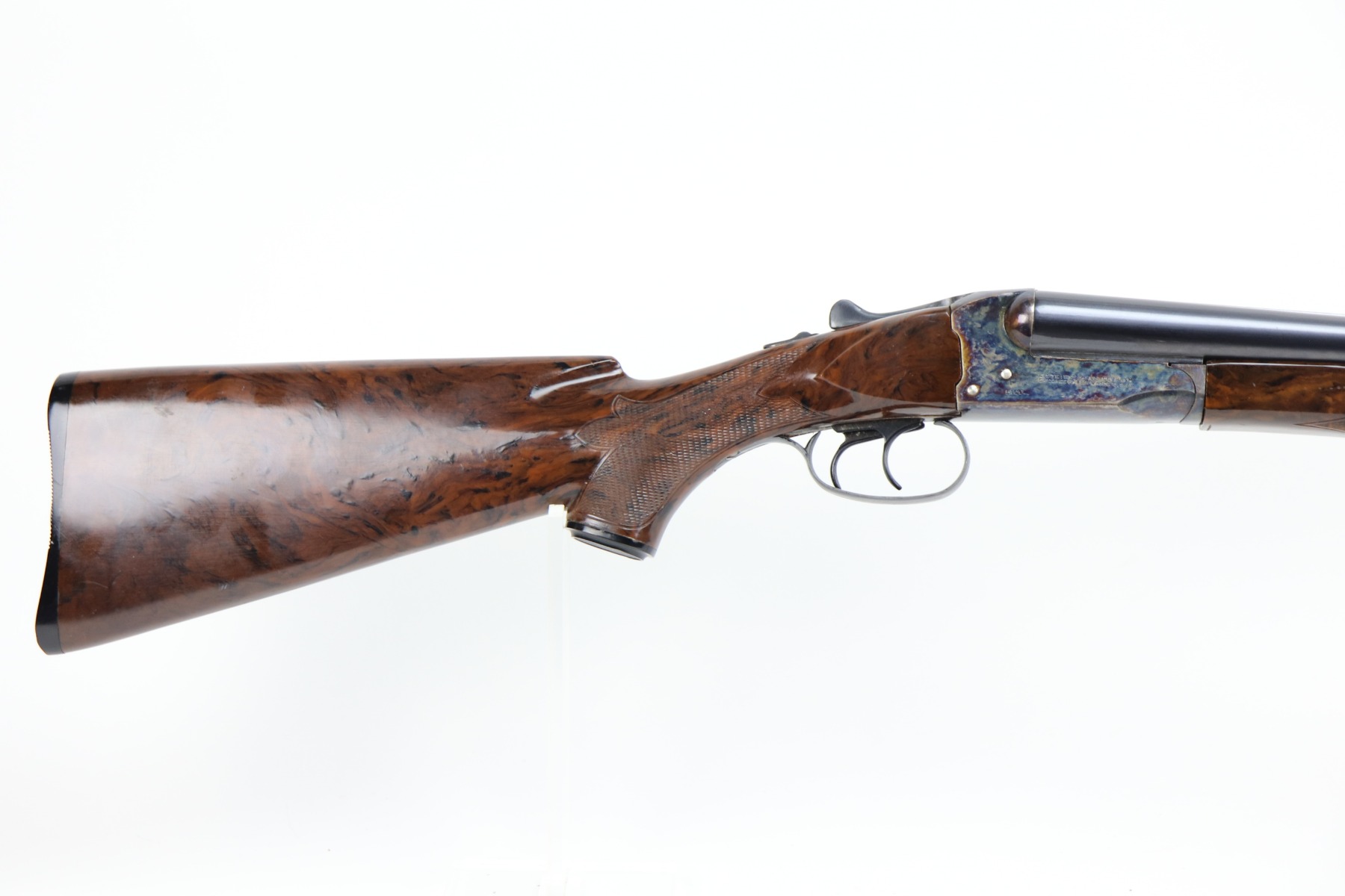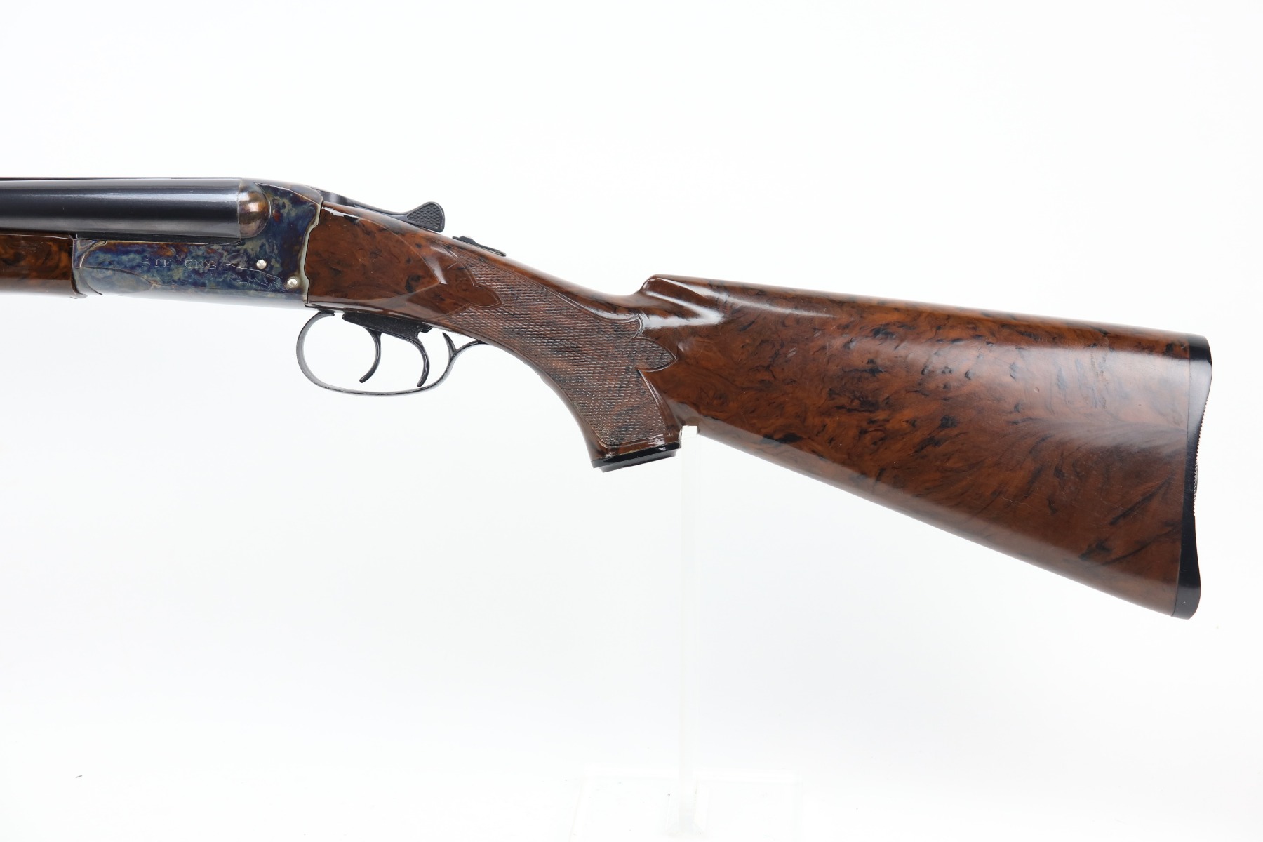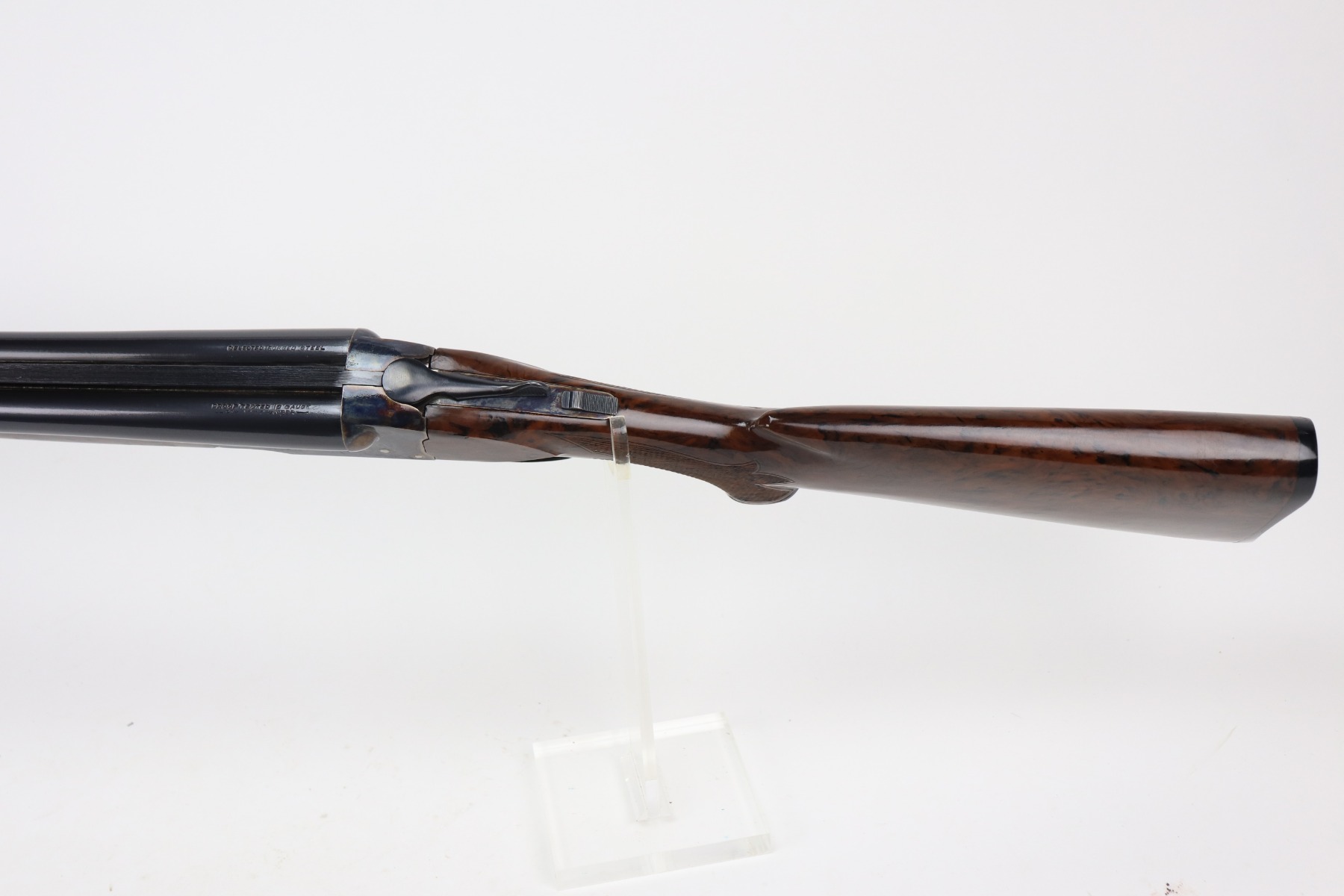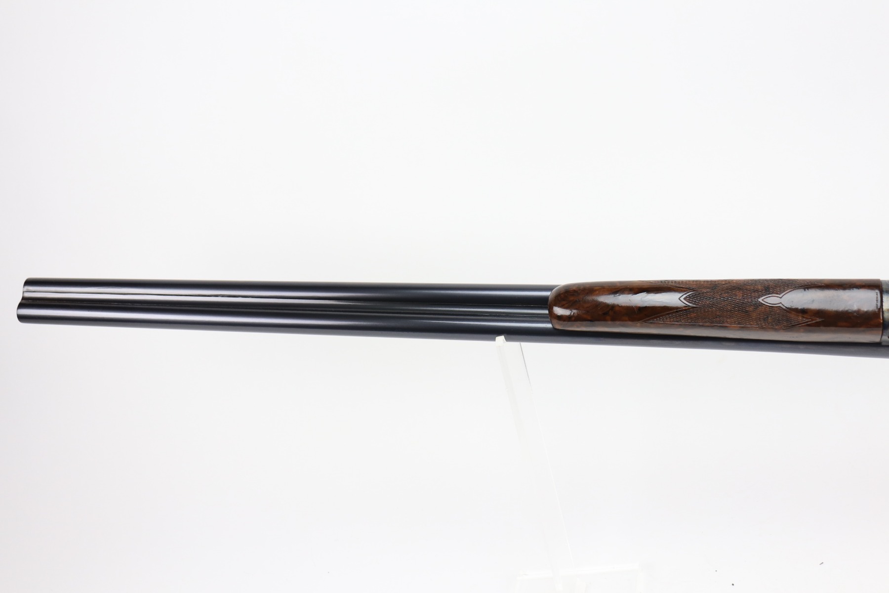 4/27/21 – This is a minty example of a Stevens Model 5100 Side By Side Shotgun, manufactured in the 1940’s. 16 GA, 28″ barrel, 14.25″ LOP. The gun is in minty condition, retaining almost all of its original finish. There are just a few very light handling marks here and there. The beautiful case hardening on the receiver is completely in tact. The marbled brown bakelite stock is in minty condition. The bores are shiny and near-mint.