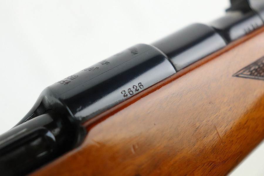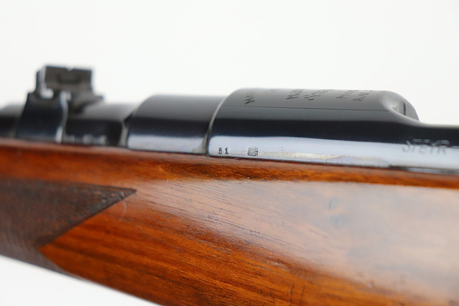 7/9/21 – This is a minty example of a Steyr Mannlicher Model 1950 Bolt Action Rifle chambered in 6.5x54mm. It is in gorgeous condition, retaining virtually all of its finish. While there is very little actual finish loss, there are areas of plumb-colored discoloration on the trigger group. The stock is excellent with just a few dings here and there. Mint bore.