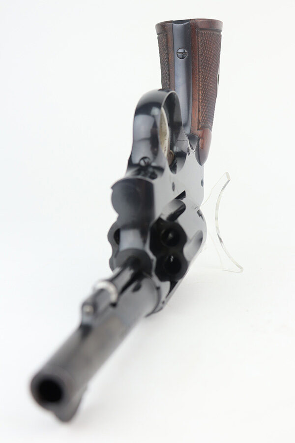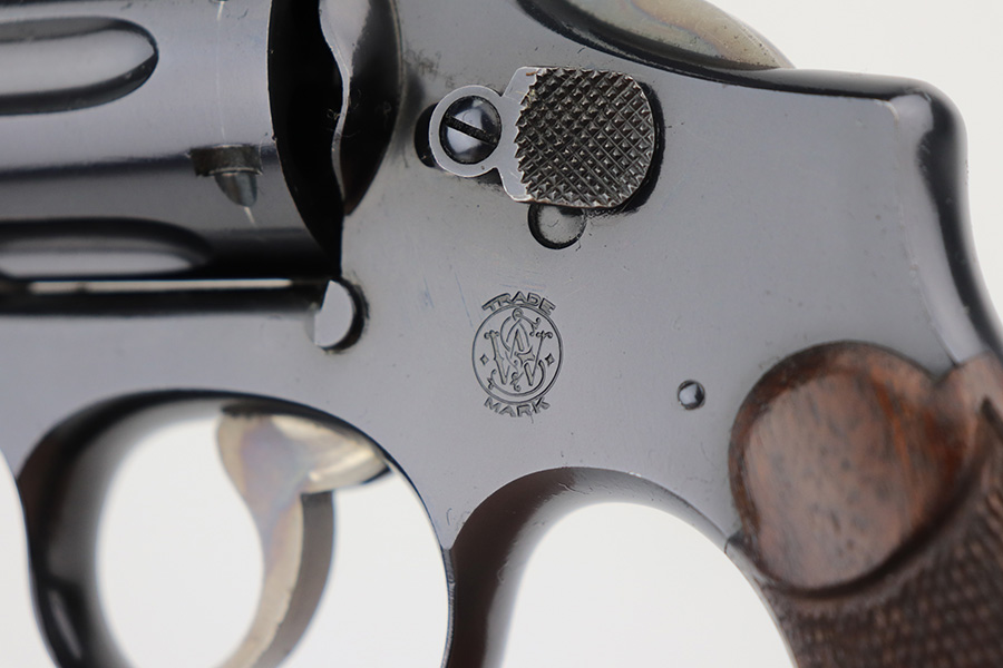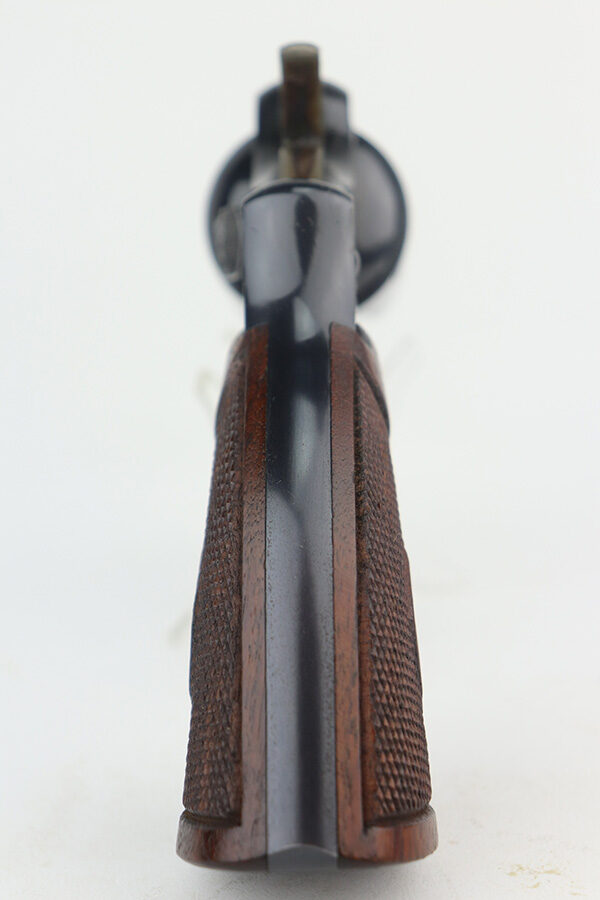 6/3/21 – This is a near-mint example of a Smith & Wesson Model 1905 Hand Ejector (4th Change) Revolver, manufactured between 1915-40. It is all correct and has retained more than 98% of its original finish. The case hardening on the small parts is completely intact. There is just a hint of wear and tiny dots of oxidation around the muzzle. Very faint roll mark on the cylinder. The cylinder is tight and the action is smooth. Mint wood grips. Mint bore. A stunning example.