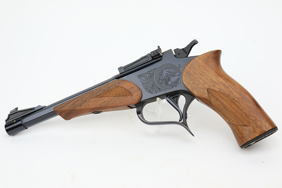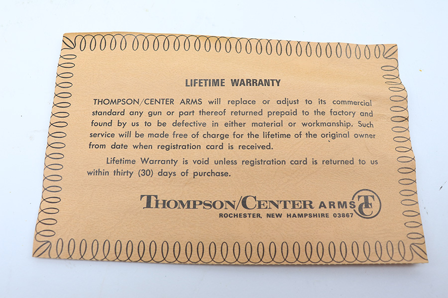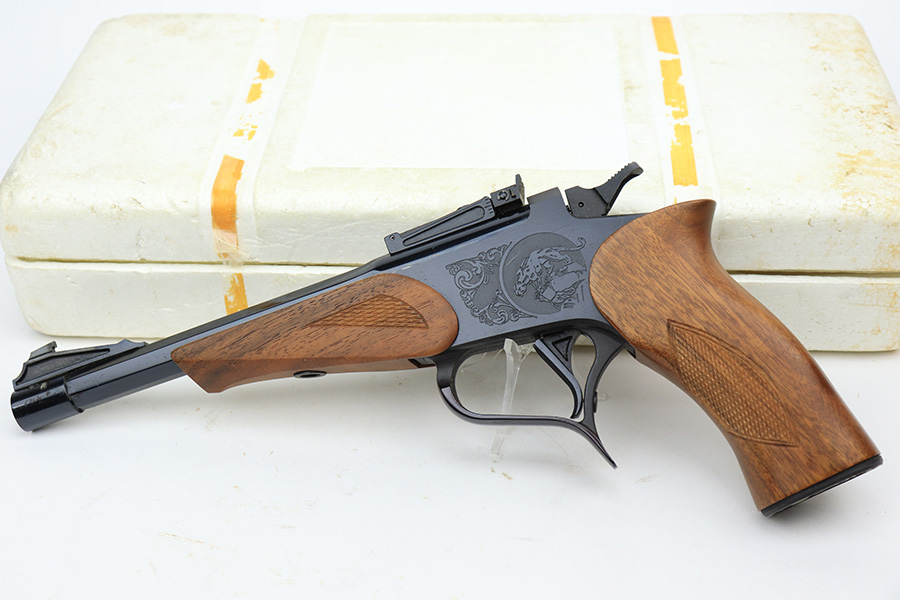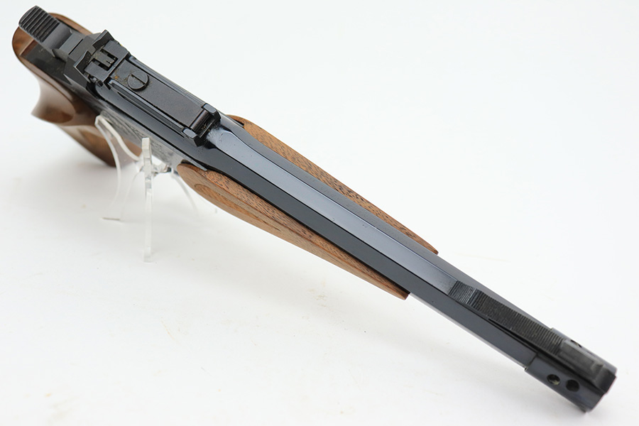5/8/23 – This is a near-mint example of a Thompson Center Contender, chambered in .357 Magnum. 8.5″ barrel. It comes with its original matching-numbered foam insert (no box) and its original warranty card. The gun has retained essentially all of its original finish and would be in like-new condition except for one small spot of light oxidation around the muzzle. Mint wood furniture. Bore is like-new.