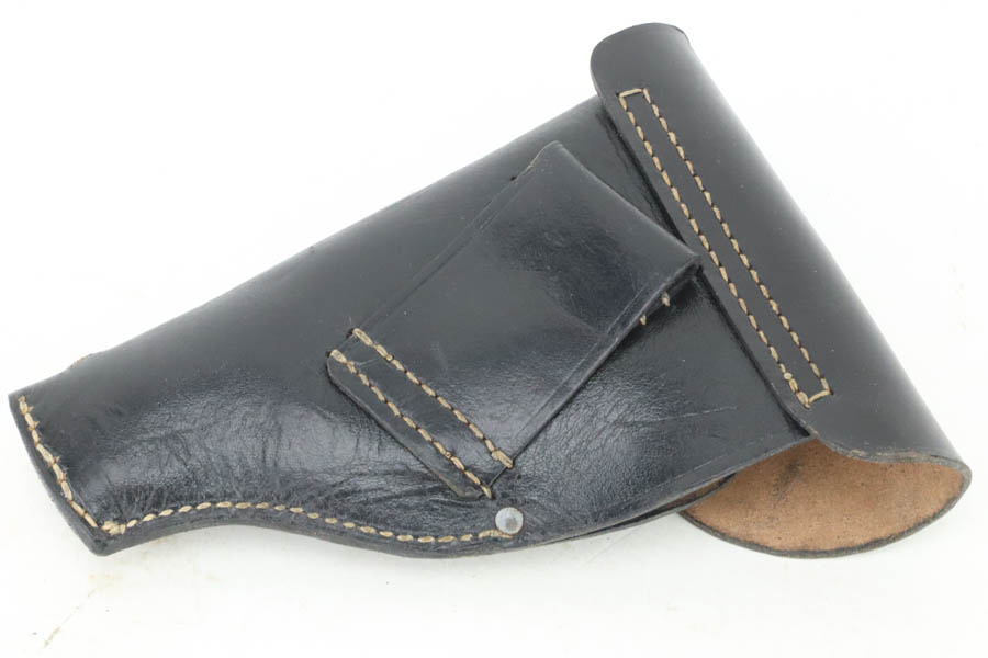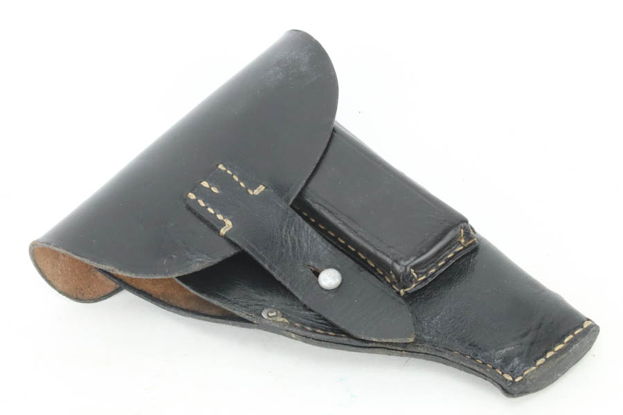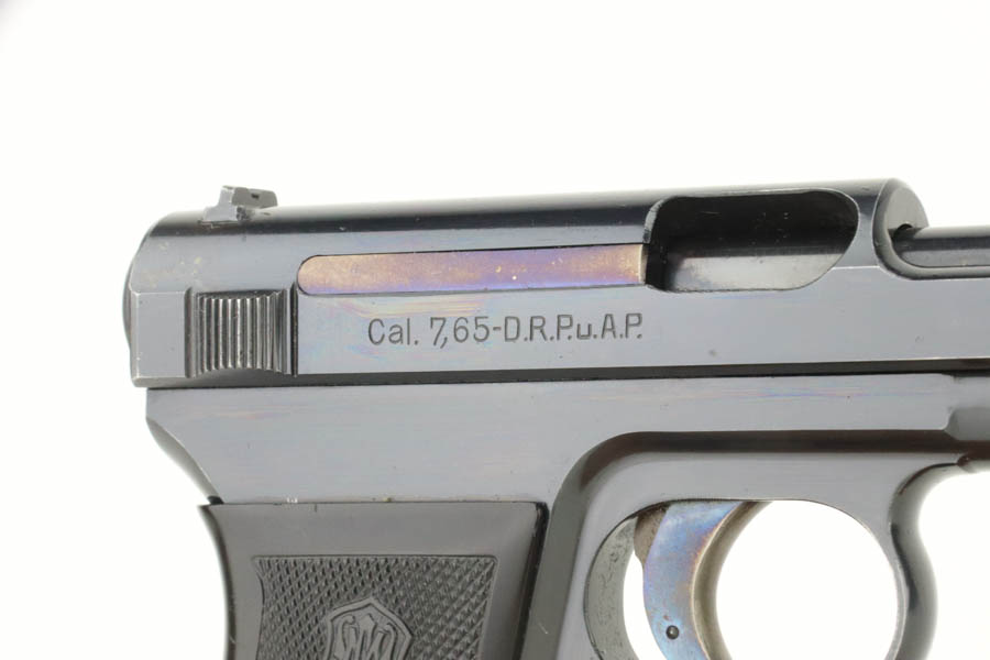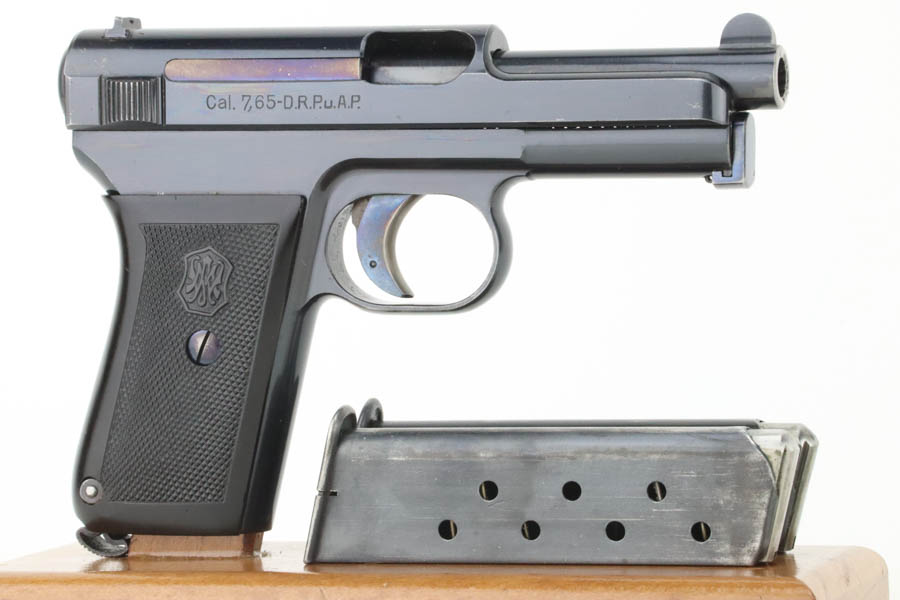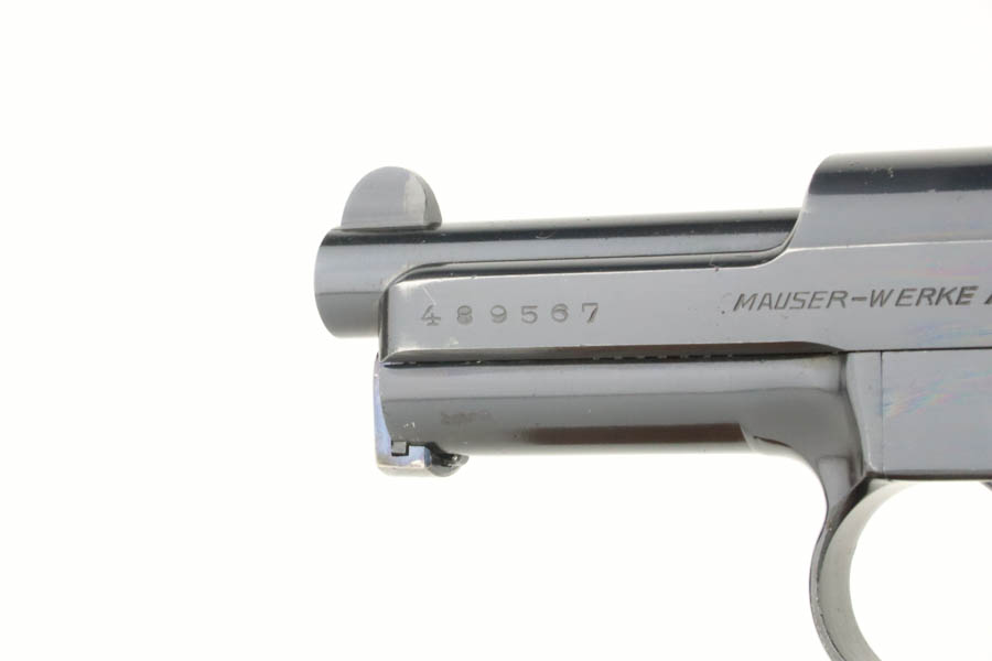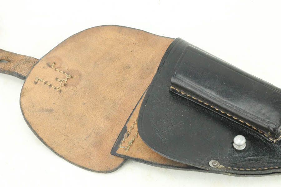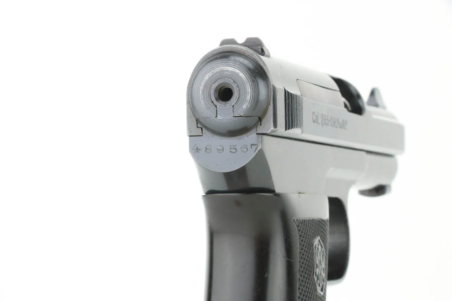 9/18/24 – This is a near-mint example of a transitional Mauser Model 1914/34 sold in the commercial market in 1928-33. It is all matching and has the proper “Crown U” commercial proofs. It comes as a rig with two proper Mauser-marked magazines and a mint 1940-dated Nazi police-marked black leather holster. The gun itself has retained nearly all of its original high polish finish with just a hint of muzzle wear and a few tiny dots of discoloration. Fitted with a nice blackish-brown bakelite grip. Mint bore.