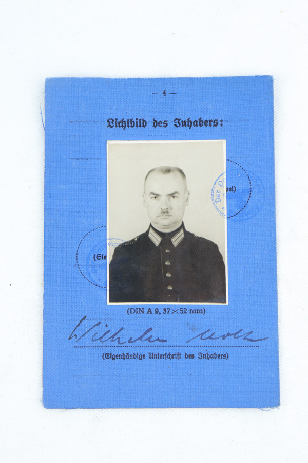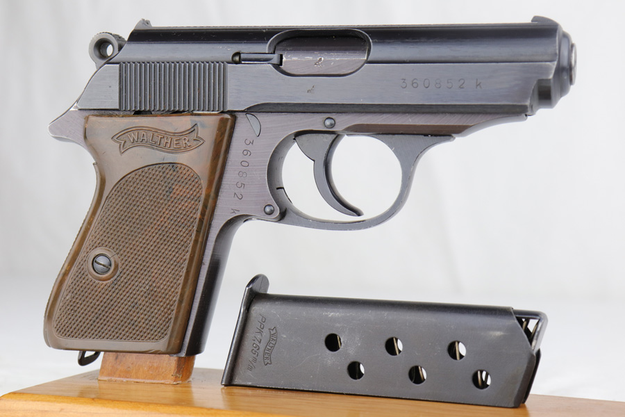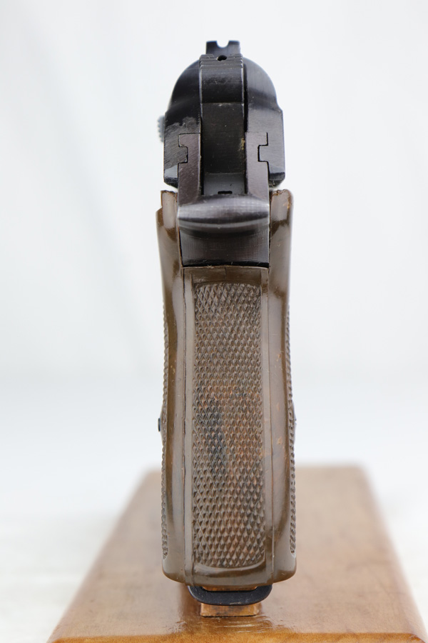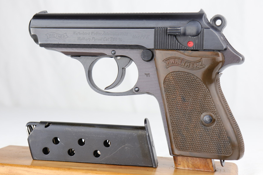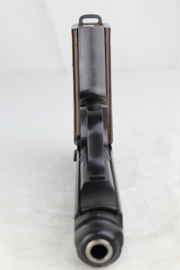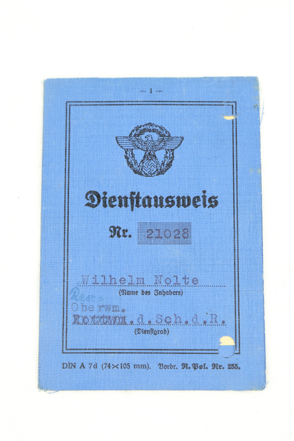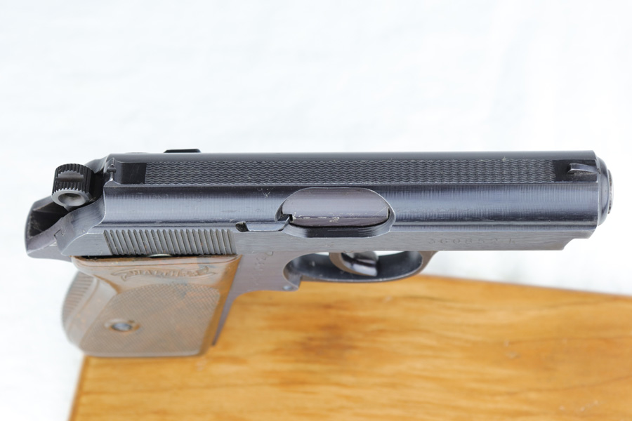 1/10/19 – This is a minty Police Walther PPK with transitional finish and grip. The bluing is not quite high-polish but still better than later military blue. Slight plum color to the frame. Only very minor muzzle wear with a mint bore. Chocolate brown grip. Correct wartime magazine. It came with a Police identity document from 1942 – we don’t have any way of proving the gun belongs to this Major but as it came with the gun, we are including it.