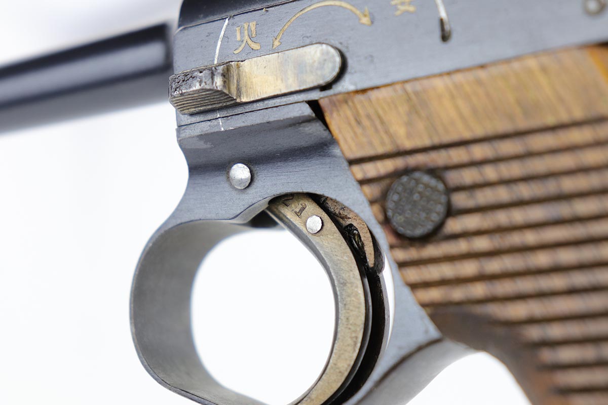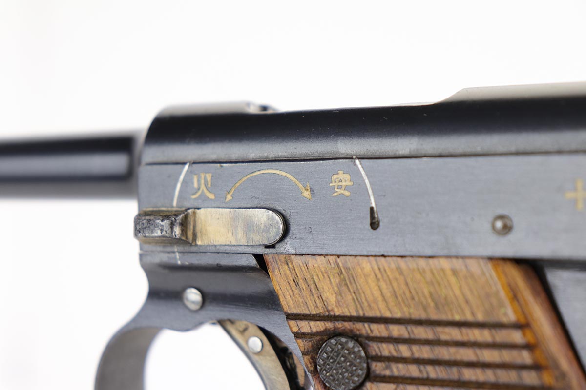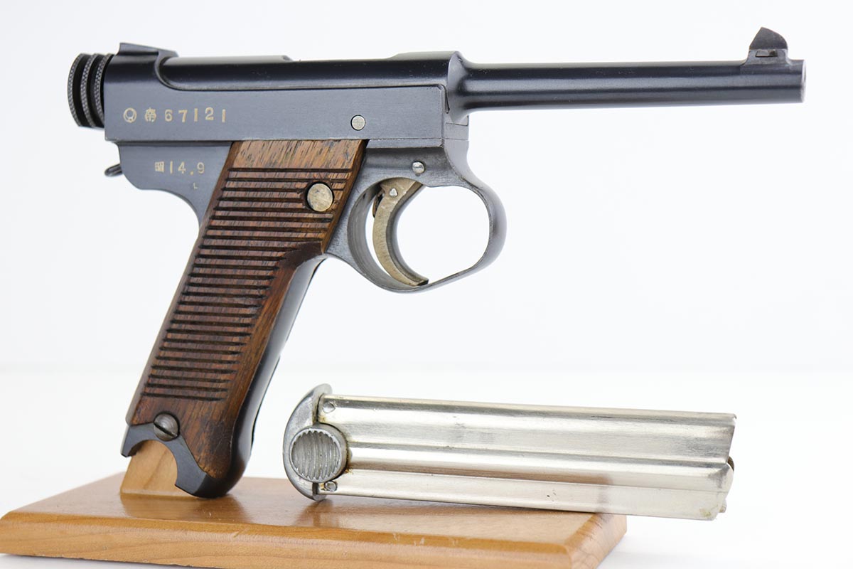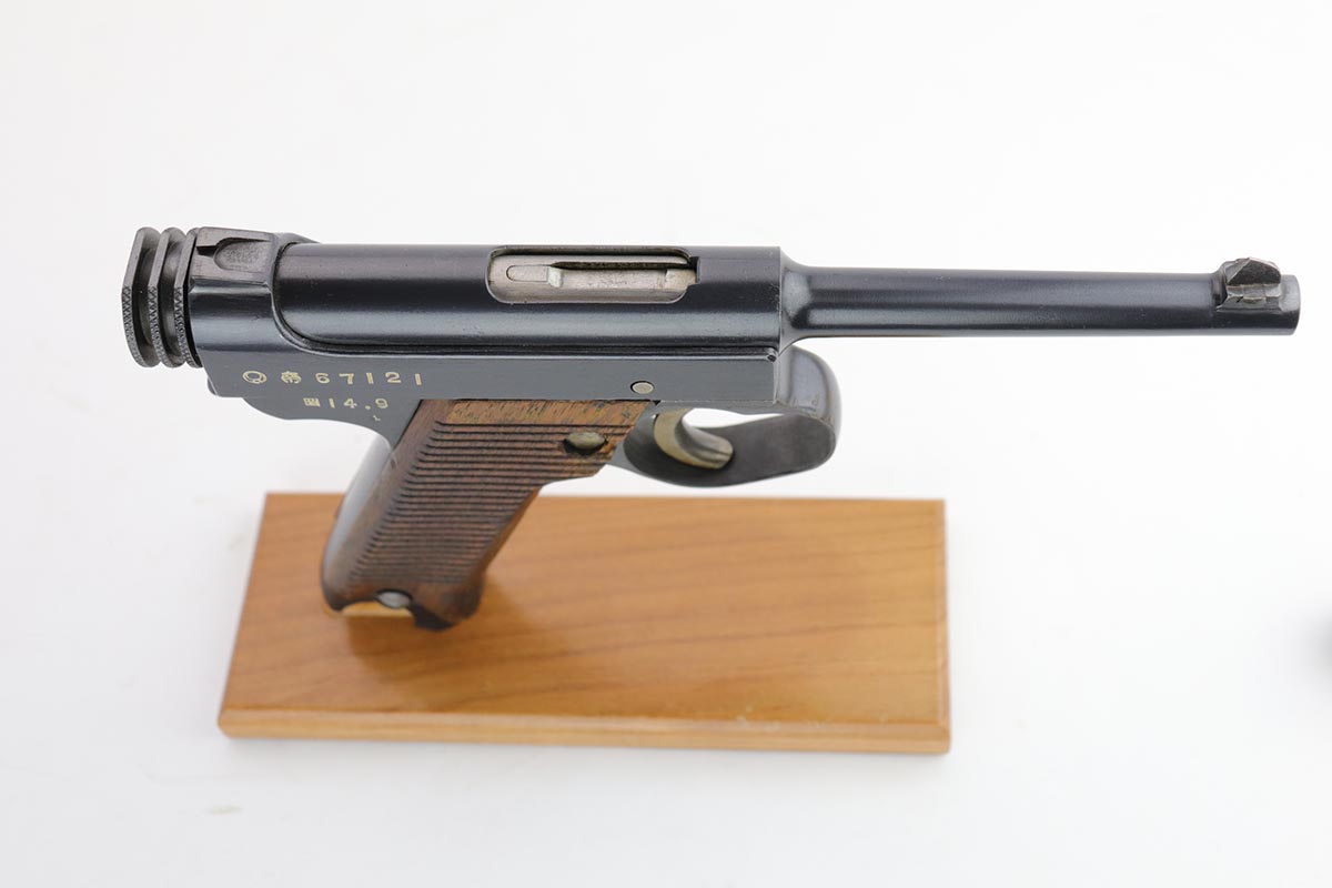 2/14/20 – This is a near-mint Type 14 Nambu that was made in September of 1939 at Kokubunji under Nagoya supervision. The pistol has 99% blue, with a hint of muzzle wear and a couple dings along the top of the trigger guard. All matching numbers, including the grips which are hand numbered. Magazine is period original but mismatched. Mint bore.