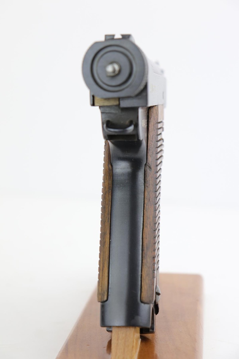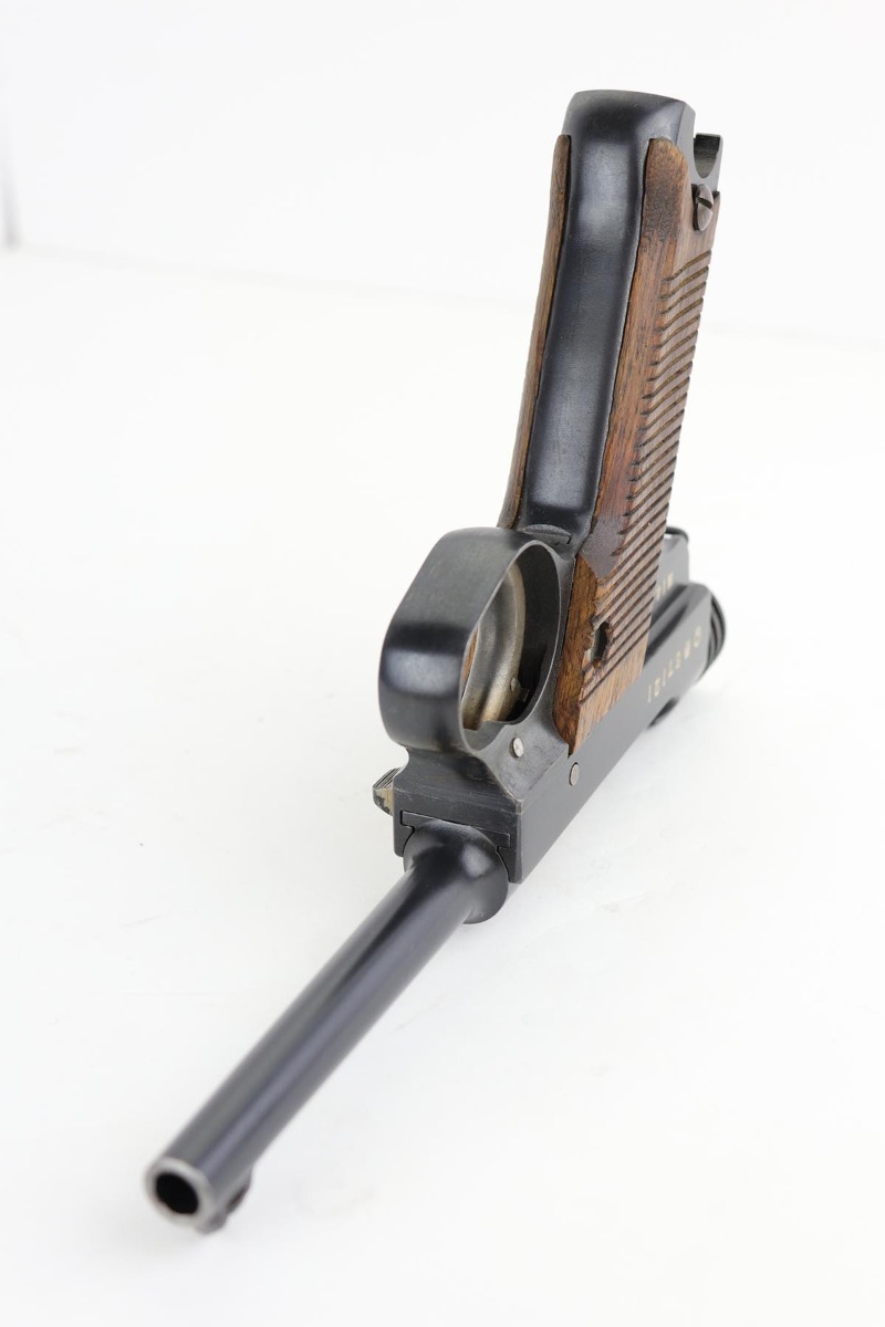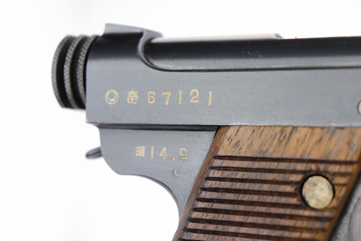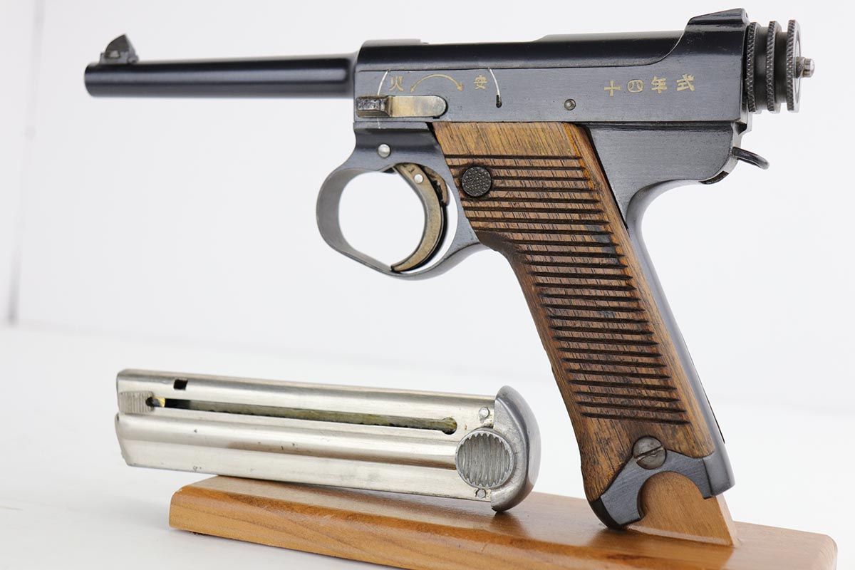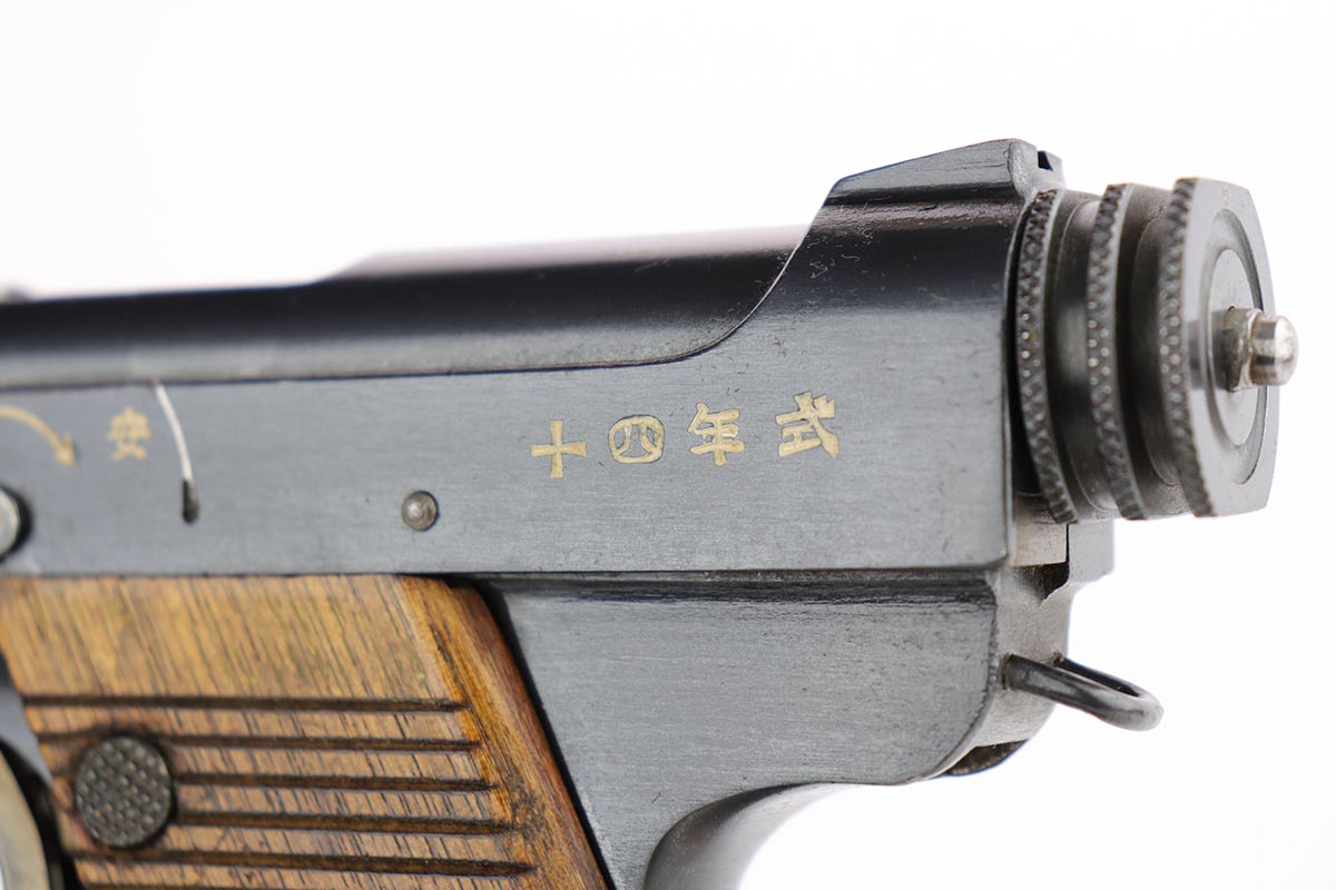 2/14/20 – This is a near-mint Type 14 Nambu that was made in September of 1939 at Kokubunji under Nagoya supervision. The pistol has 99% blue, with a hint of muzzle wear and a couple dings along the top of the trigger guard. All matching numbers, including the grips which are hand numbered. Magazine is period original but mismatched. Mint bore.