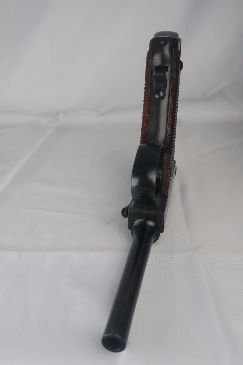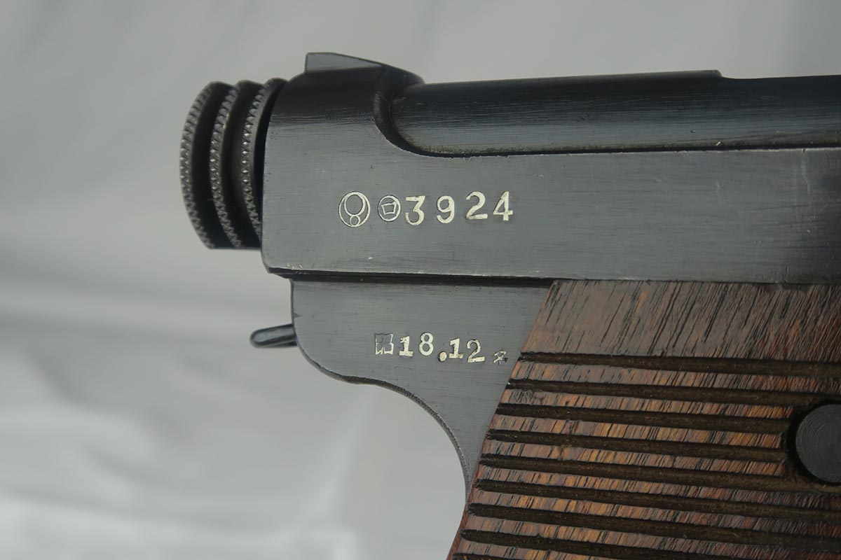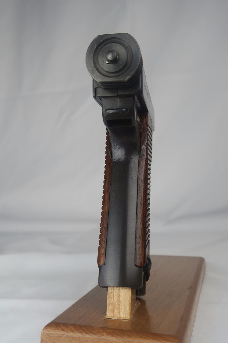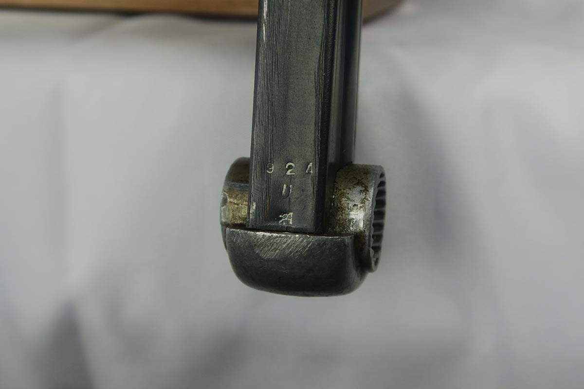 8/21/17 – This is a minty Type 14 Nambu with the original matching magazine and grips.  It is dated to December of 1943, with 99% original bluing remaining.  The original grips and magazine are in very good to excellent condition.  The pistol is all matching and correct.  Mint bore.