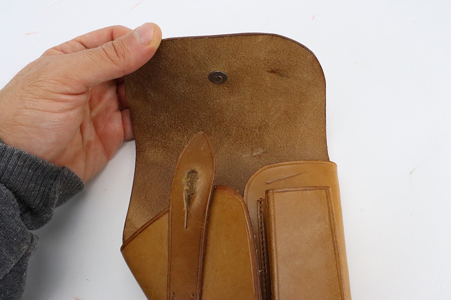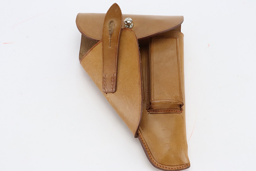 5/2/24 – This is a minty WW2 production 7.65mm commercial holster for a Walther PP or similar sized Axis pistol. No markings or stamps. The leather is soft and pliable with no major issues. Great overall condition with excellent original stitching throughout.