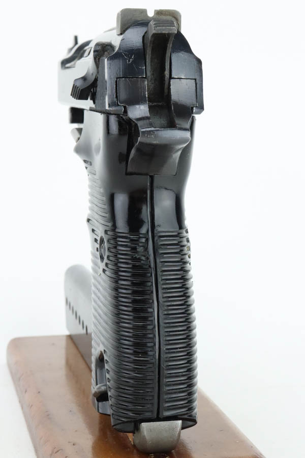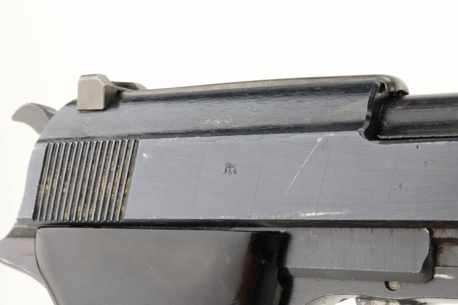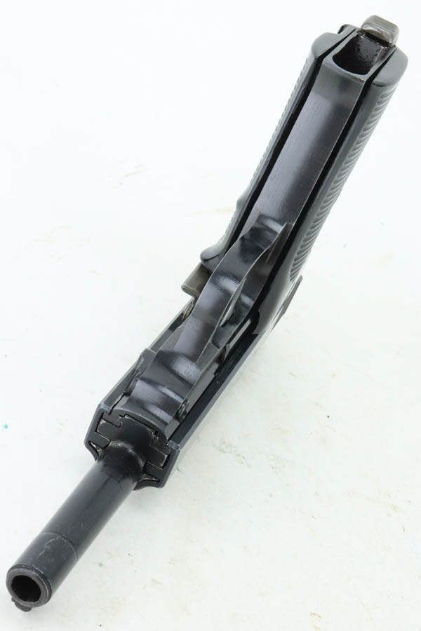 5/31/24 – This is an excellent example of a very late, end-of-war AC 45 Walther P.38 from 1945. It has only one “Eagle 359” military acceptance proof on the slide, indicating it never made it out of the factory before the end of the war. This one has a rare “Waffen 76” marked barrel, indicating it was made at the Czech FNH factory. It is a GI mismatch. It has proper late-war features, such as rough machining and phosphate small parts. It has retained virtually all of its finish with just a few very light scratches on the slide. Fitted with black plastic grips. Minty bore. De-cocker is functional. Comes with an un-proofed magazine.
