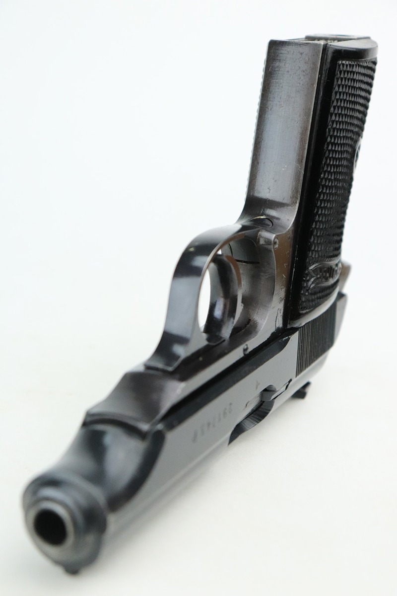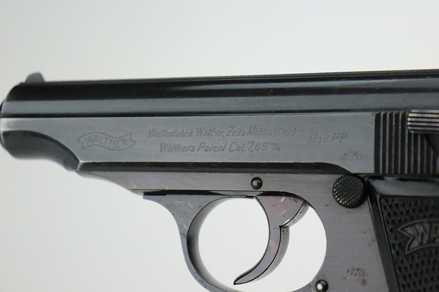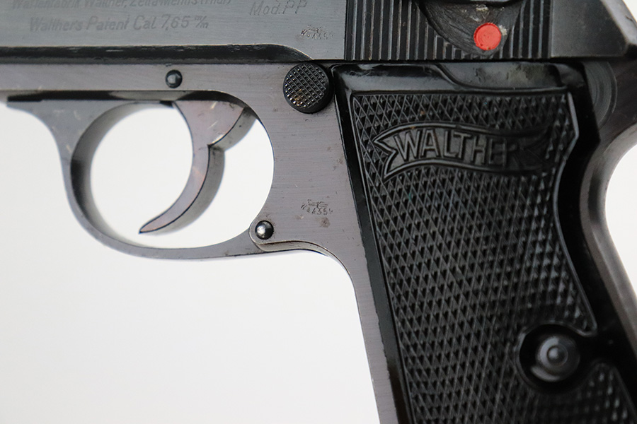 7/19/22 – This is a minty example of a Walther PP issued to the Nazi military in 1943. It is all matching and has the proper “Waffen 359” military acceptance proofs on the slide and frame. It has retained more than 98% of its original wartime finish. There is very minor wear around the muzzle and a few tiny scratches/handling marks here and there along the slide. Very light brown patina and freckling on the grip straps. Comes with excellent period-correct black bakelite grips and a proper wartime magazine. Mint bore.