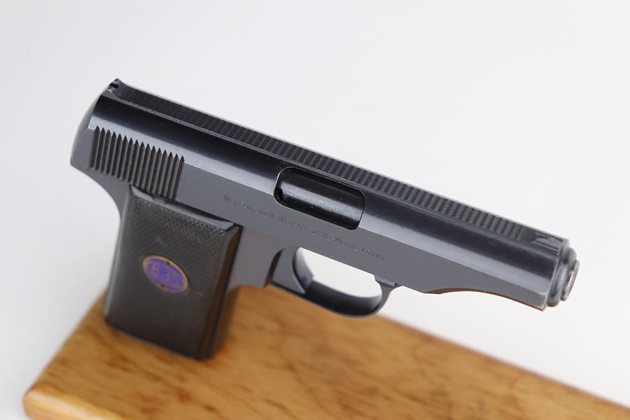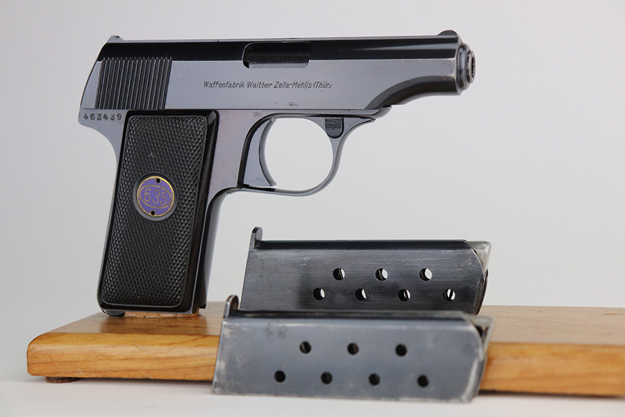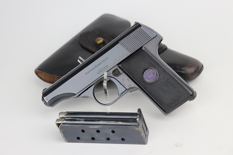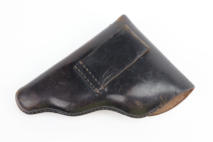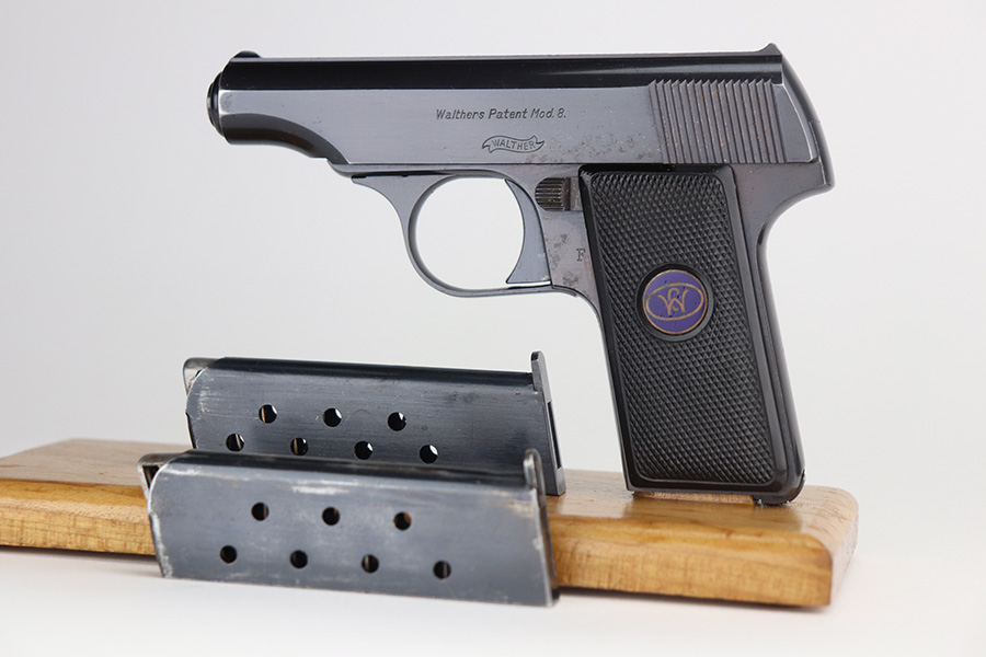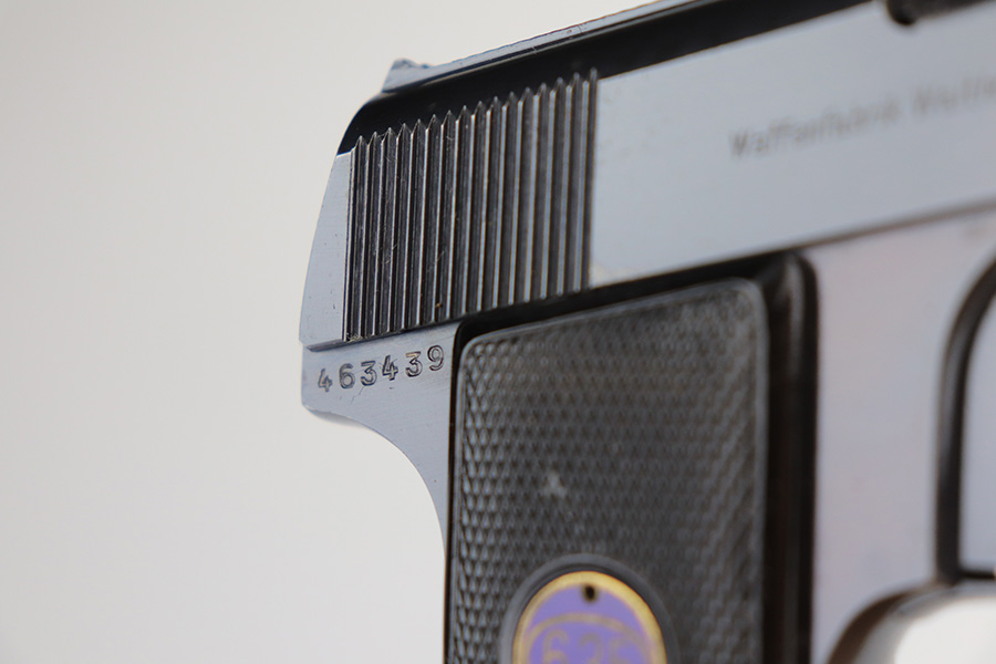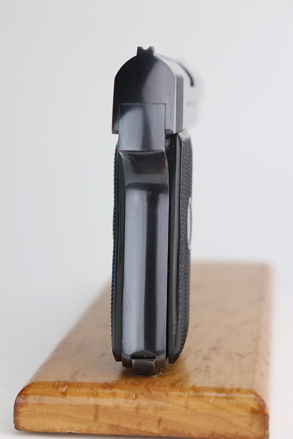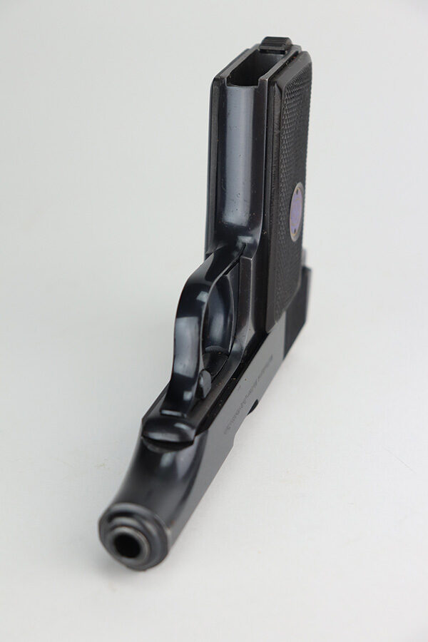 8/4/21 – This is a minty example of a Walther Model 8 Rig. The gun is all matching and has the proper “Crown N” proofs. The rig comes with an excellent period-correct holster and two proper magazines. The gun has retained about 98% of its bluing. There is just very minor wear around the muzzle. While there is very little actual finish loss, there is an area of noticeable freckling on the left side of the slide. Comes with excellent period-correct grips. Minty bore.