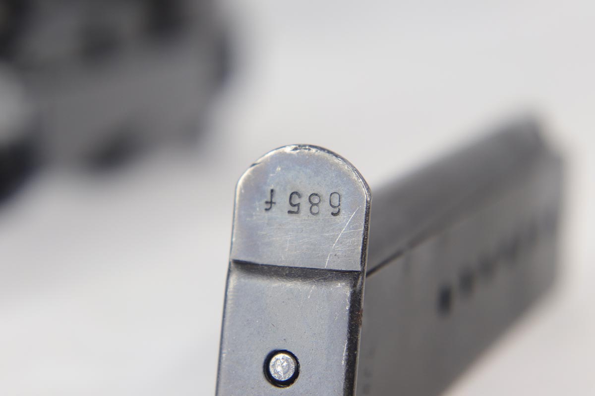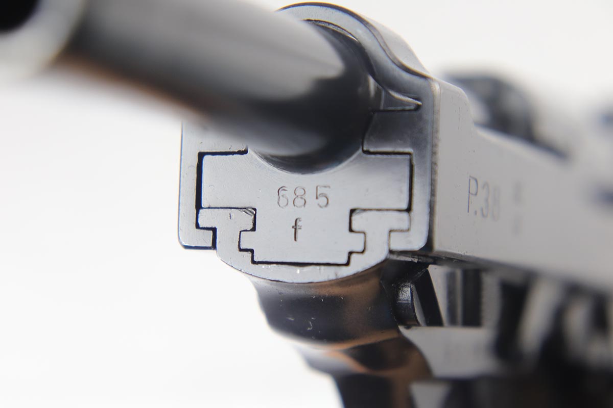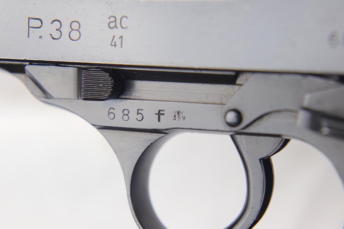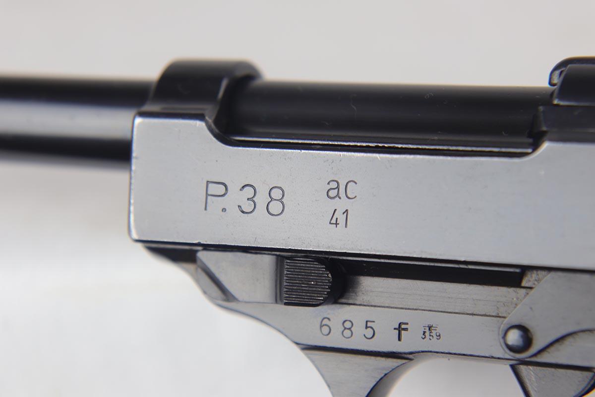 8/31/18 – This is a near-mint Walther P.38 from August of 1941. It is an all matching and original second variation ac 41, with high-polish finish but no ‘ac’ proof on frame. There is only minor hints of edge wear, around with some minor slide freckling and some patina on the front strap. The magazine is numbered to the gun and while it appears correct at first glance, we do not believe the numbering is factory original. It is an early mag with two Walther proofs. Grips are waffen marked but not numbered. Bore is shiny with strong rifling, showing only minor use.