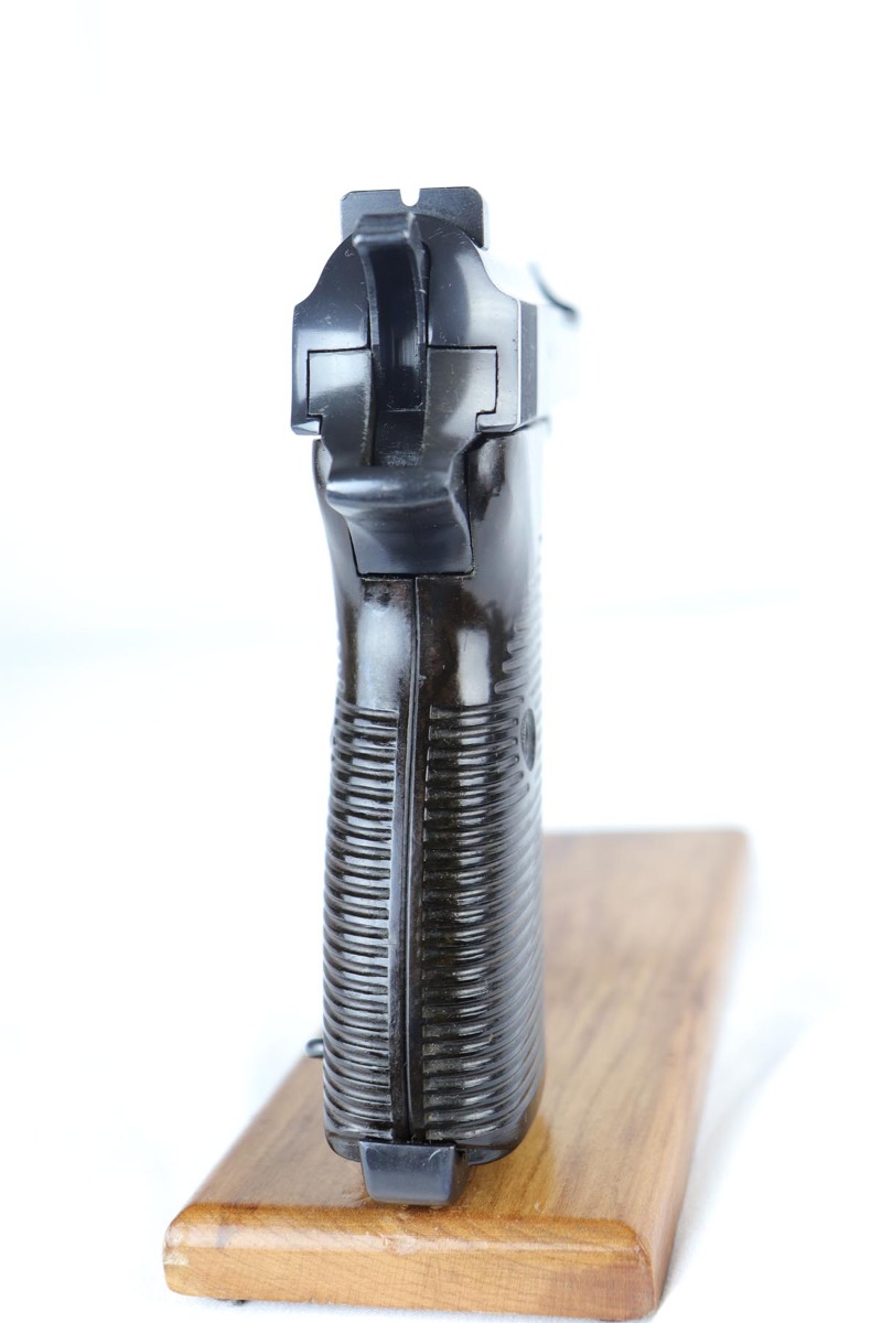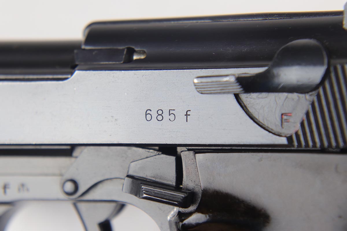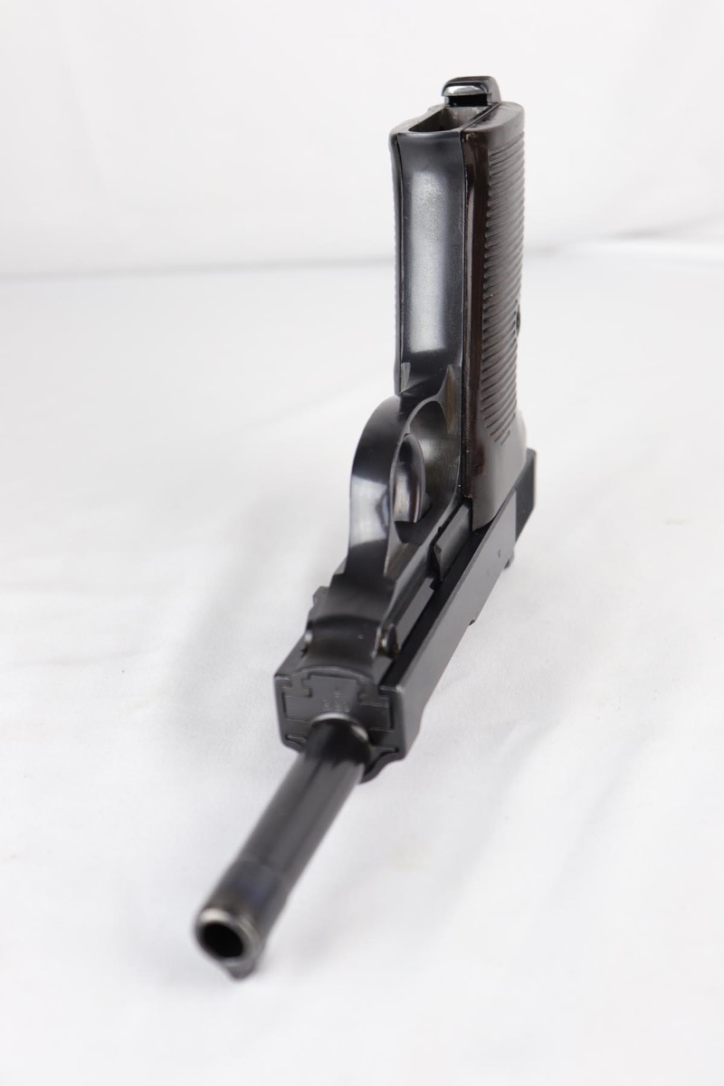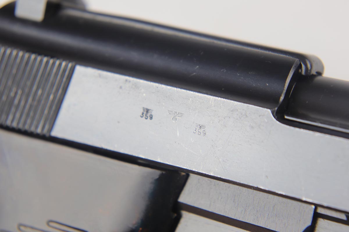 8/31/18 – This is a near-mint Walther P.38 from August of 1941. It is an all matching and original second variation ac 41, with high-polish finish but no ‘ac’ proof on frame. There is only minor hints of edge wear, around with some minor slide freckling and some patina on the front strap. The magazine is numbered to the gun and while it appears correct at first glance, we do not believe the numbering is factory original. It is an early mag with two Walther proofs. Grips are waffen marked but not numbered. Bore is shiny with strong rifling, showing only minor use.