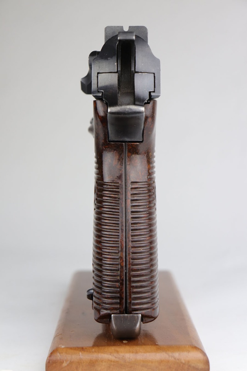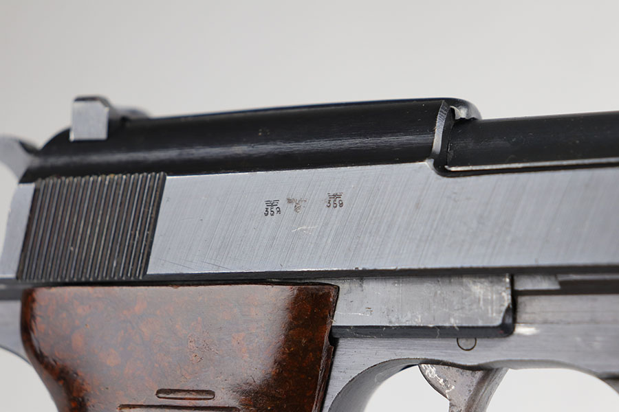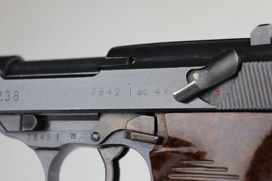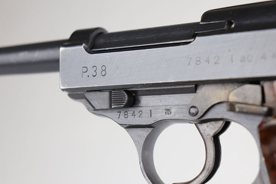 5/20/20 – This is a matching and original Walther P.38 from December of 1944 in near-mint condition. It has 99% of the original blue, with just a bit of high point thinning, and the common casting flaw on the bottom of the front strap. Mint bore and grips. Proper mechanics, including de-cocker. Mauser magazine.