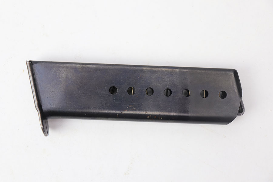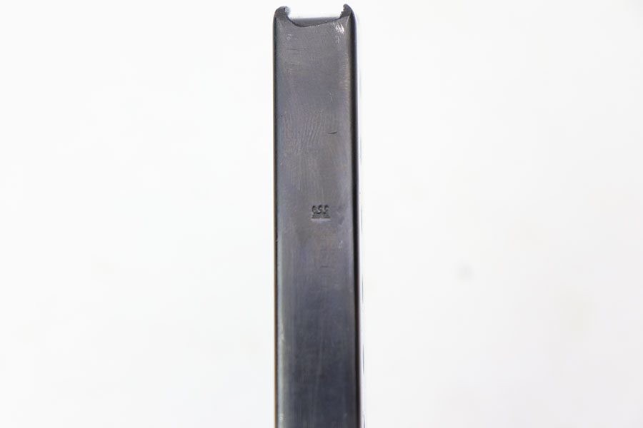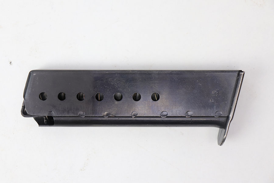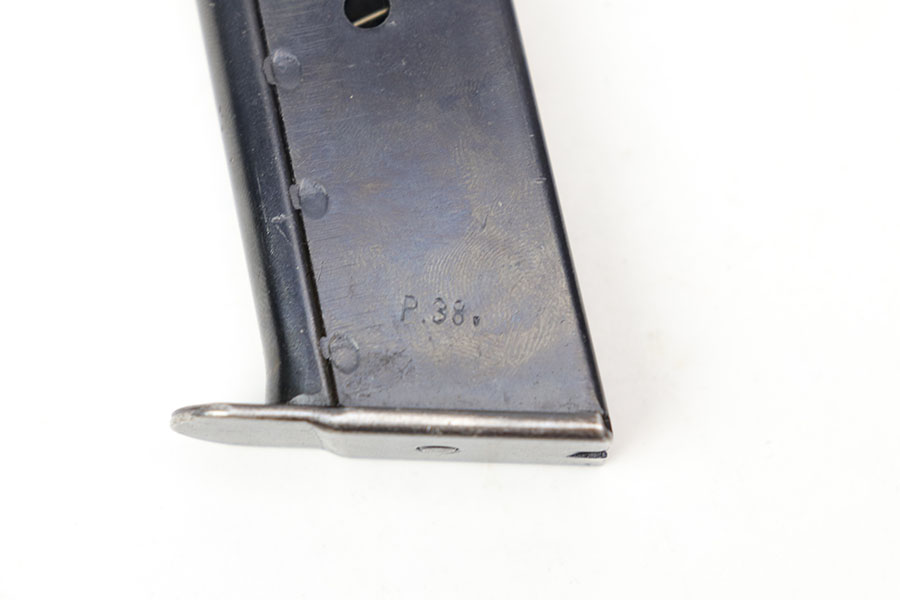 8/17/20 – This is a minty condition P.38 magazine from WW2. The spine is stamped with a Walther eagle/359 acceptance proof. The frame is P.38v stamped. Excellent bluing and a strong spring.
