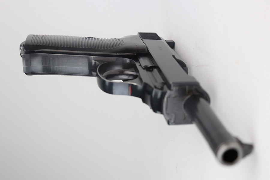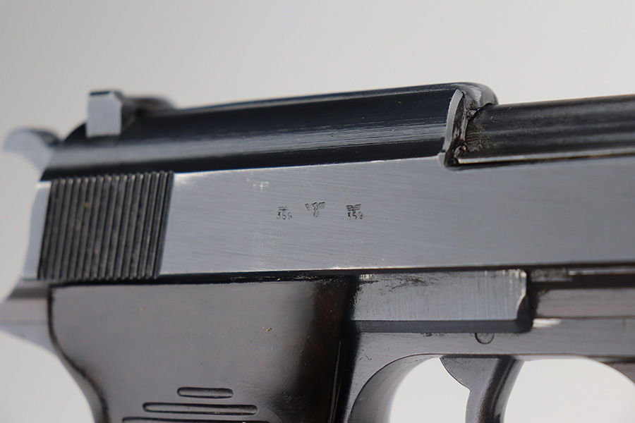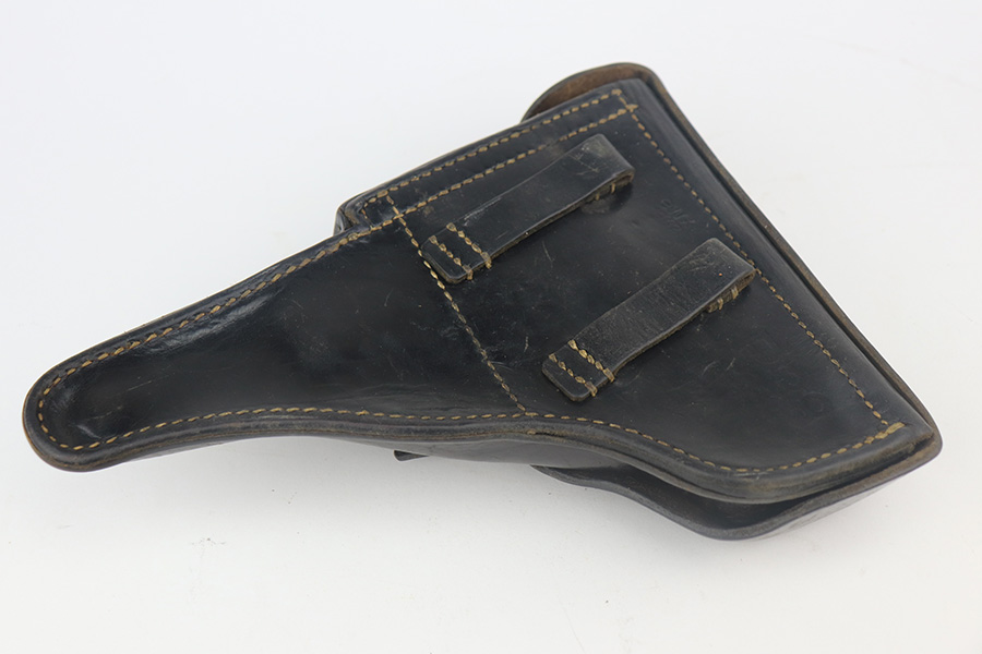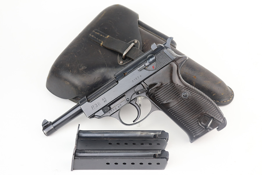 5/14/21 – This is a minty Walther P.38 rig with holster and spare magazine from June of 1942. All matching and original with 98+% of the blue remaining, just a gorgeous pistol. Only minor bluing loss on either side of the muzzle. Strong, shiny bore. Minty brown grips. Functions properly. Both magazines are Walther examples that are not numbered. Completed by a nice 1942 hardshell holster with ‘ewx’ maker mark.